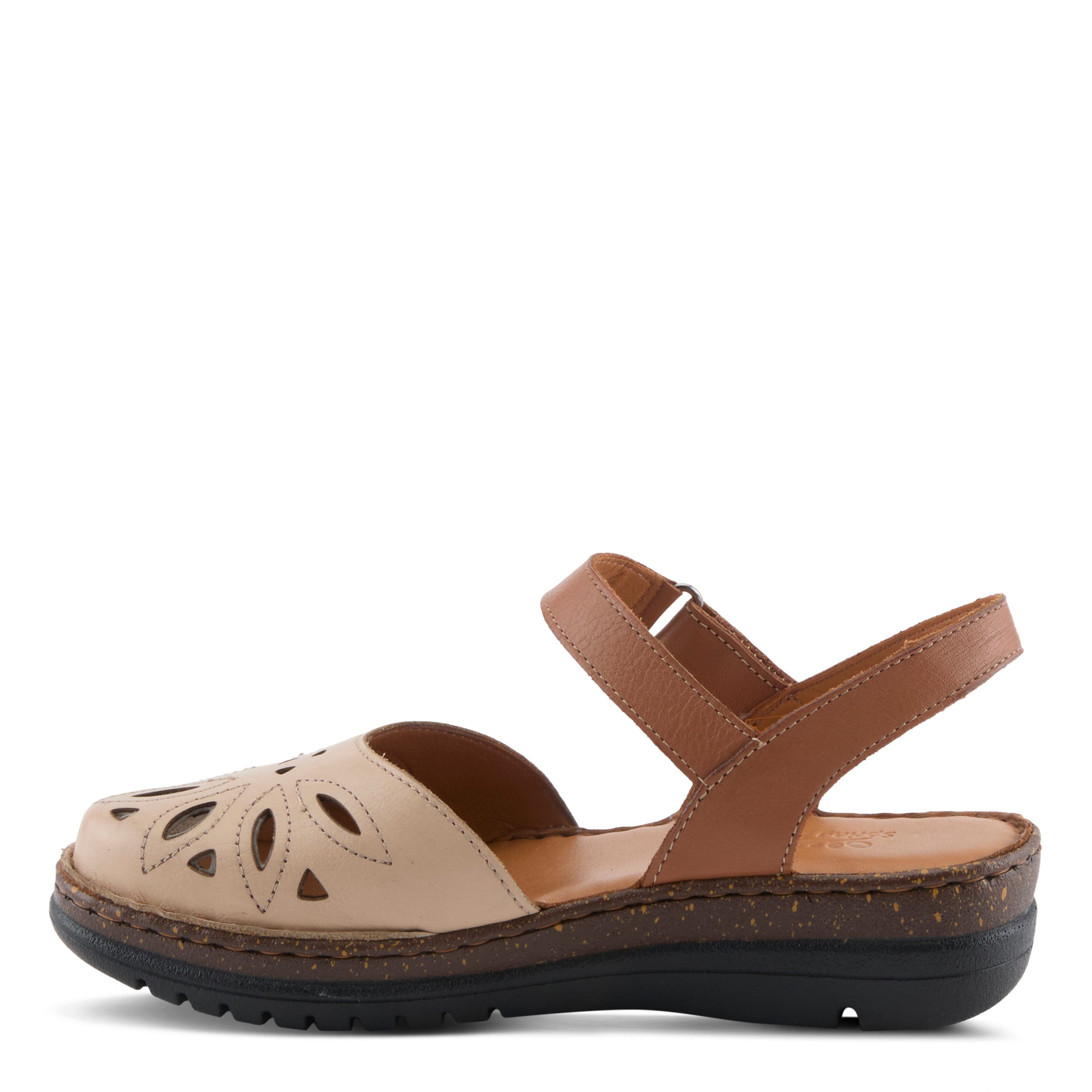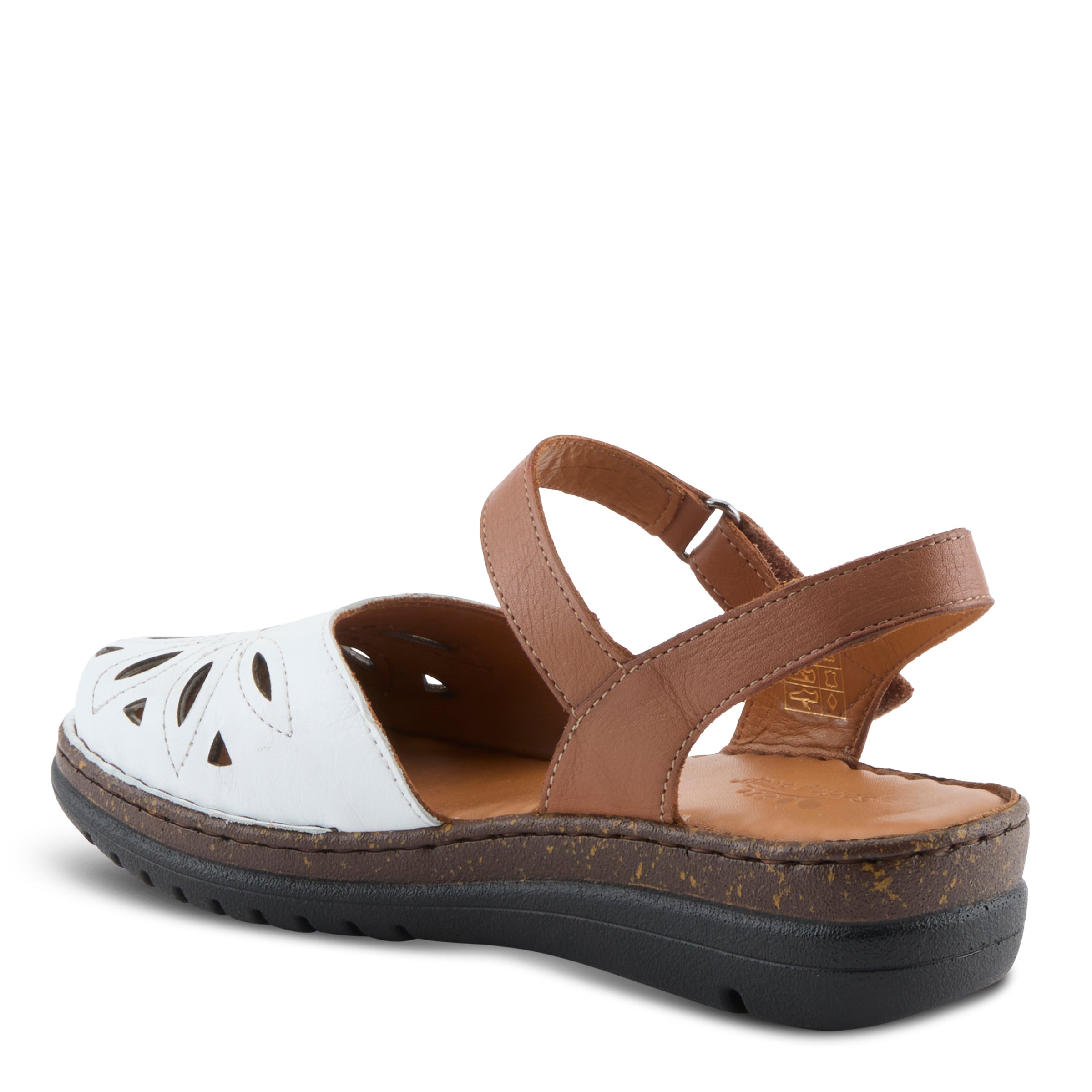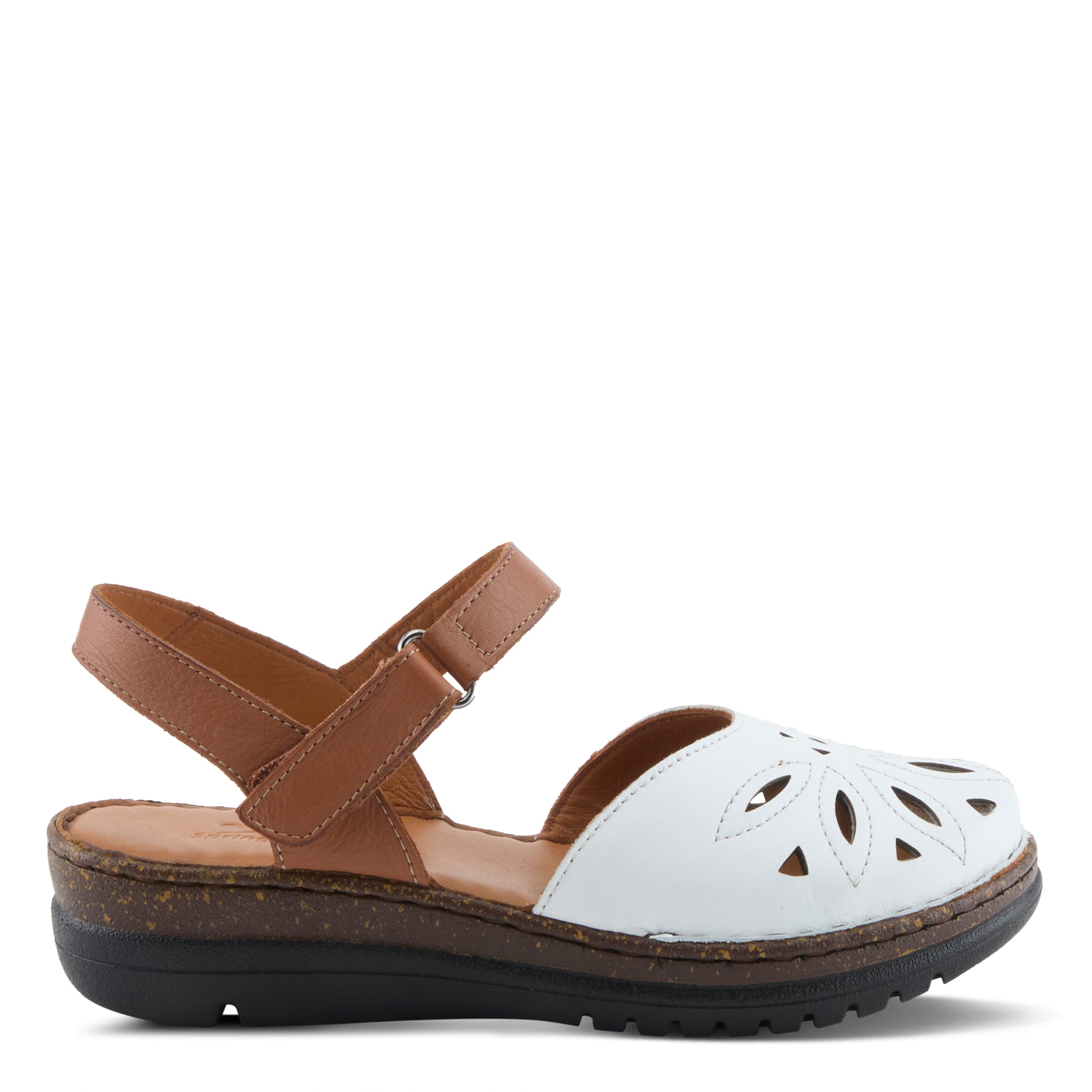 This sandal blends sleek design with practicality for today’s woman on the go. The contemporary laser-cut upper creates a geometric floral-inspired pattern that feels both stylish and breathable, while the clever hook-and-loop ankle strap makes adjustments quick and convenient. The padded leather insole ensures a cushioned feel, and the sturdy wedge provides height with stability. Whether styled with cropped pants, midi skirts, or casual denim, this sandal is perfect for everyday city wear, brunch outings, or stylish travel comfort.