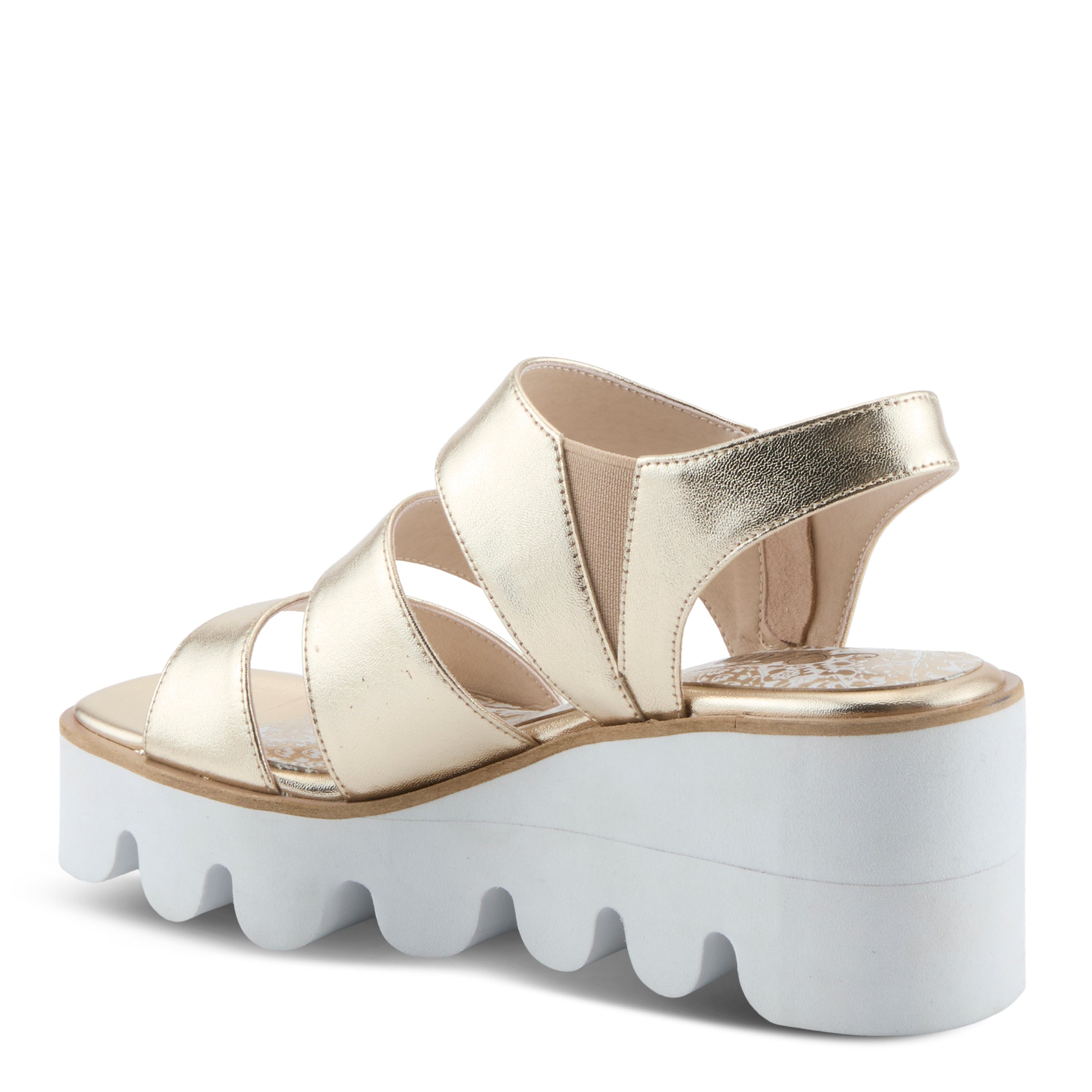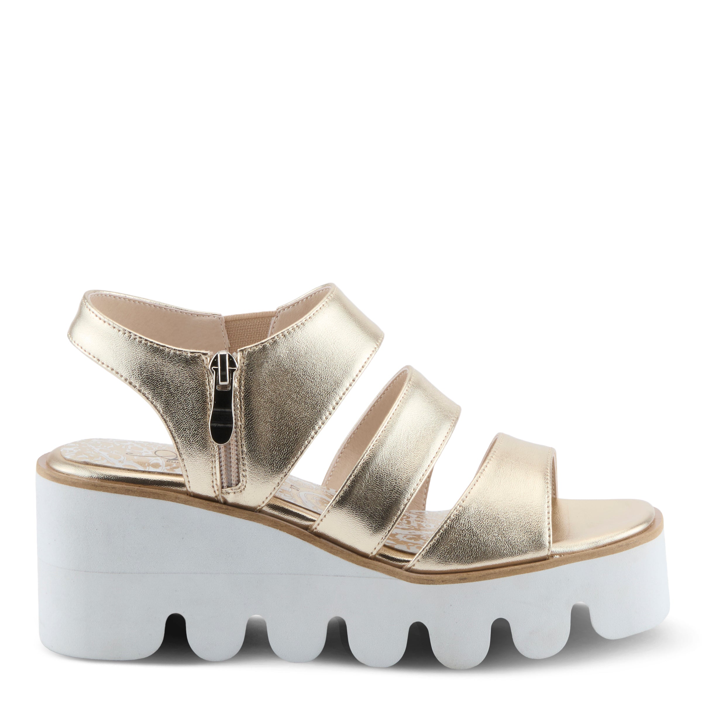 Make a bold entrance with this showstopping metallic sandal that’s equal parts unique, trendy, and street-chic. Crafted with a sleek metallic leather upper, this design elevates casual wear into something extraordinary. The eye-catching chunky EVA platform sole delivers both lightweight comfort and modern flair, while the paisley-printed leather insole adds a hidden touch of elegance. A convenient side zipper closure ensures effortless on-and-off wear, making this standout style as practical as it is fashion-forward.
