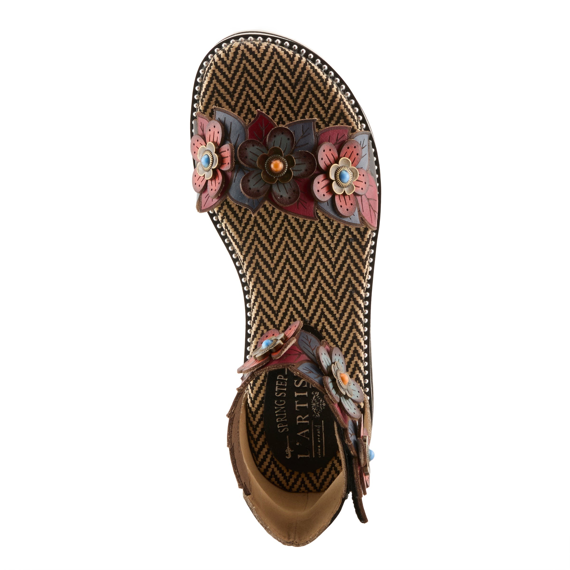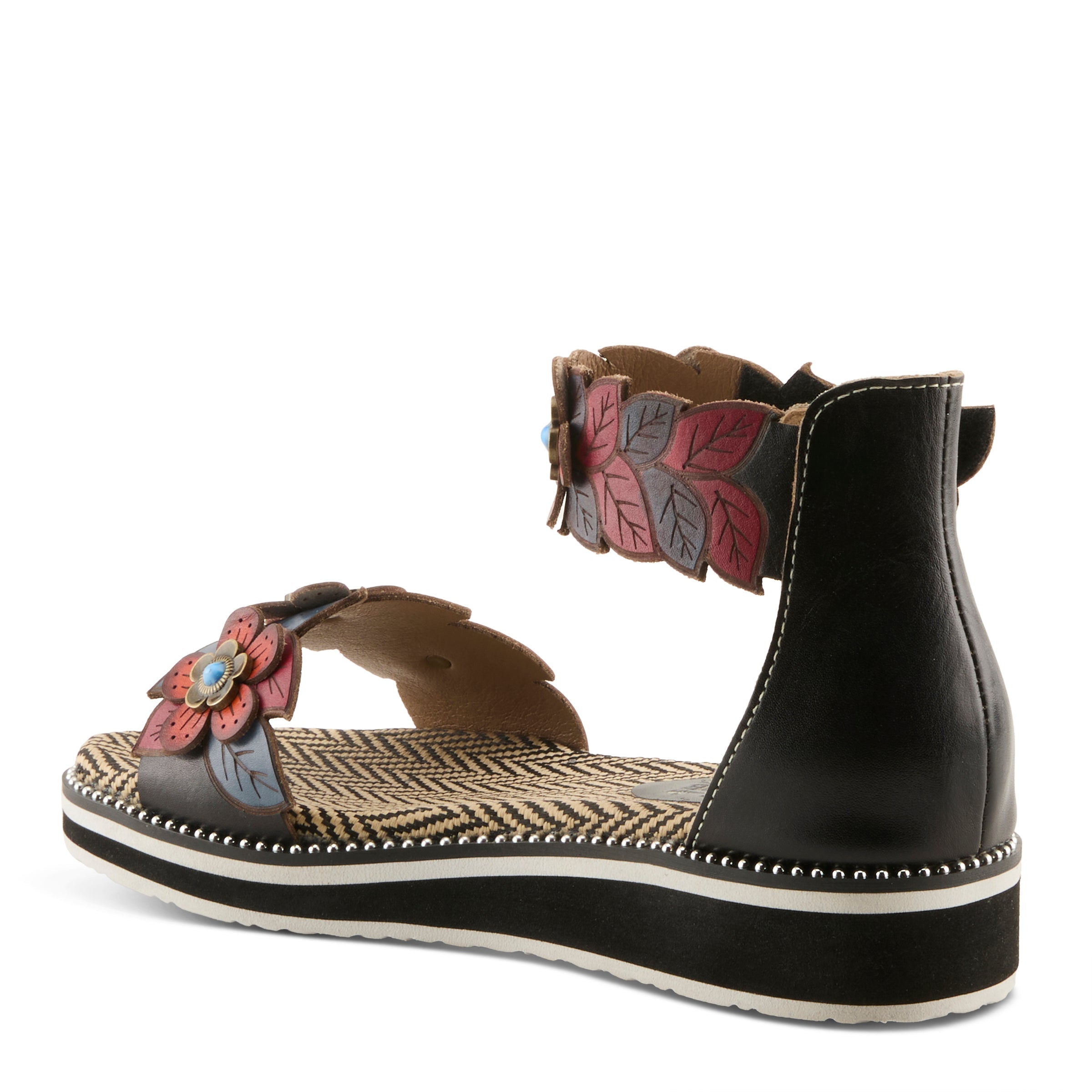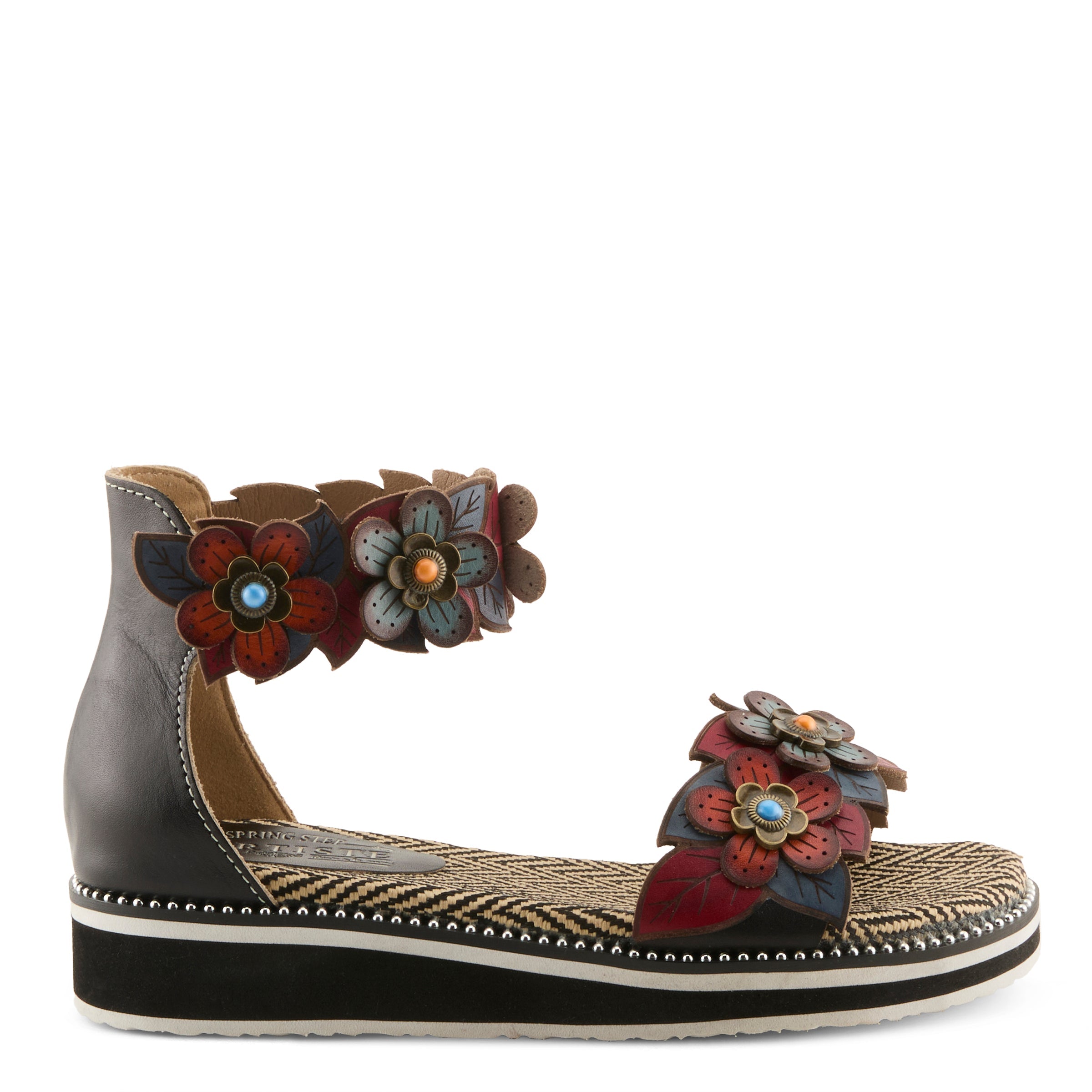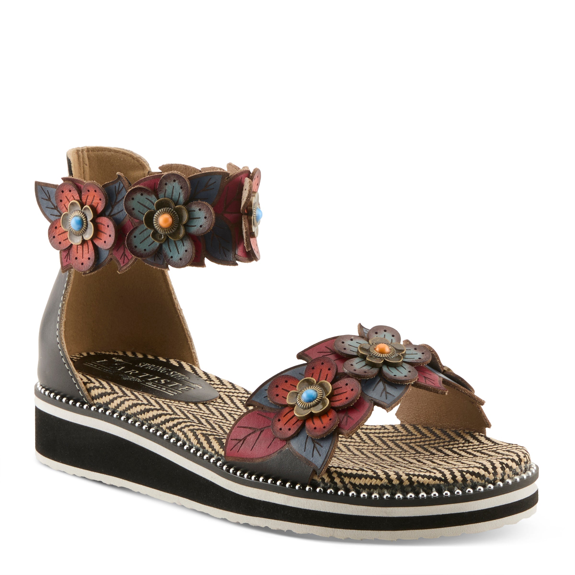 With its open-toe, closed-back design, this sandal lets your toes breathe while keeping your feet secure. The scalloped edge effect from the leaves on the straps, adorned with a mesmerizing combination of floral appliques and antique embellishments, creates a captivating, garden-inspired look. And the hand-painted flowers in vibrant hues? They'll make you the center of attention wherever you go.