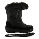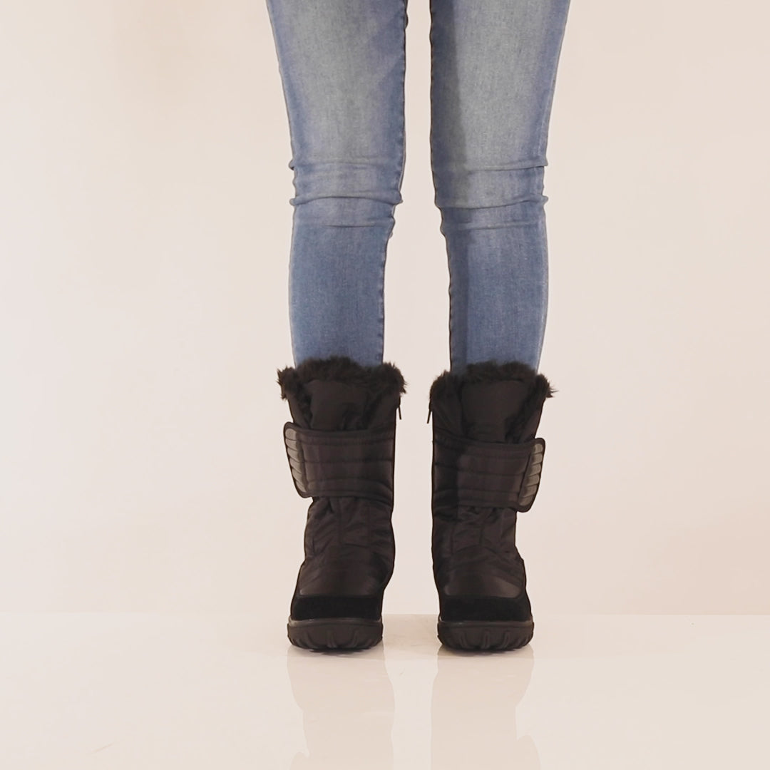 Cold weather, waterproof nylon boot starring an oversized leg strap and inside zip with goring, warm and cozy lining on a utilitarian comfort outsole.