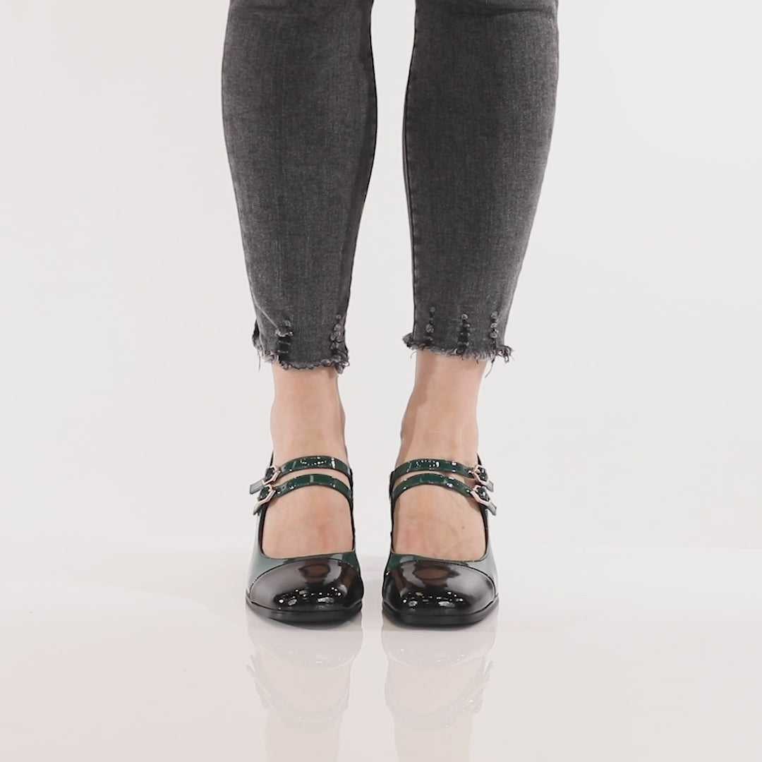 These beauts are not your average βgirls next doorβ. The beige offers a two-toned contrast of patent and leather with a gold chunky heel for a classic feel with a chic twist, while the green offers a full patent two-toned upper with a snake chunky heel for a more adventurous trip to the wild side! Both styles are complete with a gold embellished buckle for adjustability and a square-toe for a modern look. Bet you canβt just pick one!