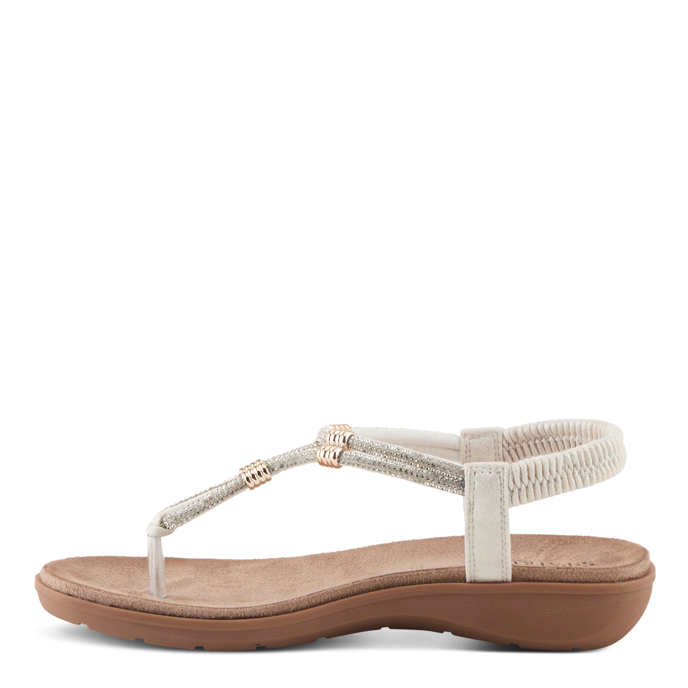 - This strappy sandal has tiny micro rhinestones for subtle texture and shimmer. The tubular strap design gives this flat style a structured silhouette.
