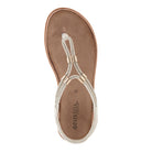 Bejeweled straps bring a touch of elegance to the casual sandal design