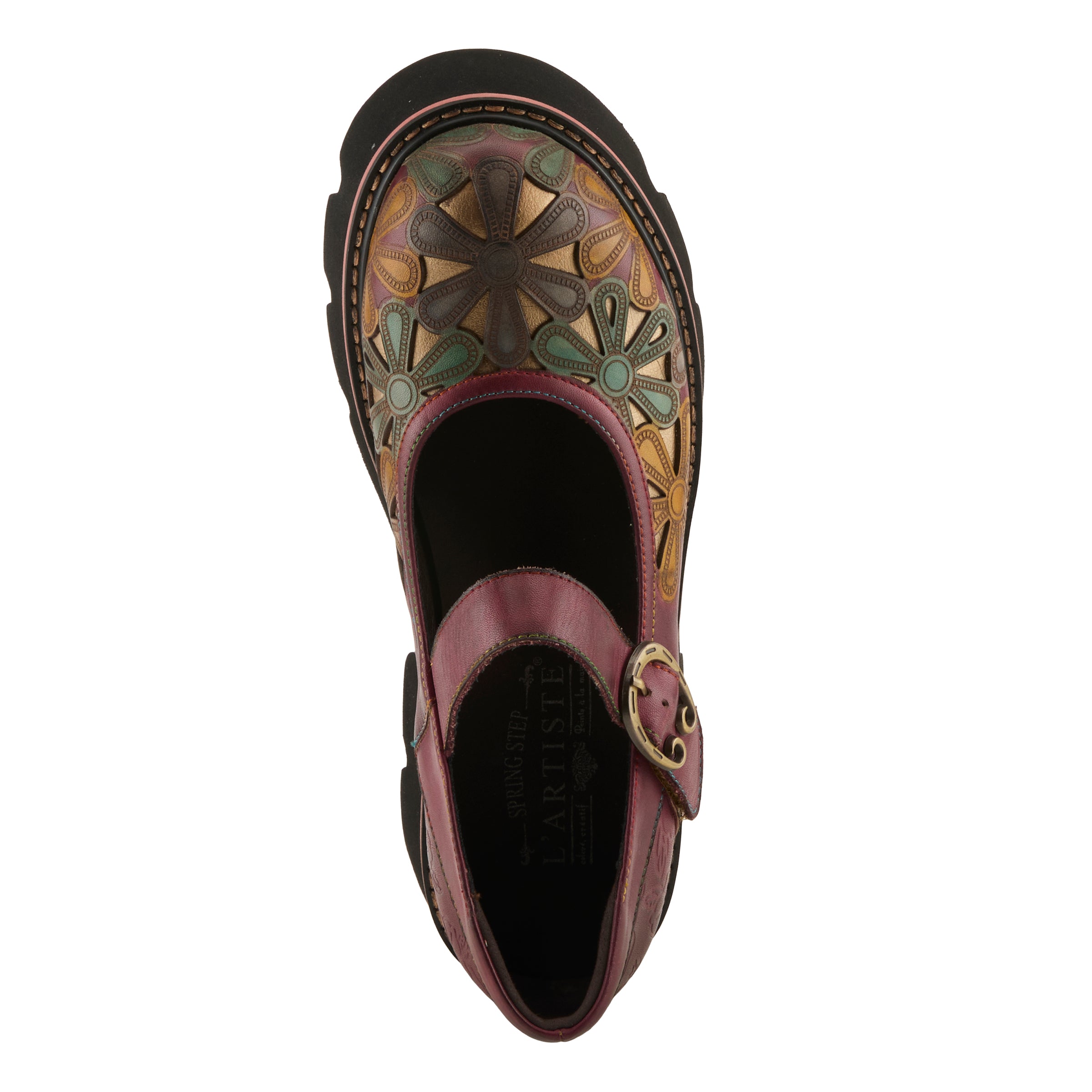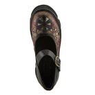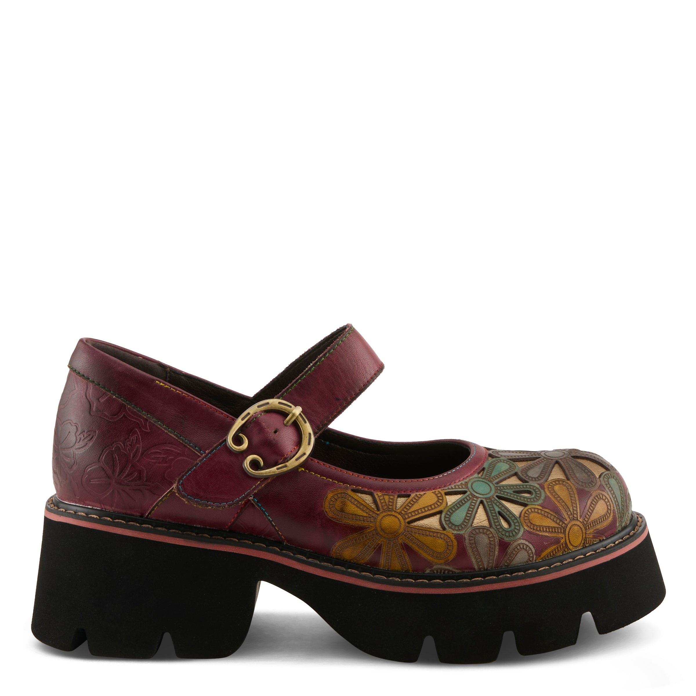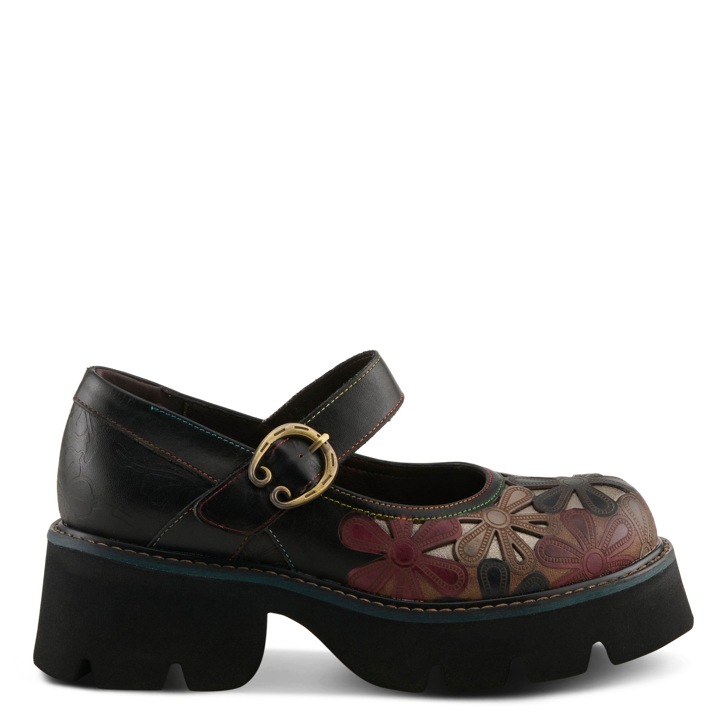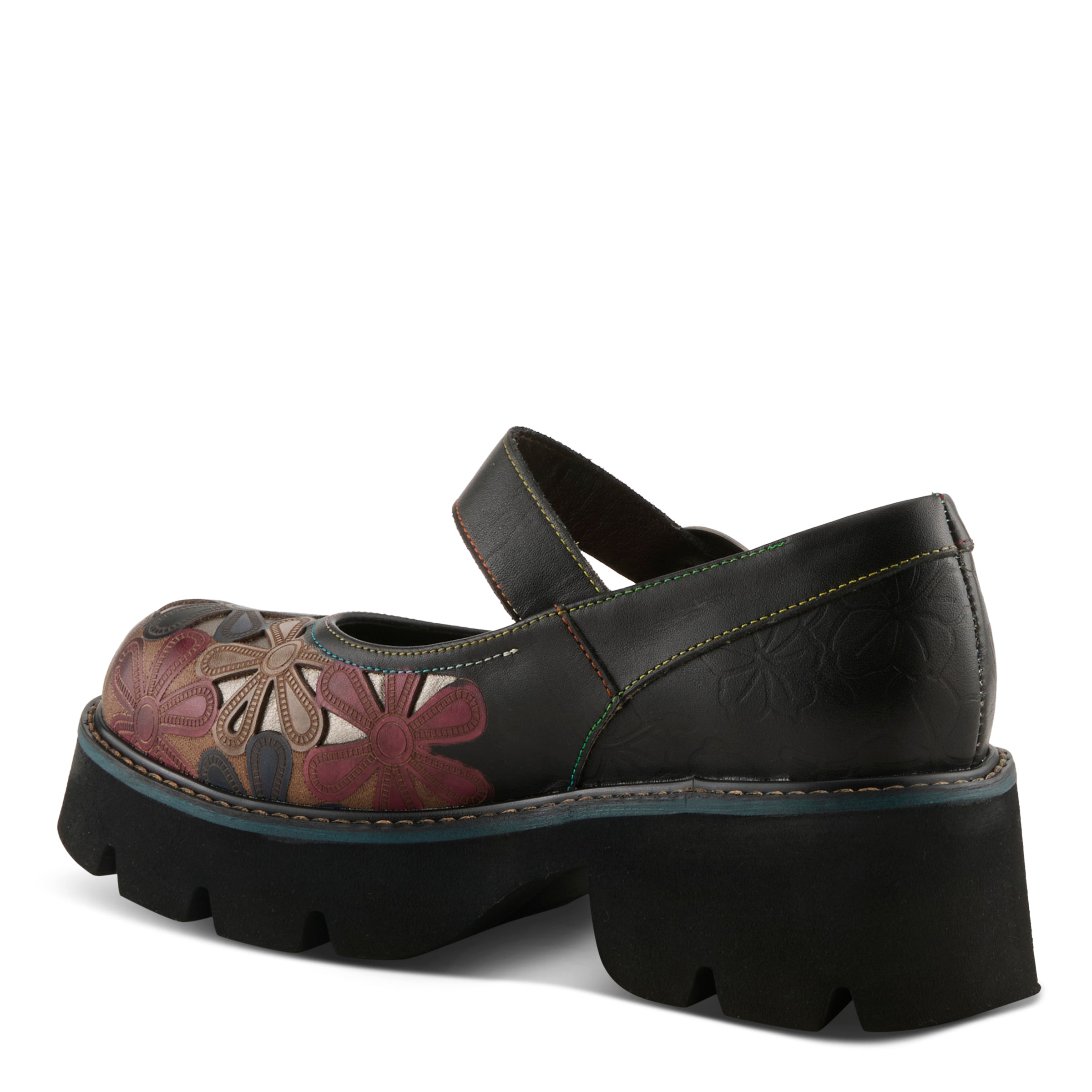 Step into a world of artistic expression with these boho-chic Mary Jane shoes. Crafted with a premium leather upper and adorned with hand-painted floral accents, these shoes bring a modern, artsy twist to a timeless silhouette. The intricate floral design features subtle metallic underlays, adding a captivating two-dimensional depth that catches the light with every step. The chunky lug outsole adds a bold edge while ensuring all-day comfort and stability. A convenient hook and loop closure allows for a customized fit, making these the perfect statement piece for trendsetters who value both style and comfort.