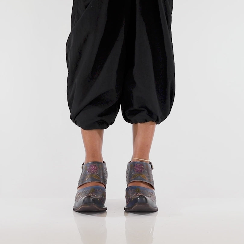 Unleash your inner cowgirl with this modern take on the classic Western boot. The etched flowers and cut out vamp give this shoe a flirtatious look, while the block heel and leather upper keep it comfortable enough for dancing the night away. Saddle up and let the DEVIKA-STUD carry you through your next night out with elegance and rustic charm.
