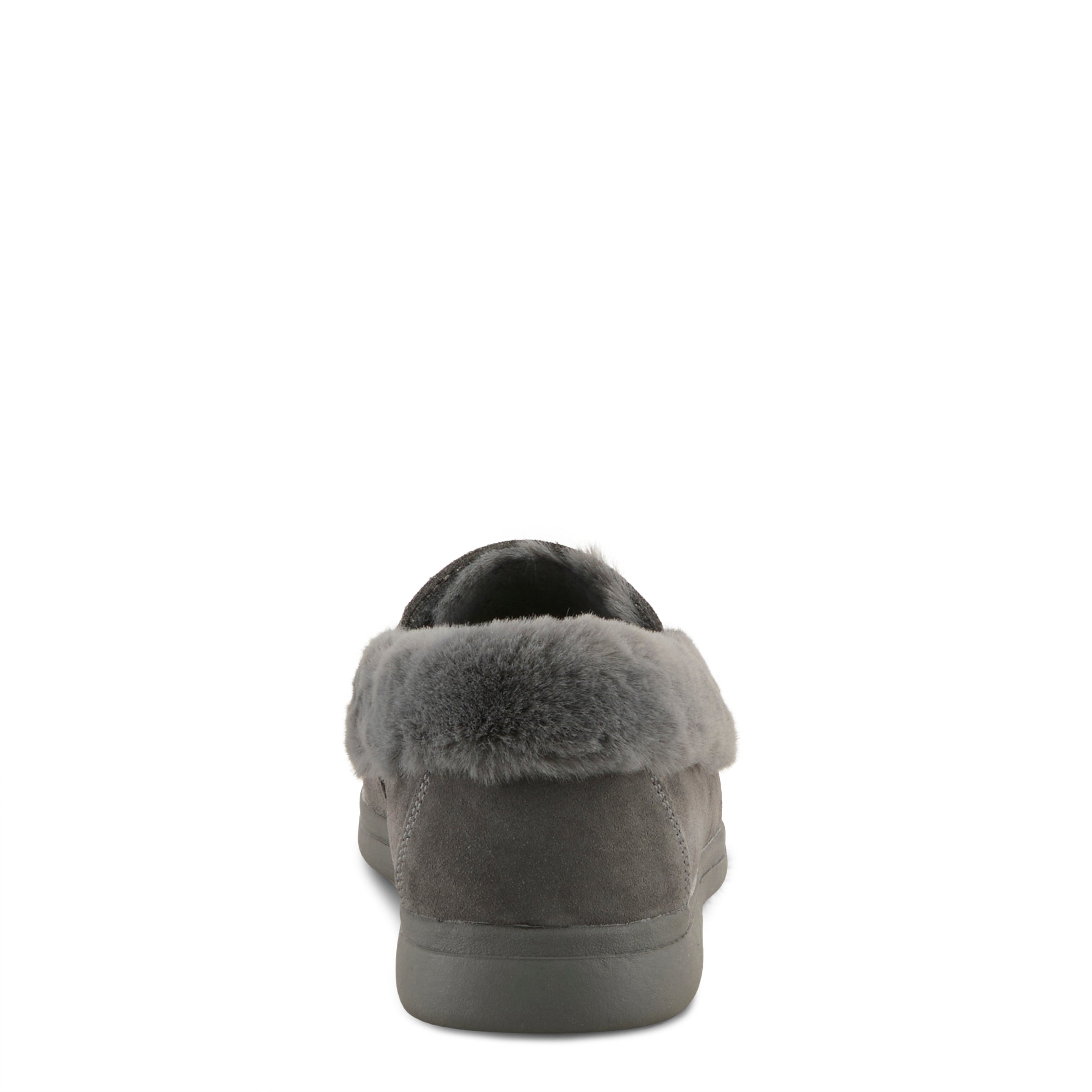 Indulge in cozy sophistication with a stylish suede loafer designed for effortless elegance and comfort. The contrast faux fur trim adds a luxurious touch while providing extra warmth and softness. A polished metal bit with hardware detailing elevates the classic loafer silhouette, making it perfect for both casual and refined looks. The slip-on design ensures easy wear, while the lightweight, flexible outsole offers all-day comfort and durability. Whether lounging at home or stepping out in style, this versatile loafer seamlessly blends fashion and function for a chic, cozy footwear essential.