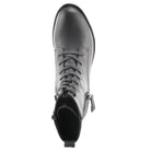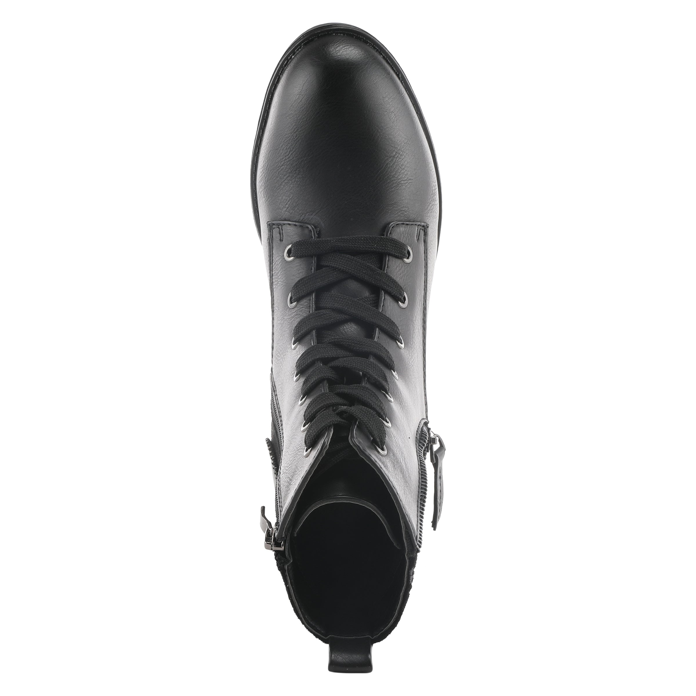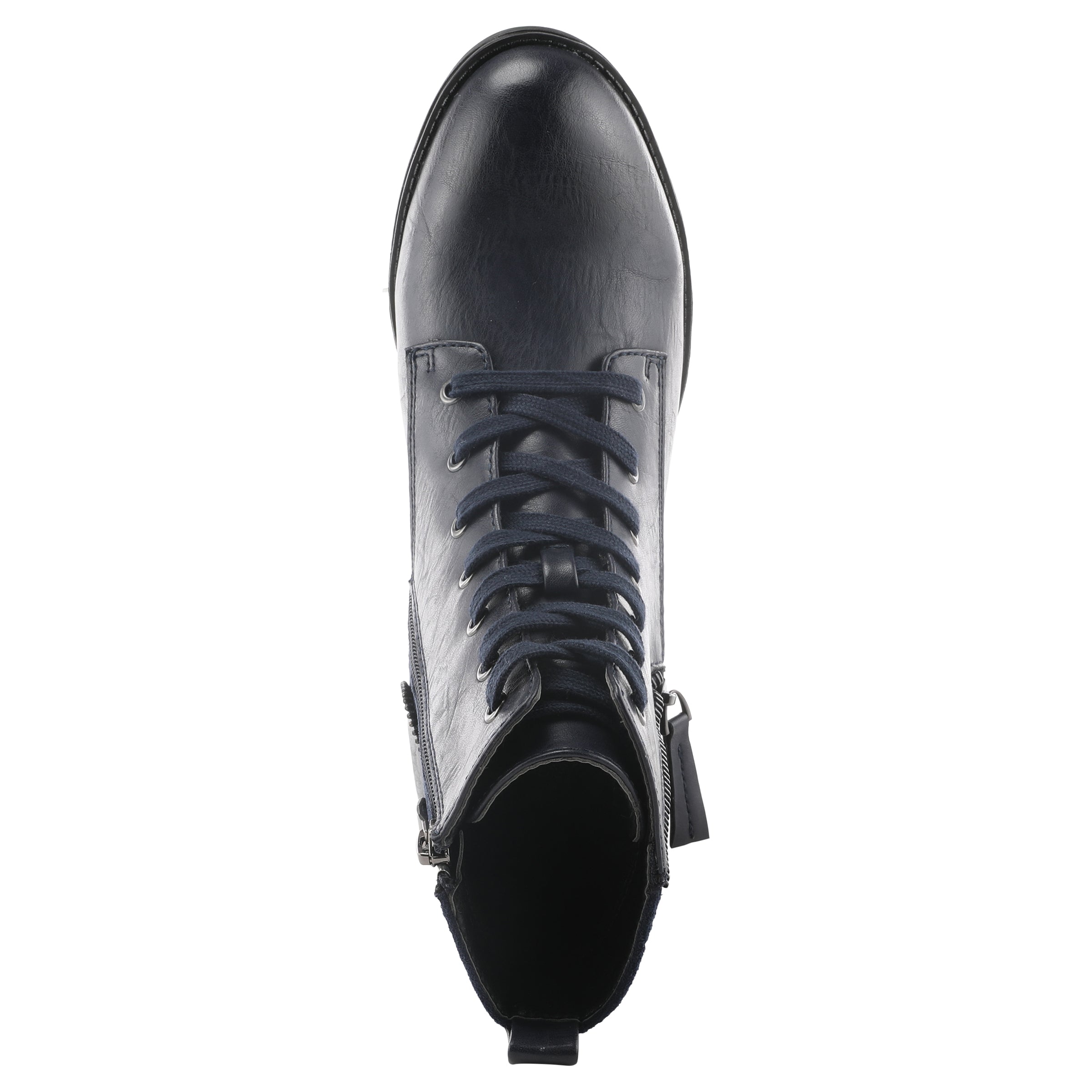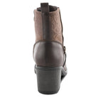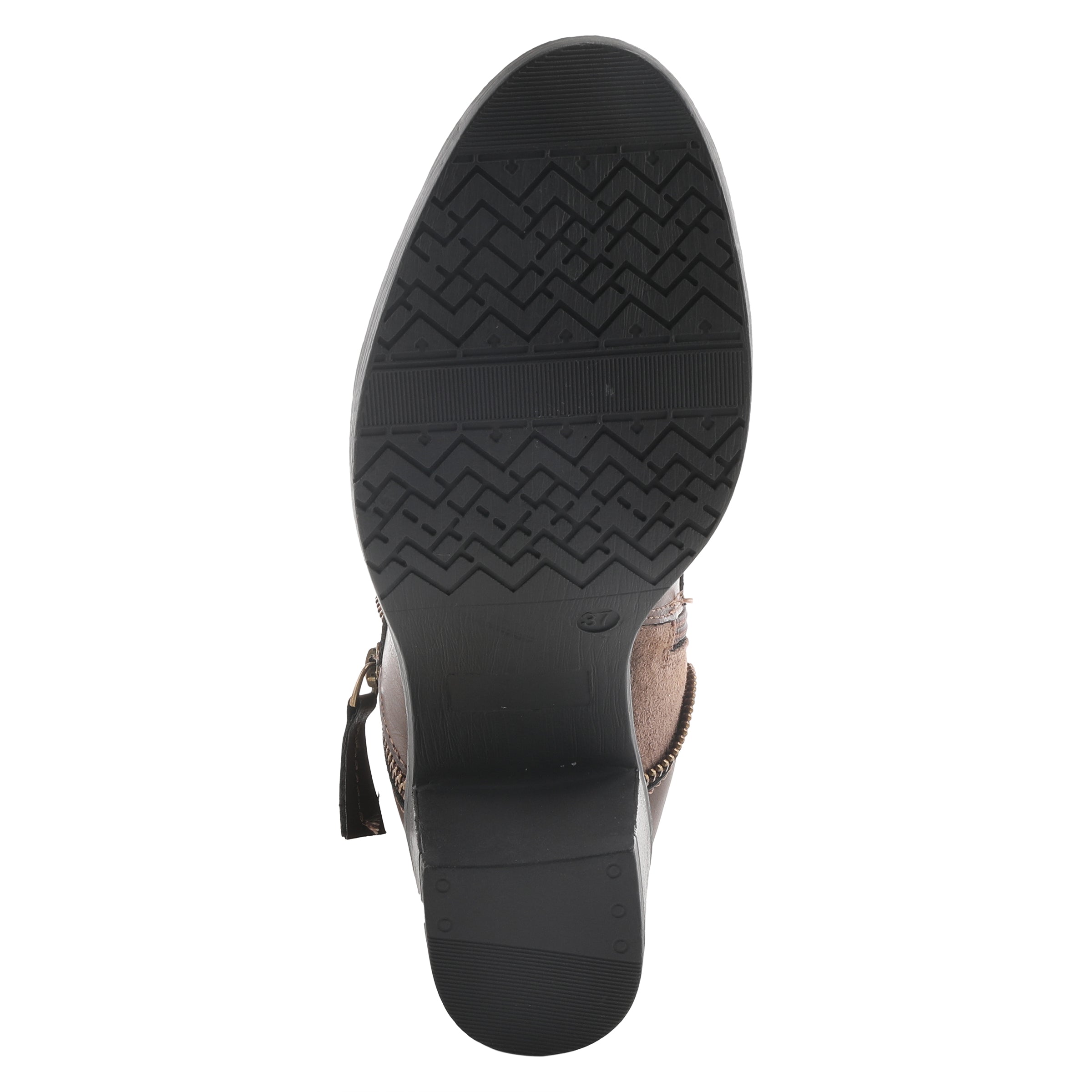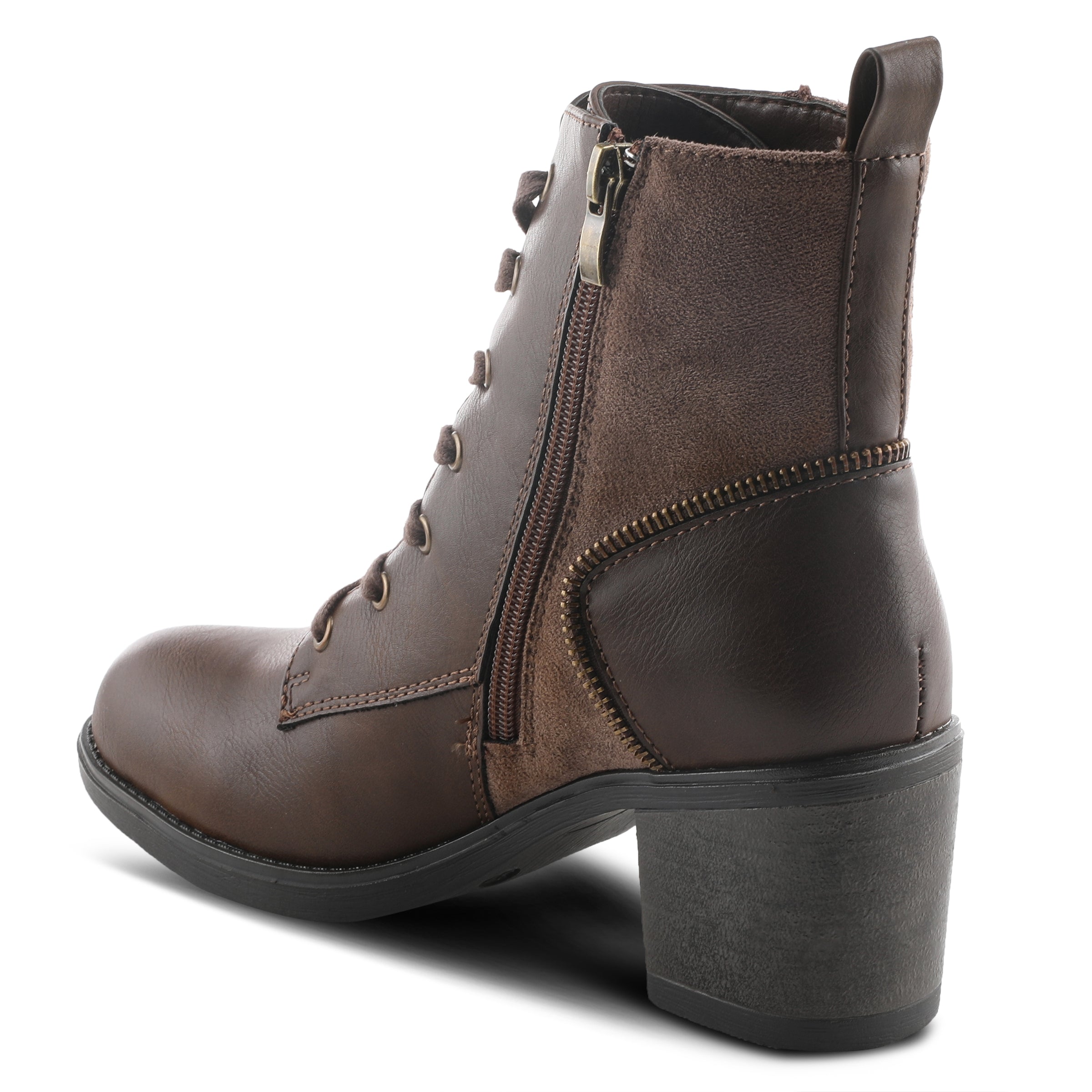 A decorative zipper accent reveals a microsuede panel of delicate floral embroidery atop the shaft of this round toe lace up bootie. A flexible sole with faux stacked heel complete this classic silhouette with a modern twist.