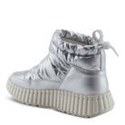 Stay warm and stylish with this ultra-trendy, sport-chic waterproof sneaker boot. Featuring a sleek metallic-inspired upper filled with 90% down and 10% feathers, this boot delivers lightweight warmth without compromising on fashion. The toggle closure at the top with a pull tab ensures a snug, adjustable fit, while the chunky ridged sole provides superior traction and a bold, modern edge. Designed for both function and flair, this sneaker boot is perfect for cold-weather adventures and streetwear-inspired looks.