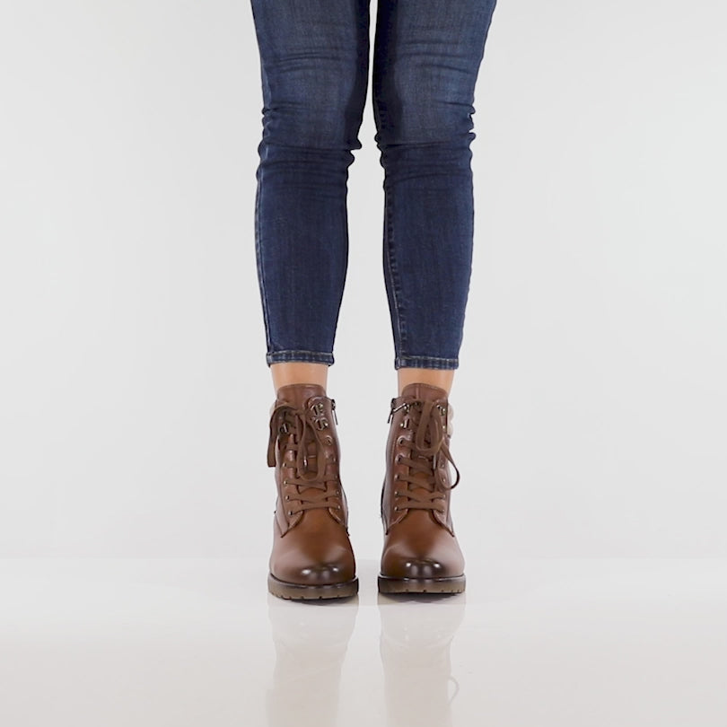 Gear up for exploration with our hiker-inspired lace-up heeled boots, designed to blend rugged functionality with urban style. Crafted with a burnished finish for a touch of rugged charm, these booties allow you to express your style confidently, no matter where your journey takes you.