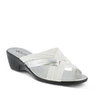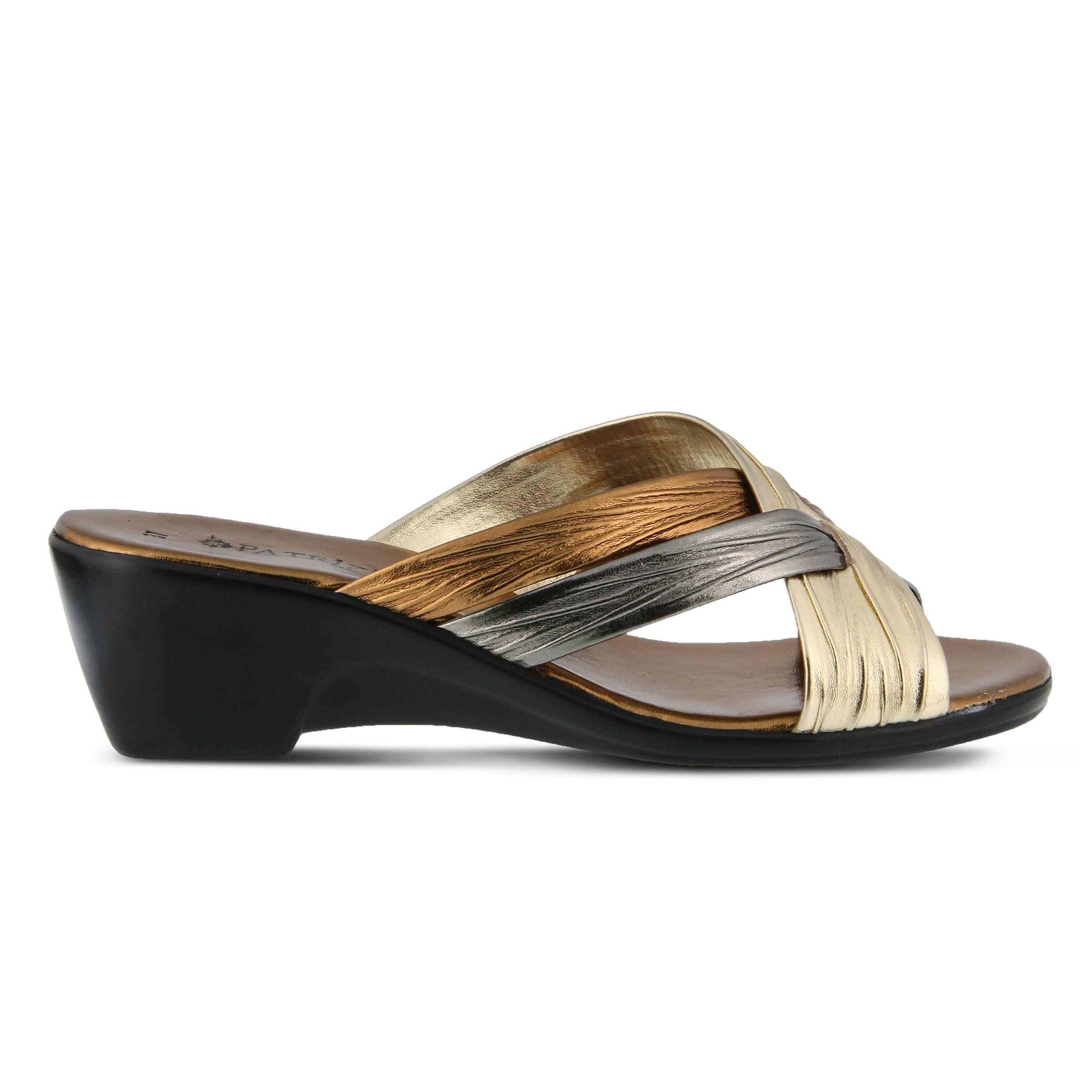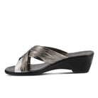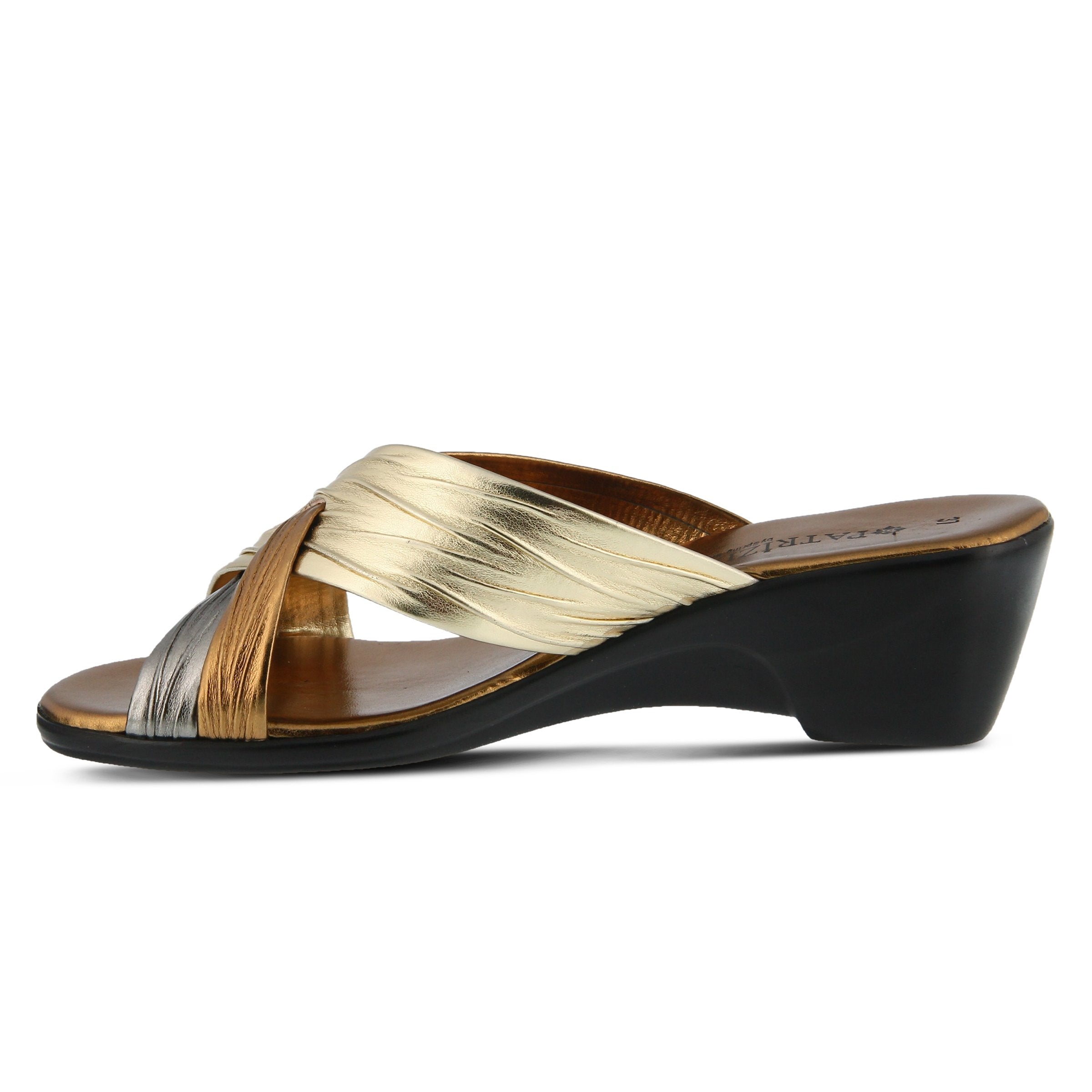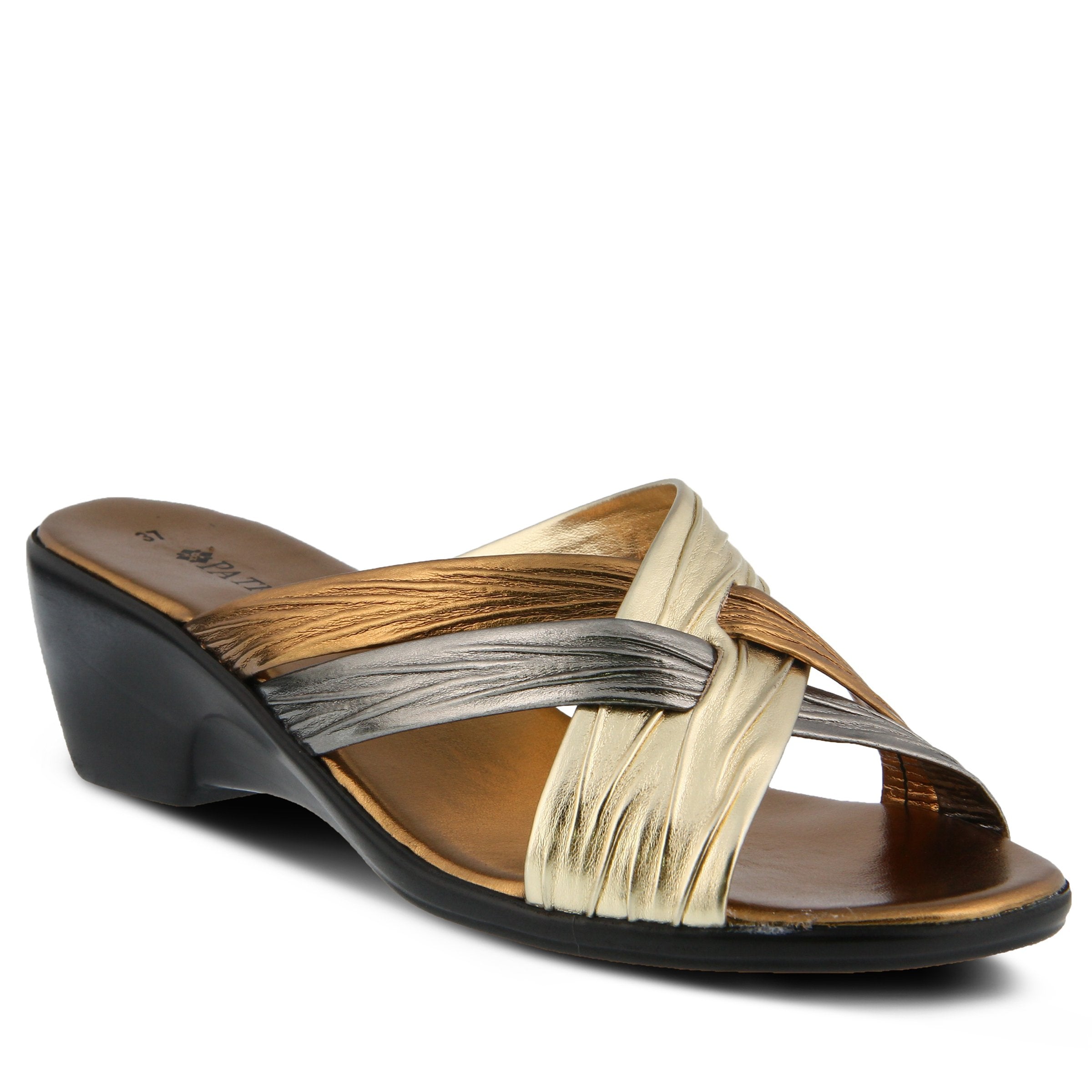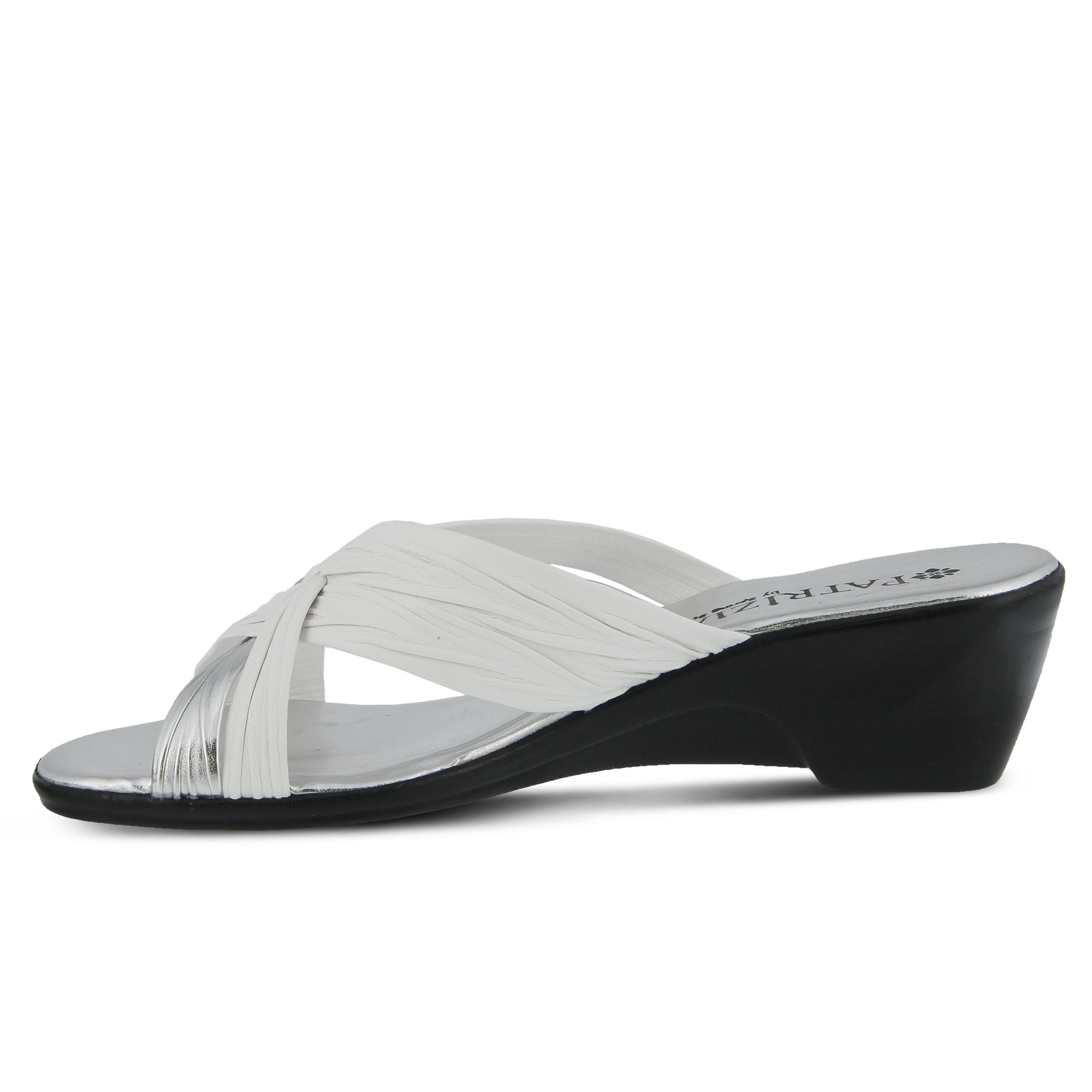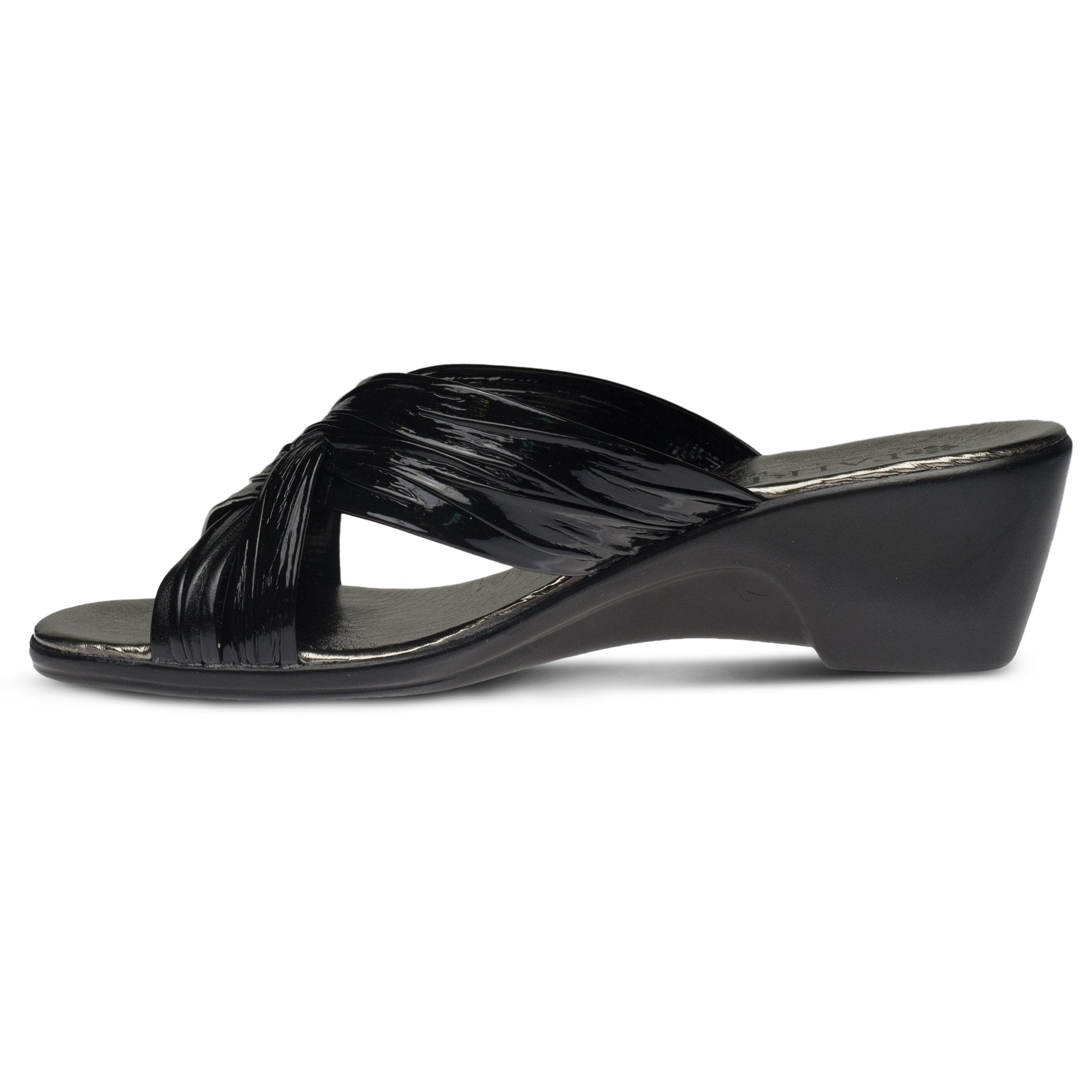 The Italian made slide sandal made to go with any look, no matter which color you choose.  The soft crisscross straps have a pleated design for added interest. The slight platform heel elongates the legs under the skirt or shorts you pair these sandals with while you enjoy a dreamy Italian holiday.
