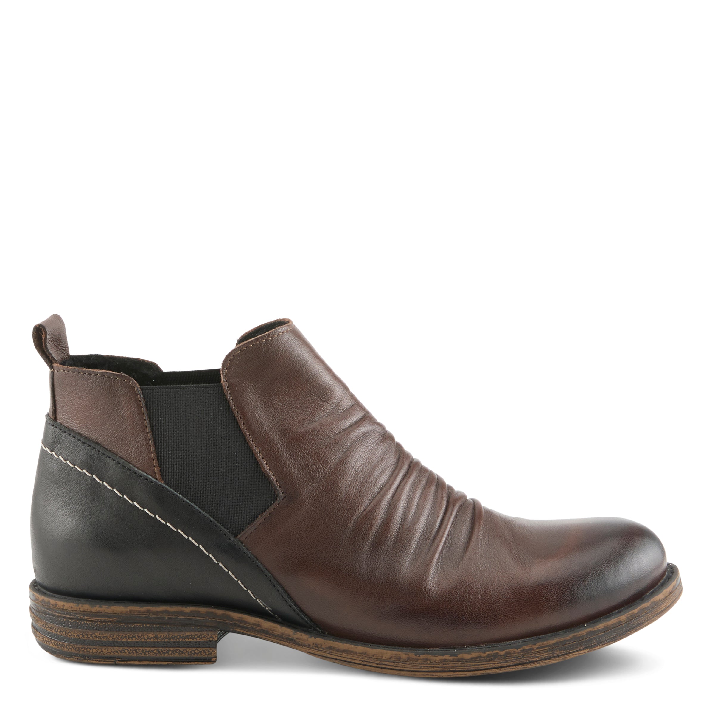 Welcoming Fall with this effortless two-tone Chelsea boots! Featuring a sleek front ruching detail that adds a touch of flair, these boots combine comfort with a stylish edge. The low heel gives you just the right amount of lift, while the pull tab makes slipping them on a breeze. Contrast stitching pops against the sleek, two-tone design, making these boots a versatile, stand-out addition to any outfit. Whether you're dressing up or down, these boots are the perfect mix of laid-back cool and subtle sophistication.