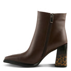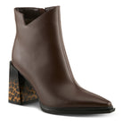 Unleash your bold side with this sexy, modern ankle boot, crafted from luxurious leather for a sleek, polished look. The sharp pointed toe and clean lines exude chic sophistication, while the standout high-gloss block heel features a fierce animal print design that adds an unexpected edge. An inside zipper ensures effortless wear, making this boot as functional as it is fashion-forward. Perfect for taking your look from day to night, this boot is a must-have for the trend-right wardrobe.