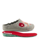 Easy to slip-on indoor wool slipper featuring a cheerful floral motif.