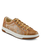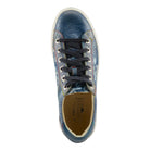 Versatile fashion sneaker featuring architectural silver eyelets on a croco embossed tab. Tonal floral embossed toe, heel counter and padded collar, with contrast solid leather insets and trim accentuating a crackle floral printed tongue and side panel for what's sure to be your go-to casual for all day comfort.