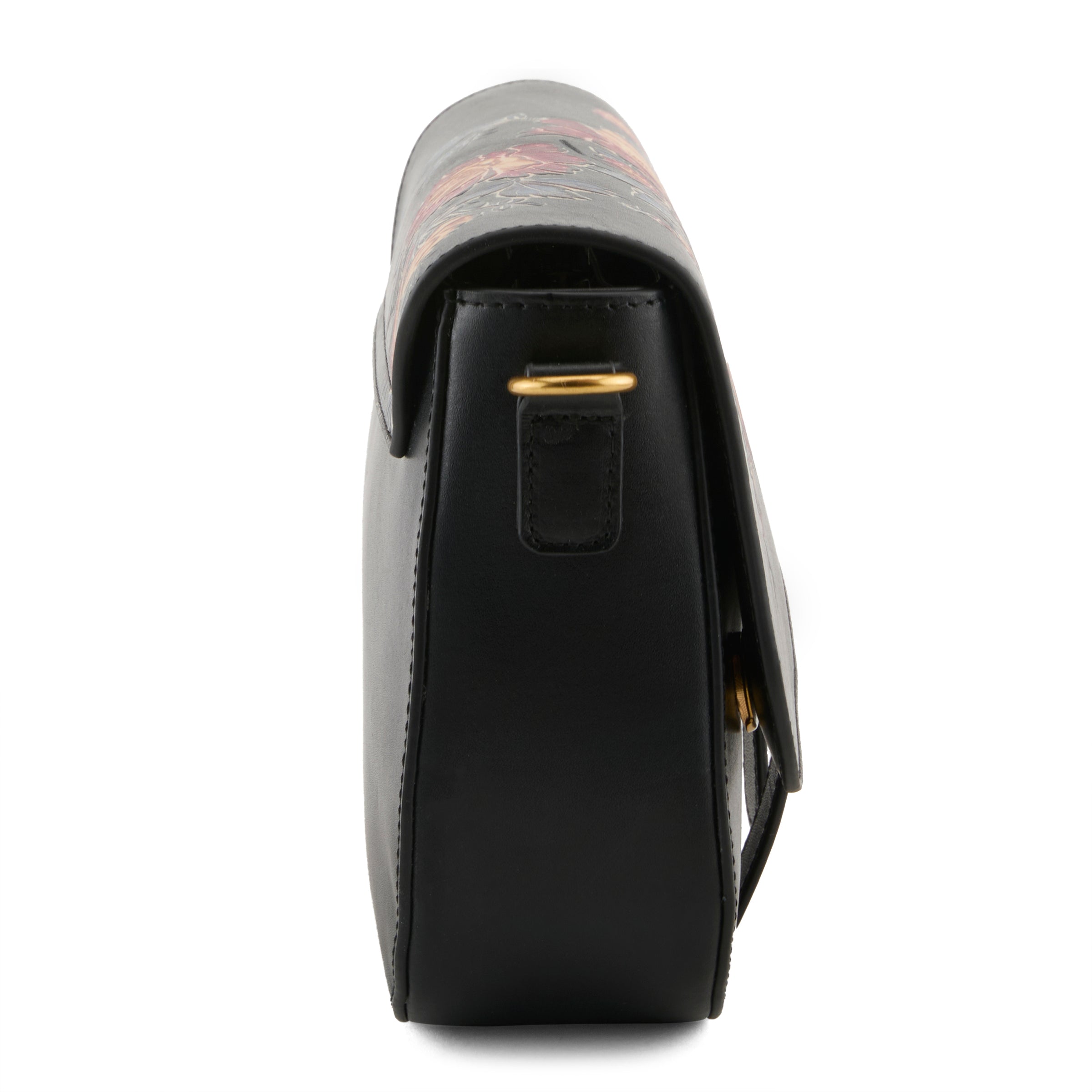 Hand painted genuine leather with a Rockstar vibe is what makes HB-Canter one of our favorites! Curvy and contoured, this English inspired saddle design has both a zip top closure and a floral painted double snap flap for added safekeeping with undeniable beauty. A single compartment interior features cotton twill lining with opposite wall pockets. Cool vibed woven 2 tone removable and adjustable guitar style strap, will hang securely on your shoulder or comfortably across your body.