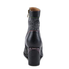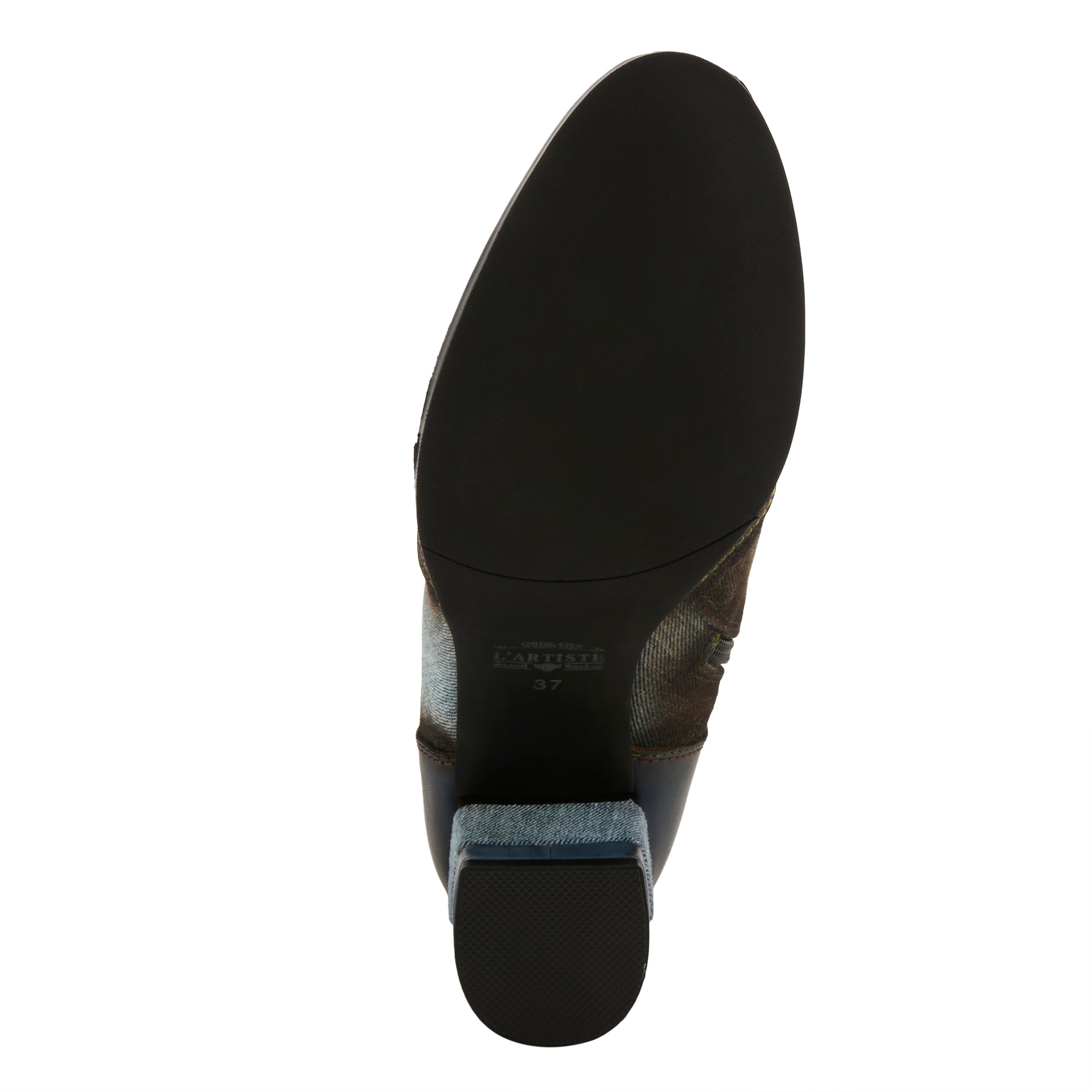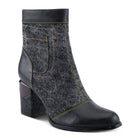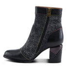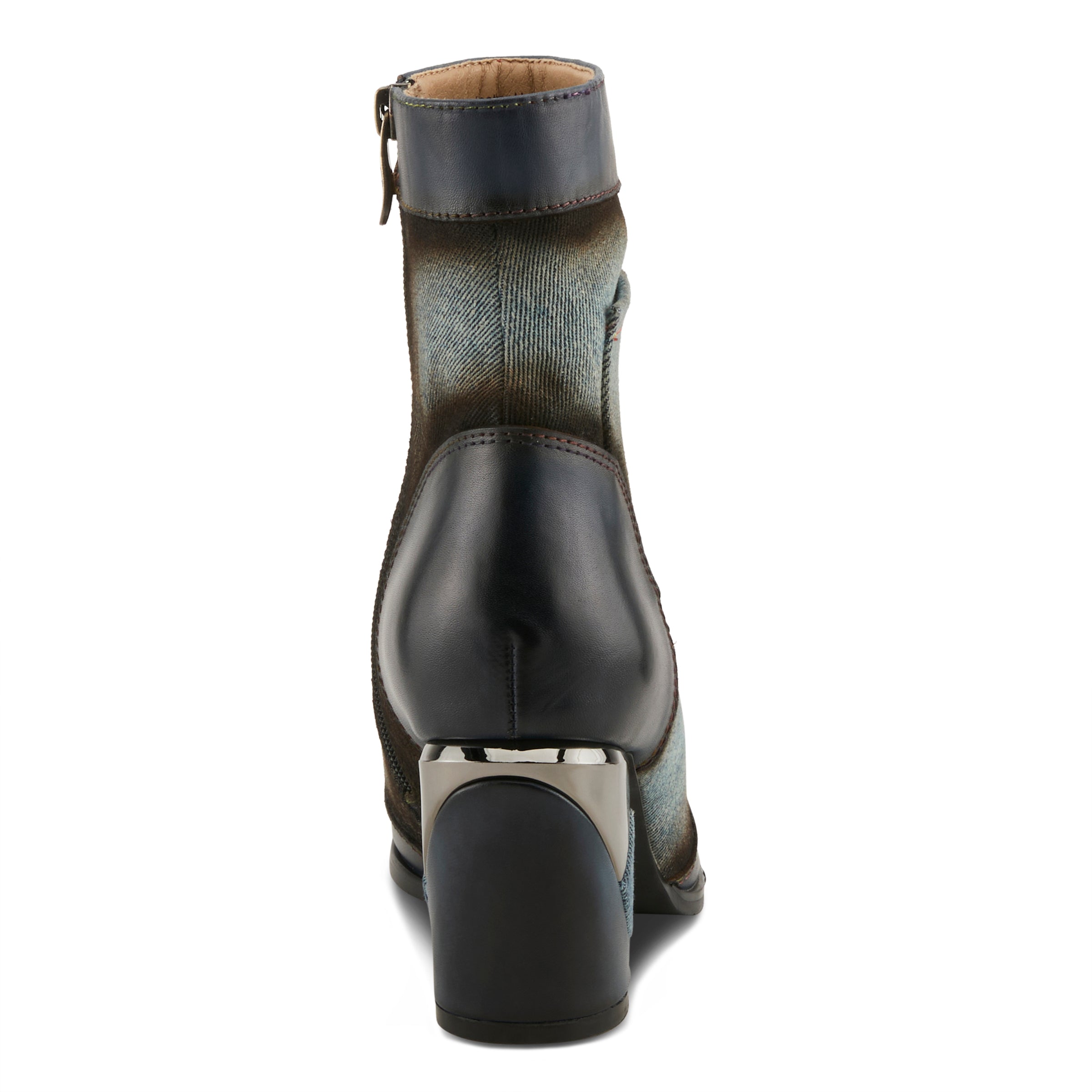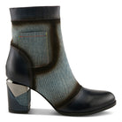 - Stylish bootie design crafted from a combination of durable leather and trendy denim for a unique look.