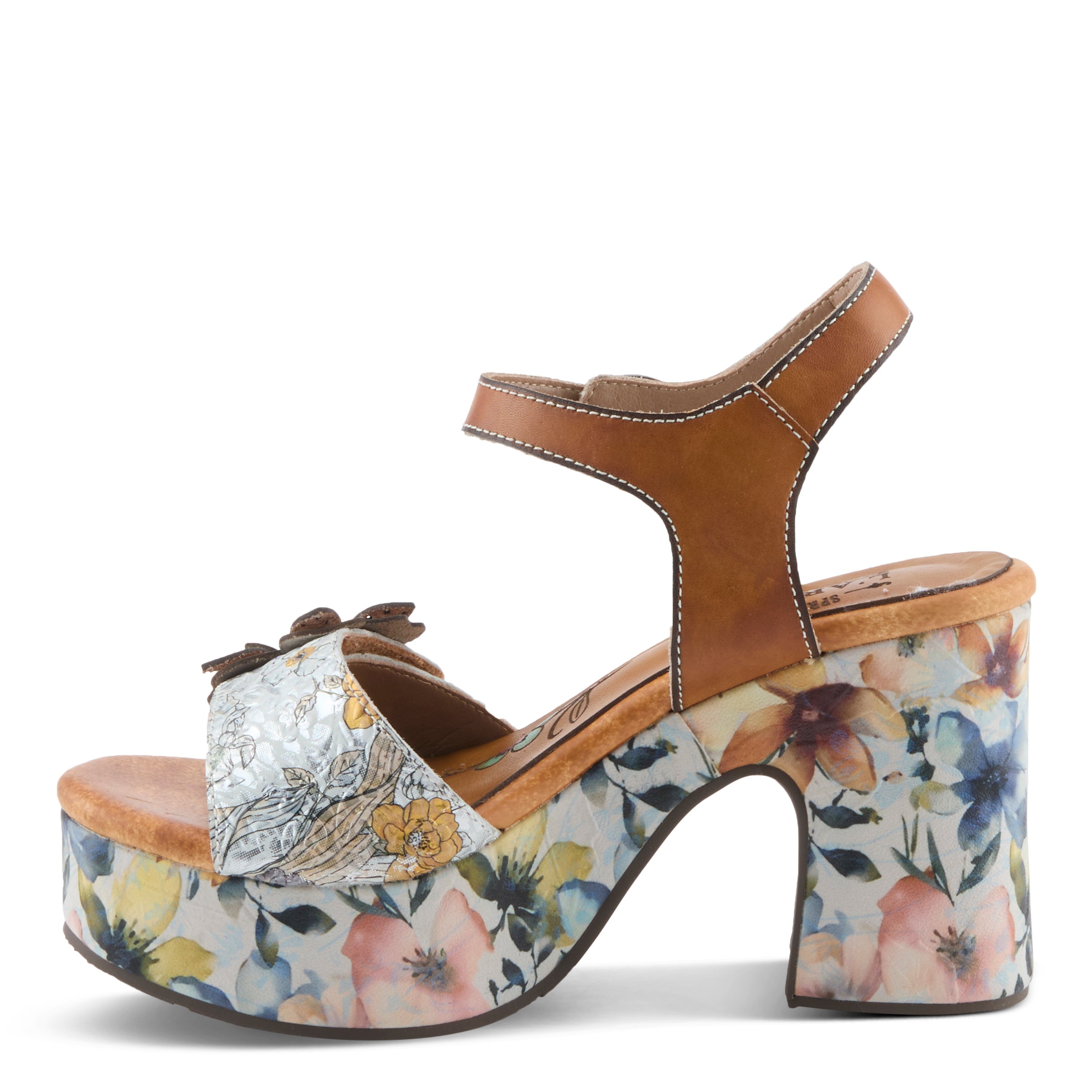 - Statement printed floral midsole with 4" heel and 1 ½" platform