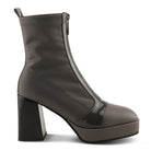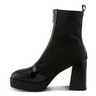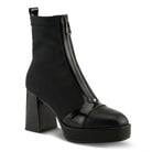 Step into the spotlight with this ultra-modern and chic ankle boot, crafted from a bold combination of sleek patent leather and stretchy Lycra for a flawless, curve-hugging fit. The standout front zipper adds both fashion and function, making a bold statement while offering easy on-and-off wear. Set on a sculptural block heel with a subtle platform, this boot blends edgy elegance with all-day comfort. Perfect for adding a fresh, trend-right edge to any look, it’s the ultimate choice for modern style icons.