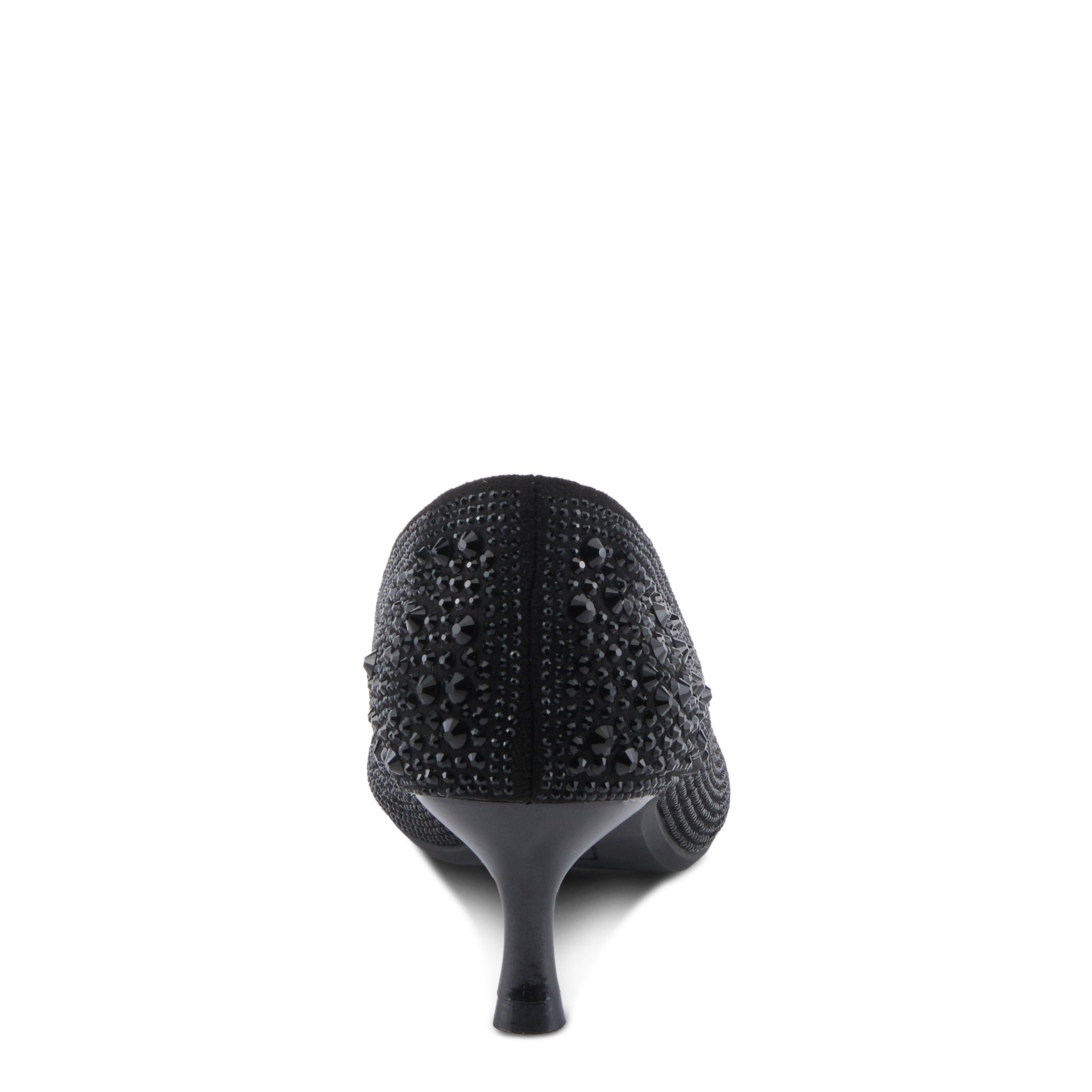 Prepare to dazzle with every step as you radiate sophistication and grace with our Kitten Heel Pumps. Featuring a sleek pointy-toe silhouette adorned with delicate crystals throughout the upper and an exquisite display of different shapes of rounded crystals adorning the heel.