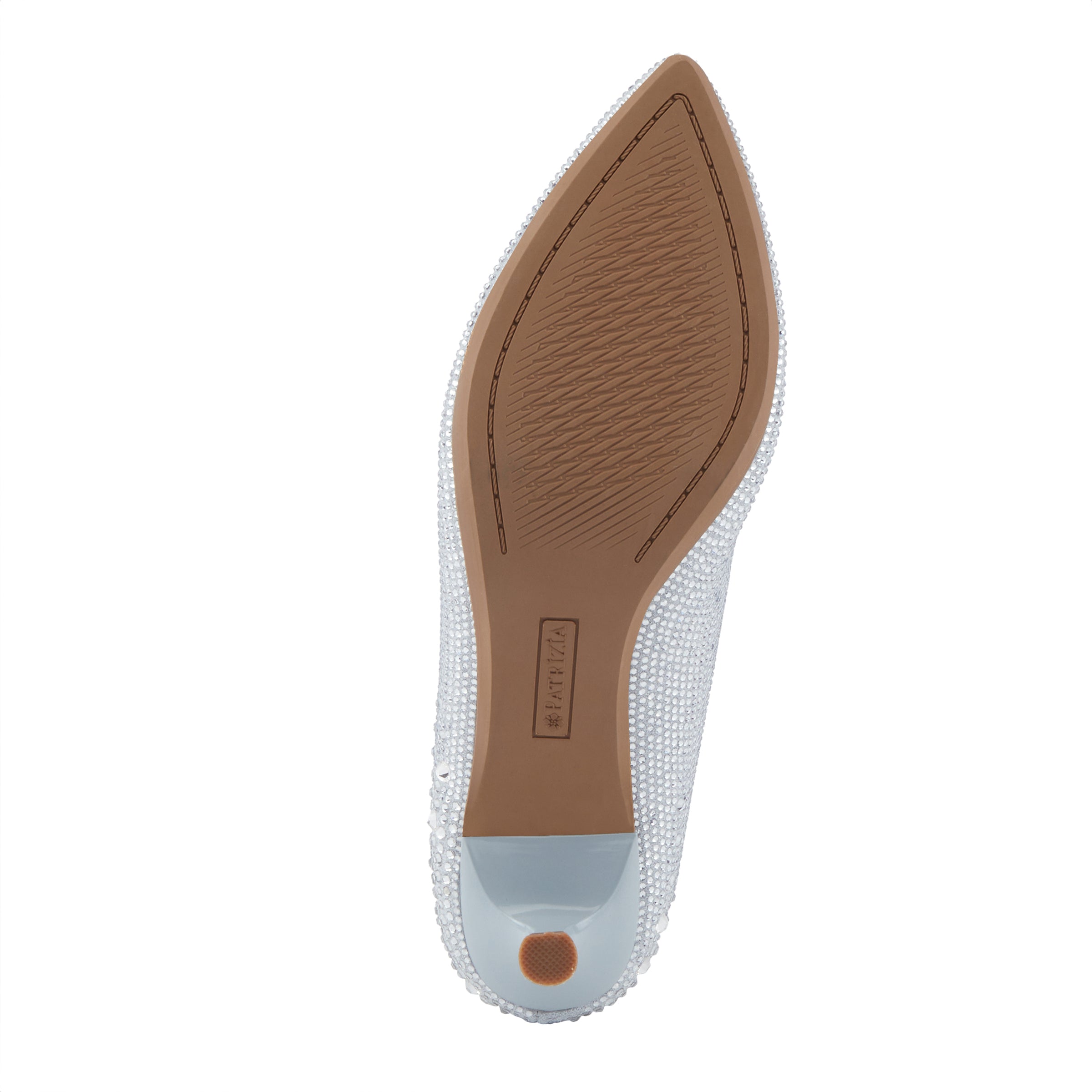 - Delicate crystals adorn the upper and different shapes of rounded crystals embellish the heel, creating a shimmering effect that exudes glamour and luxury.