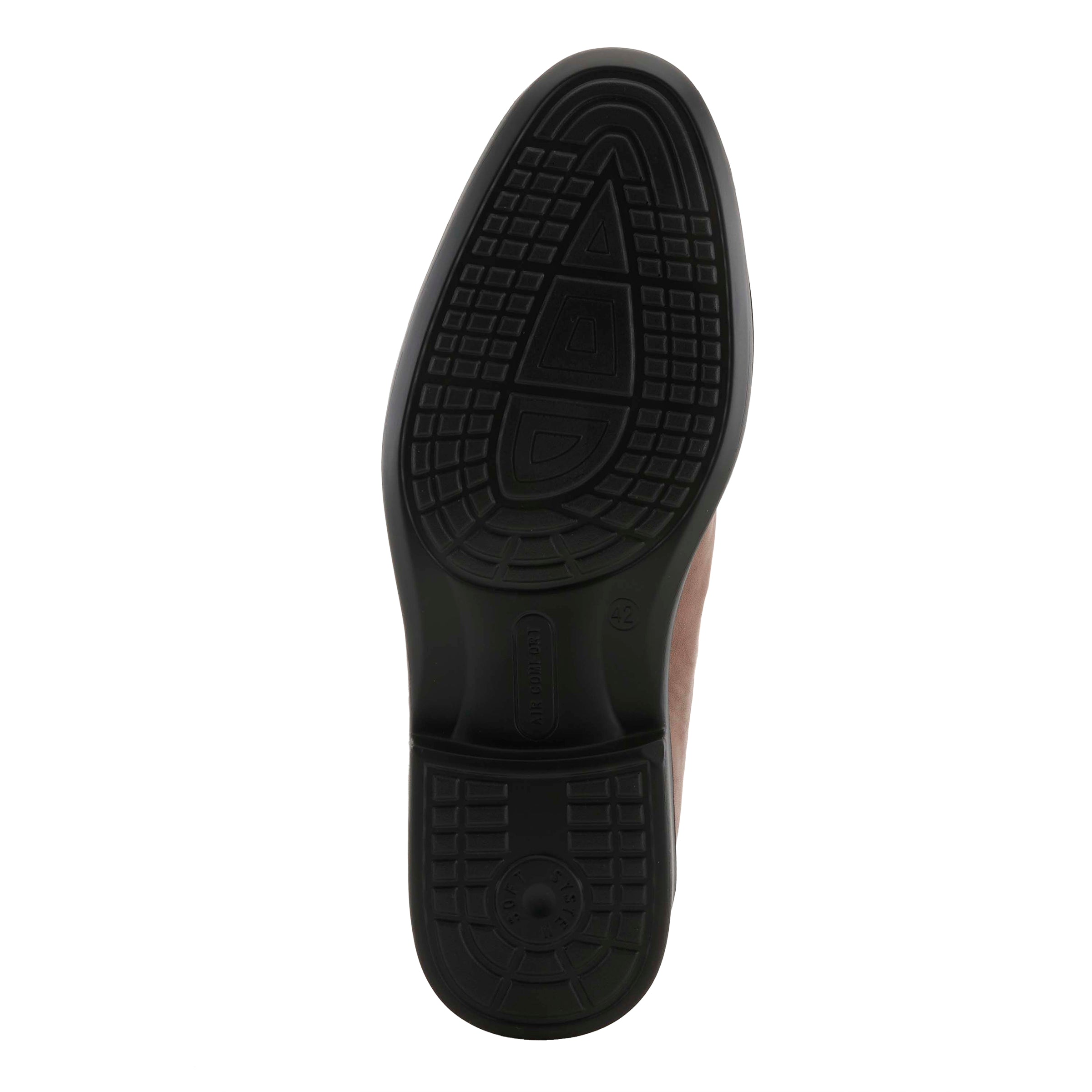 Premium quality leather slip-on shoe featuring twin side elastic goring and padded collar on a flexible, shock absorbent sole with a removable insole.