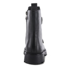 Genuine buttery soft leather uppers featuring satin finished pewter buckles fastened with stitched down leather loops, pull up leather tab and inside zipper. Extended mini sawtooth welt on a chunky toothy bottom, with silky soft inside fur lining and padded fur footbed.