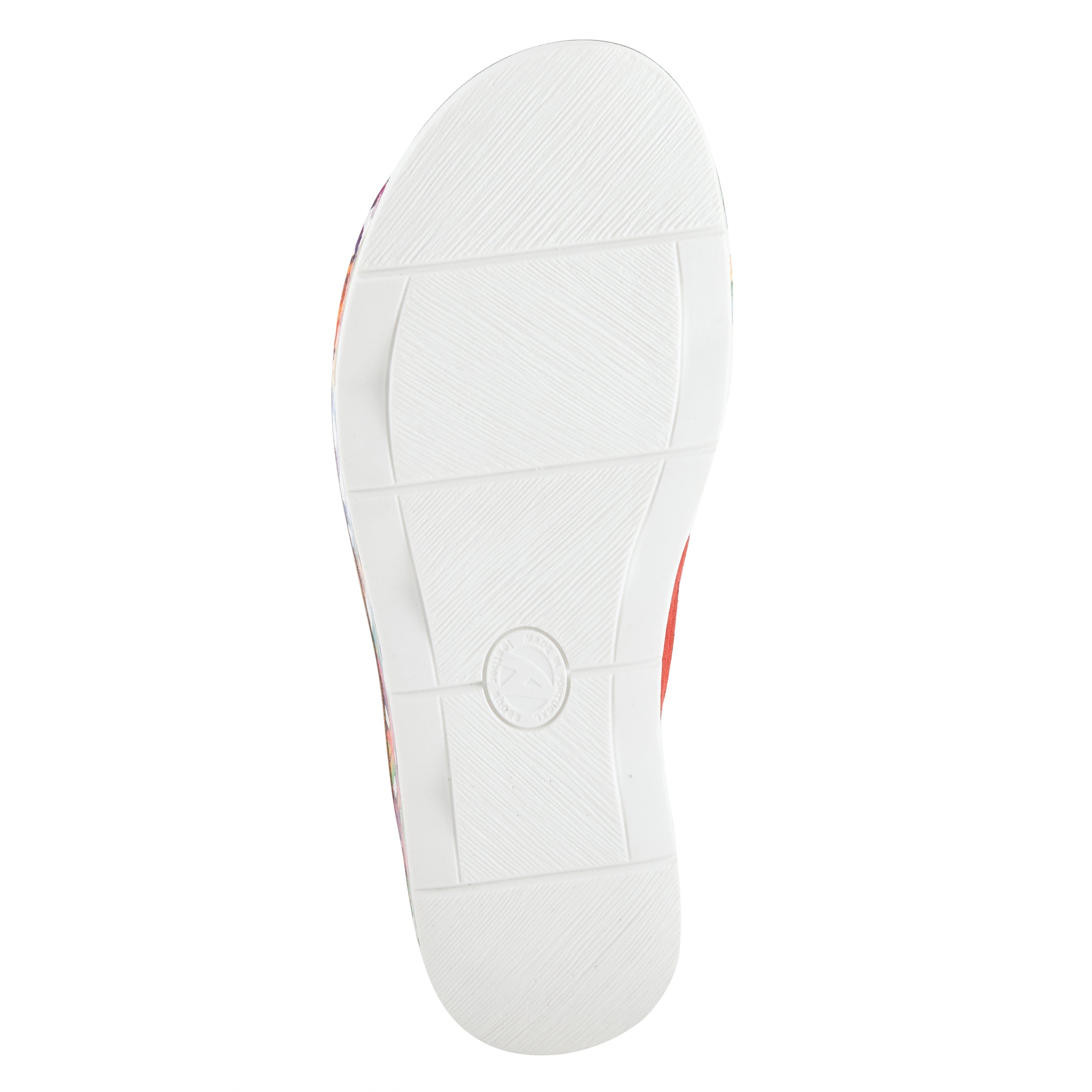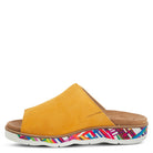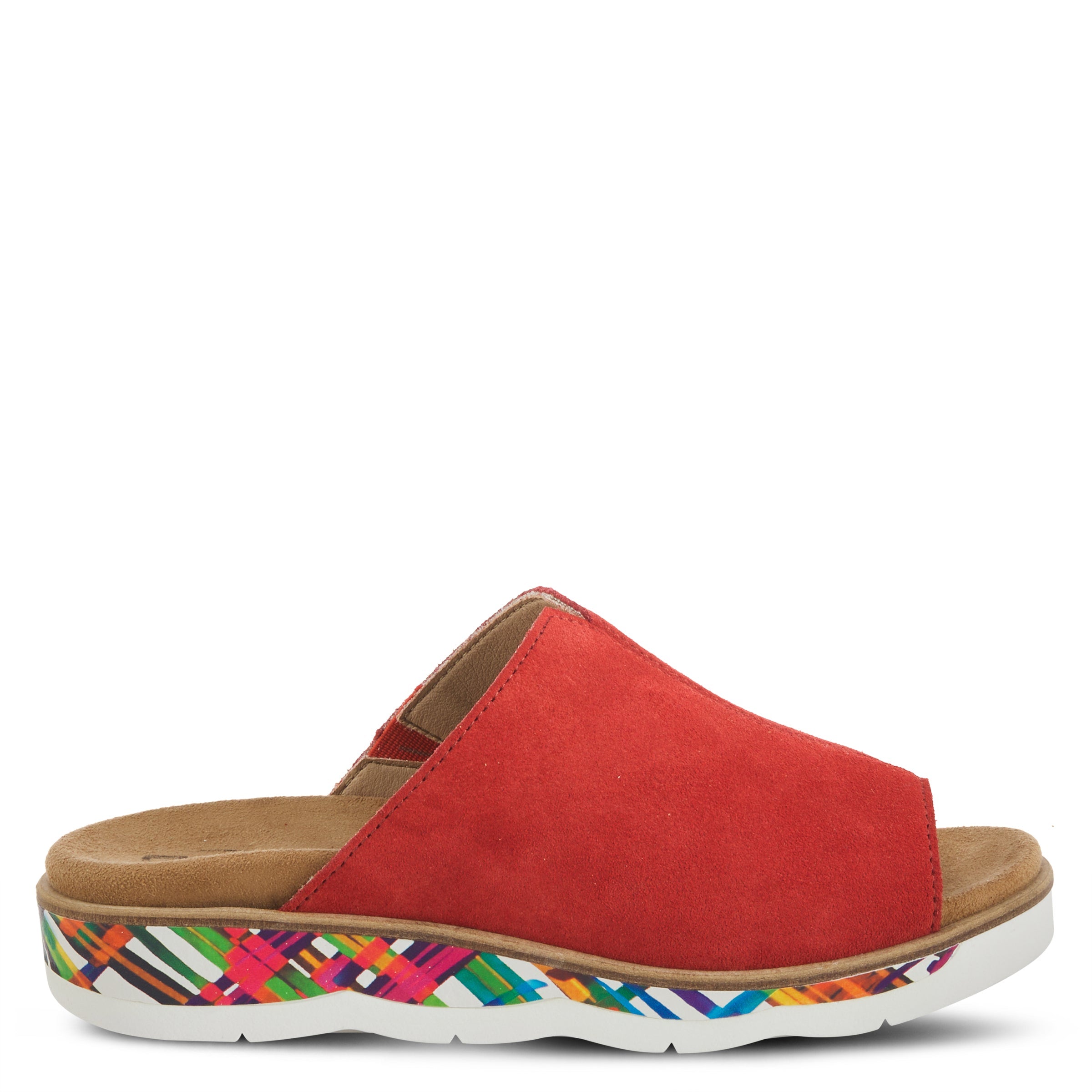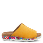 Slide into a cloud of comfort with this soft suede sandal with a cozy insole on a multicolor graphic design and scalloped outsole that promote style and comfort for your daily activities.