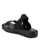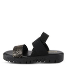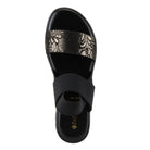 Comfy and cute sandal with a little platform and an elastic backstrap for adjustments and support for both day and night wherabouts. Illuminated by a geometric floral design across the front strap.