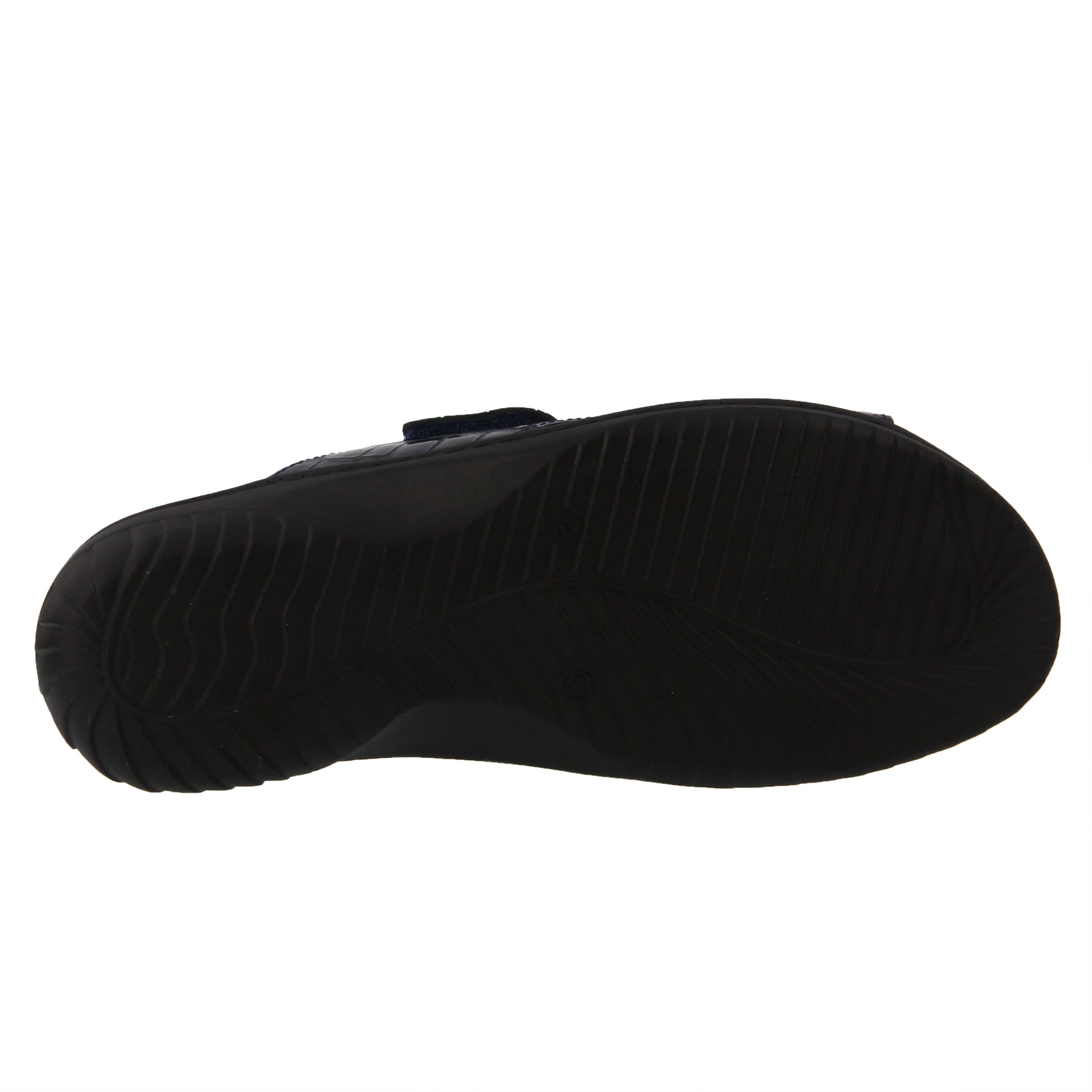 Go wild! These patent leather slides have an exotic crocodile inspired embossed design. The double Velcro straps give you adjustability and the removable leather insole provide customized comfort.