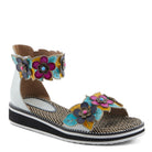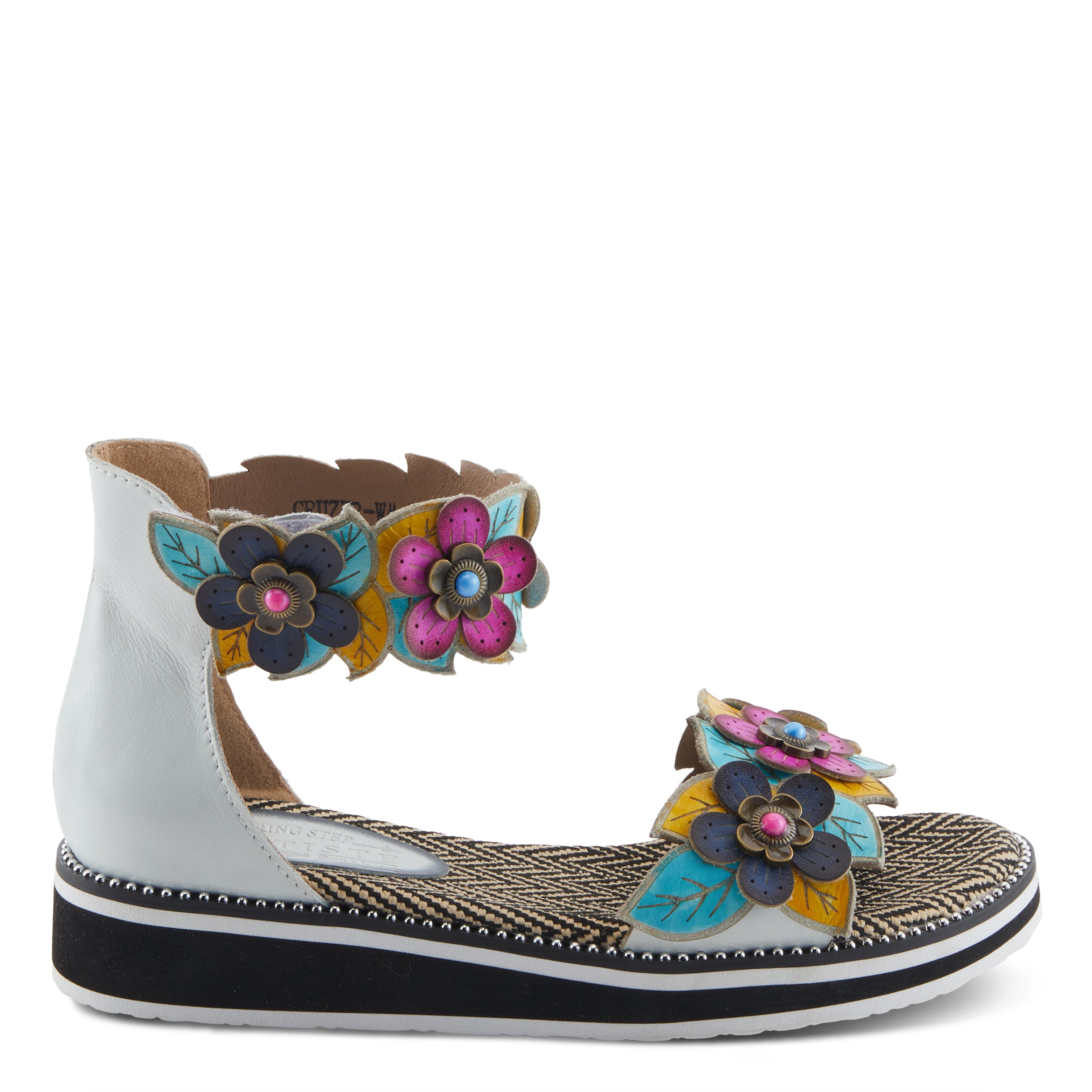With its open-toe, closed-back design, this sandal lets your toes breathe while keeping your feet secure. The scalloped edge effect from the leaves on the straps, adorned with a mesmerizing combination of floral appliques and antique embellishments, creates a captivating, garden-inspired look. And the hand-painted flowers in vibrant hues? They'll make you the center of attention wherever you go.