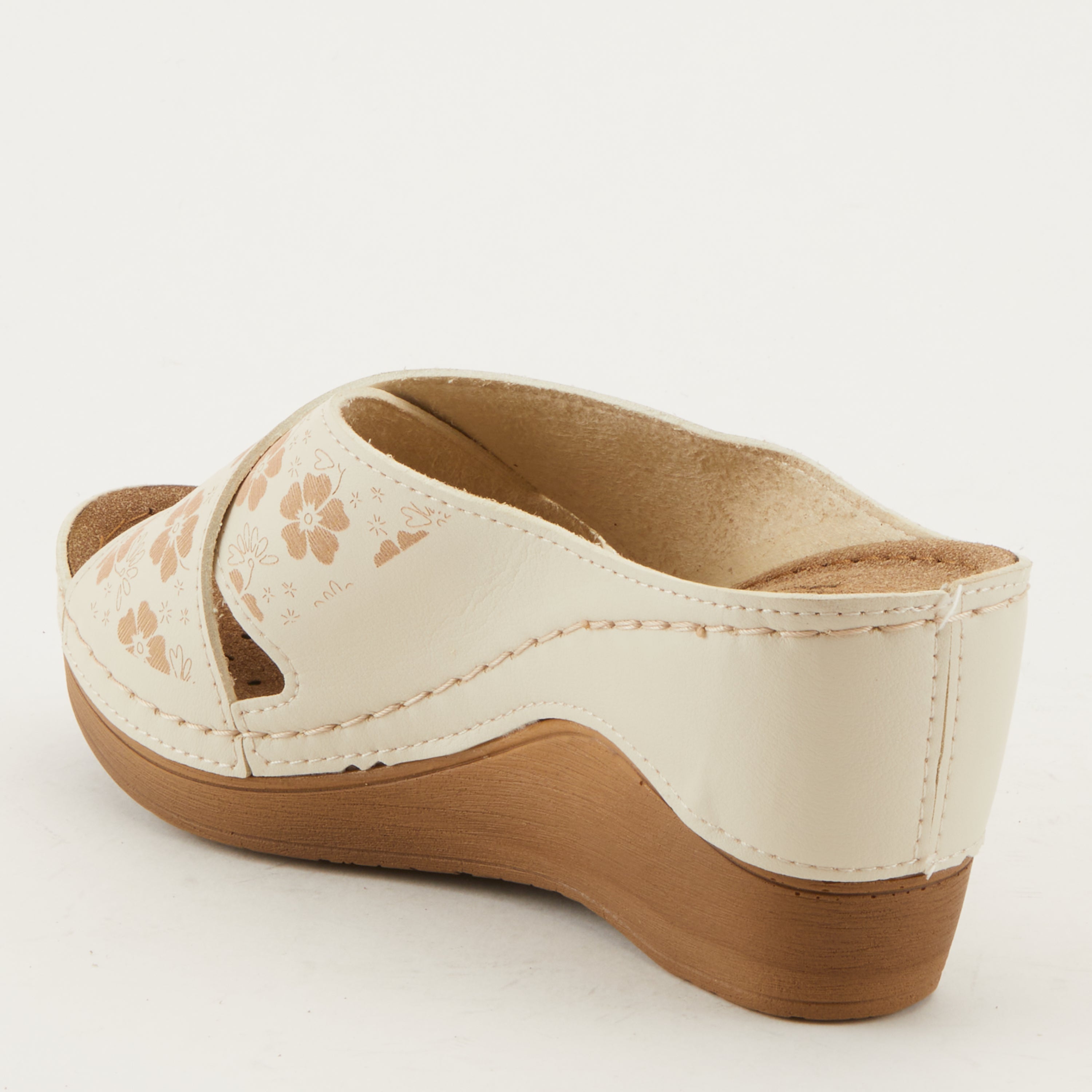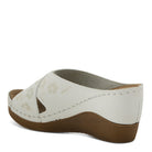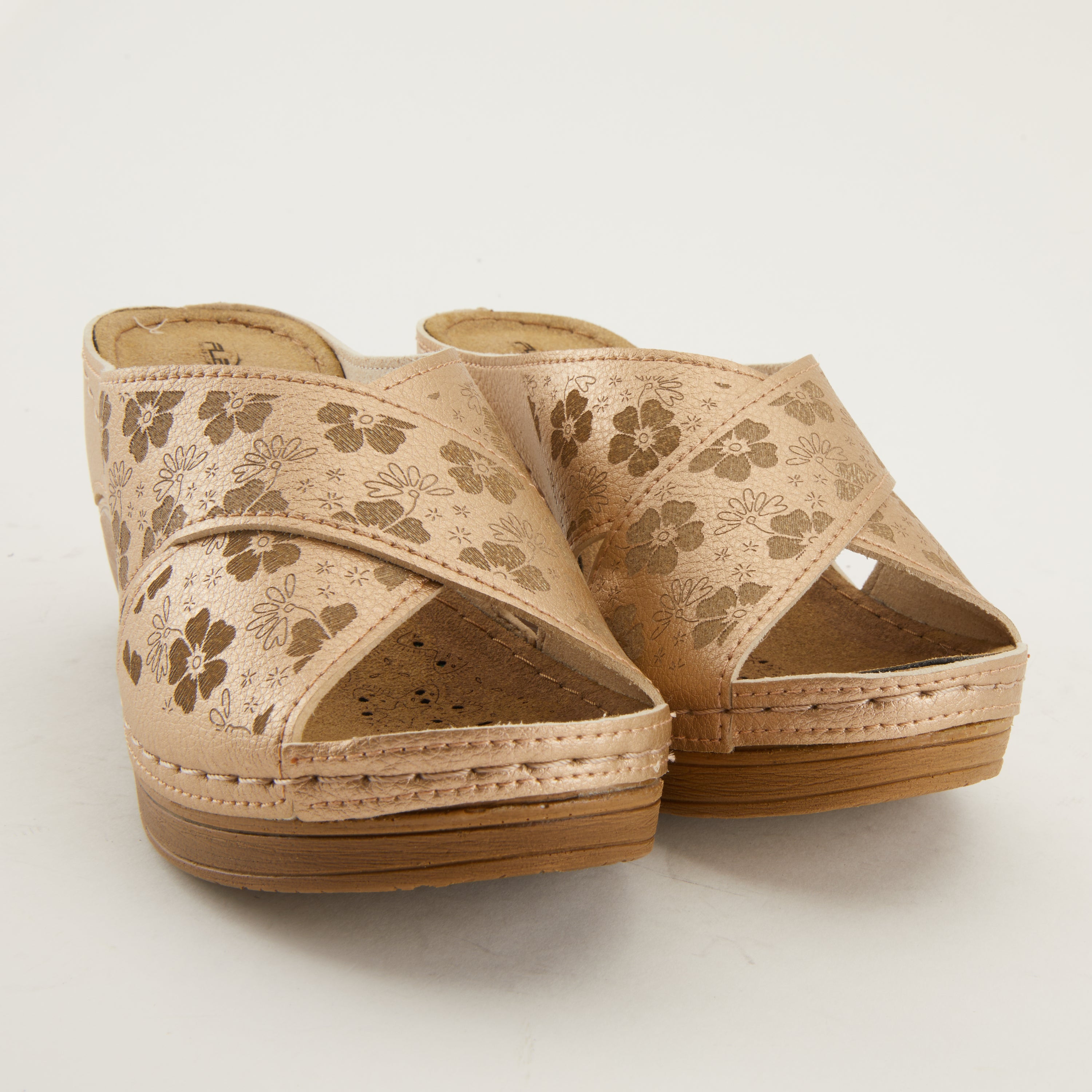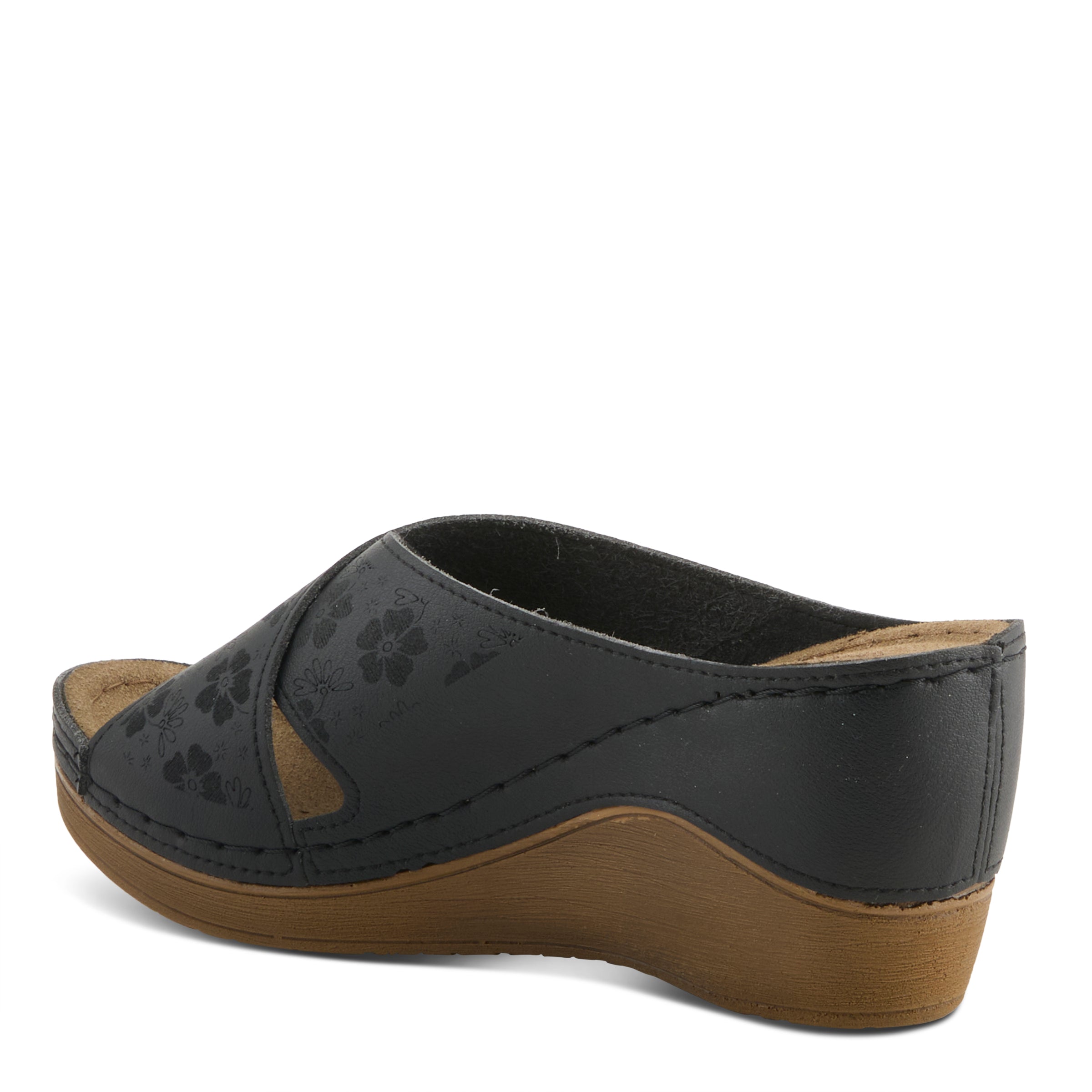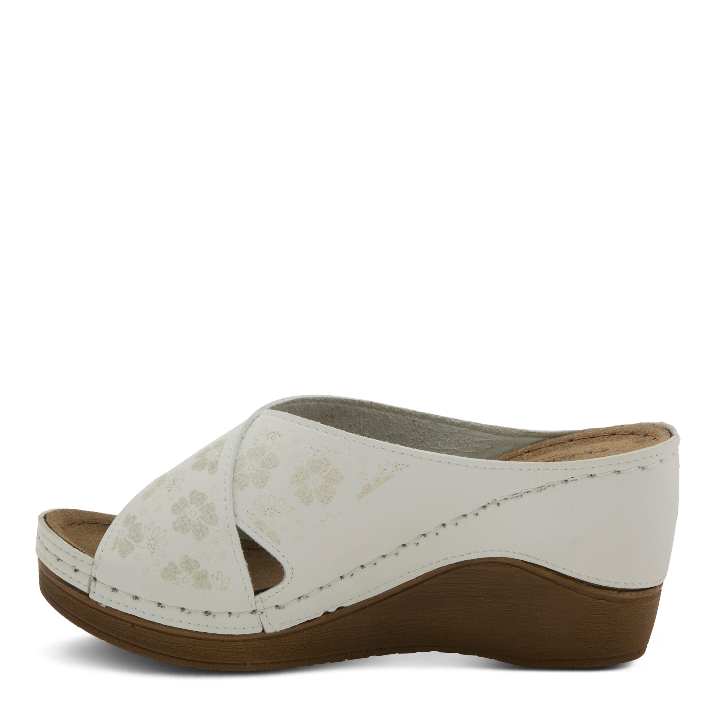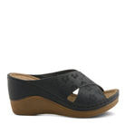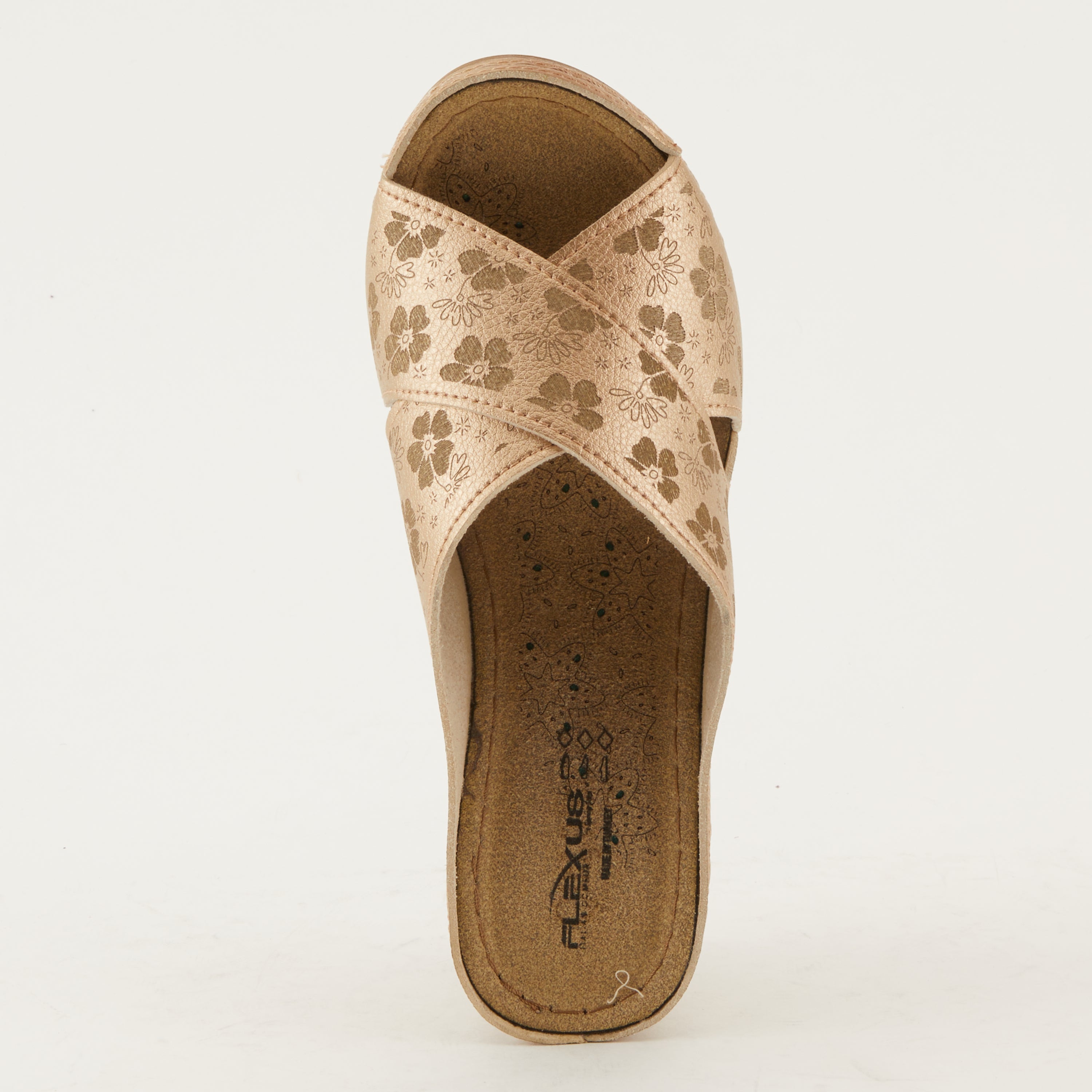 Introducing the Flexus Mayya comfort sandal, exclusively designed and crafted to elevate your walking experience to new heights. Boasting a laser embossed tonal, with lucky 5 leaf clovers adorning the tops of these criss-cross, synthetic leather straps on an all day comfortable poly wedge. These sandals blend style, functionality, and unparalleled comfort, making them the perfect companion for all your daily adventures.