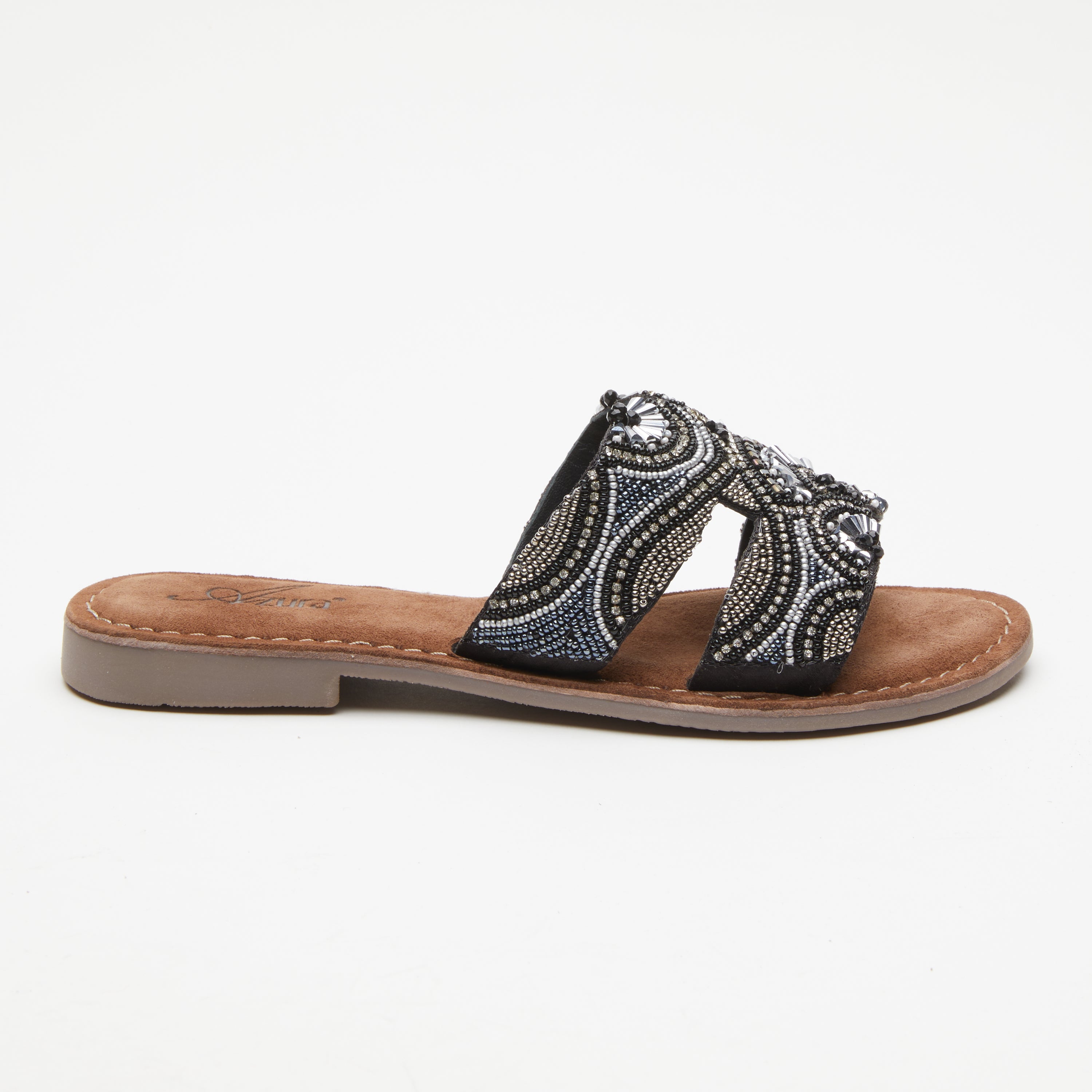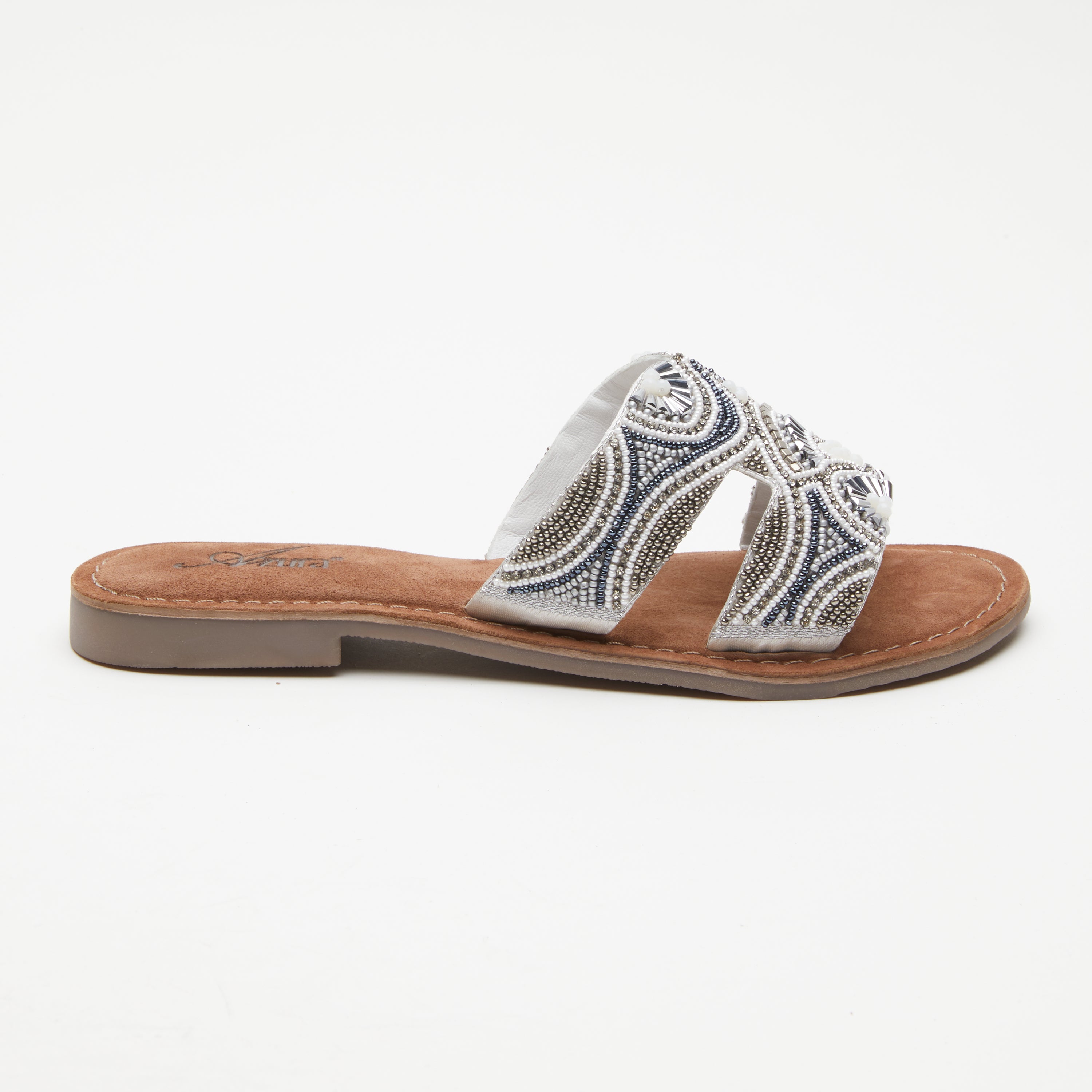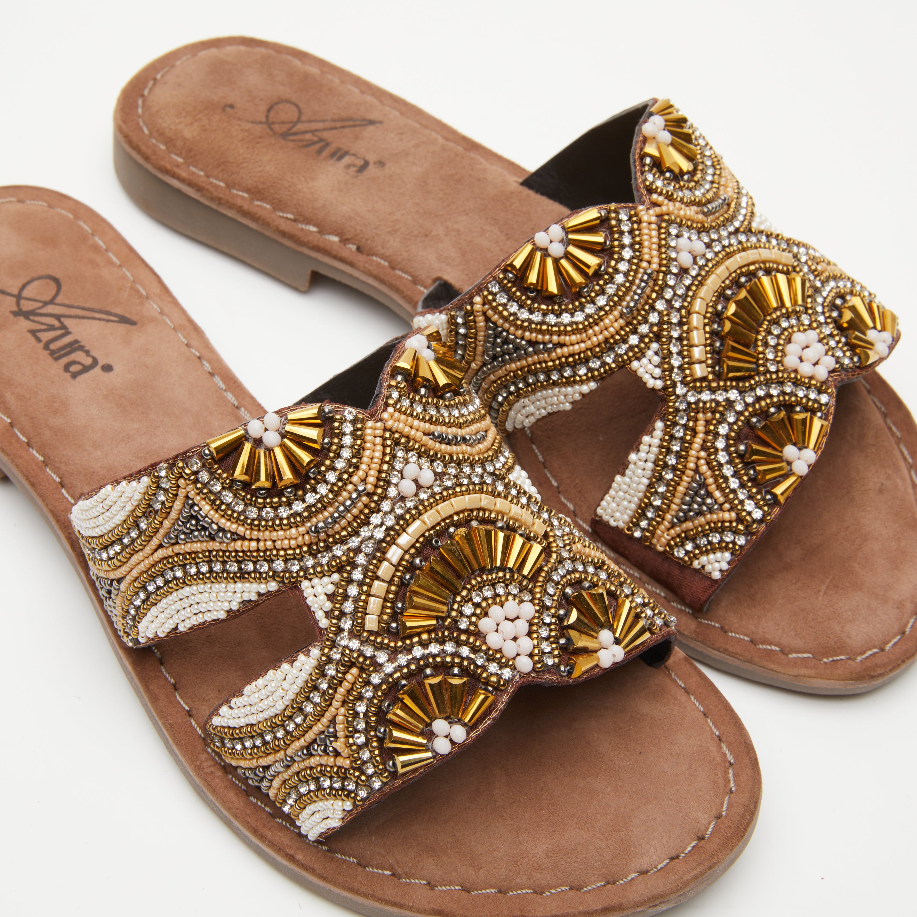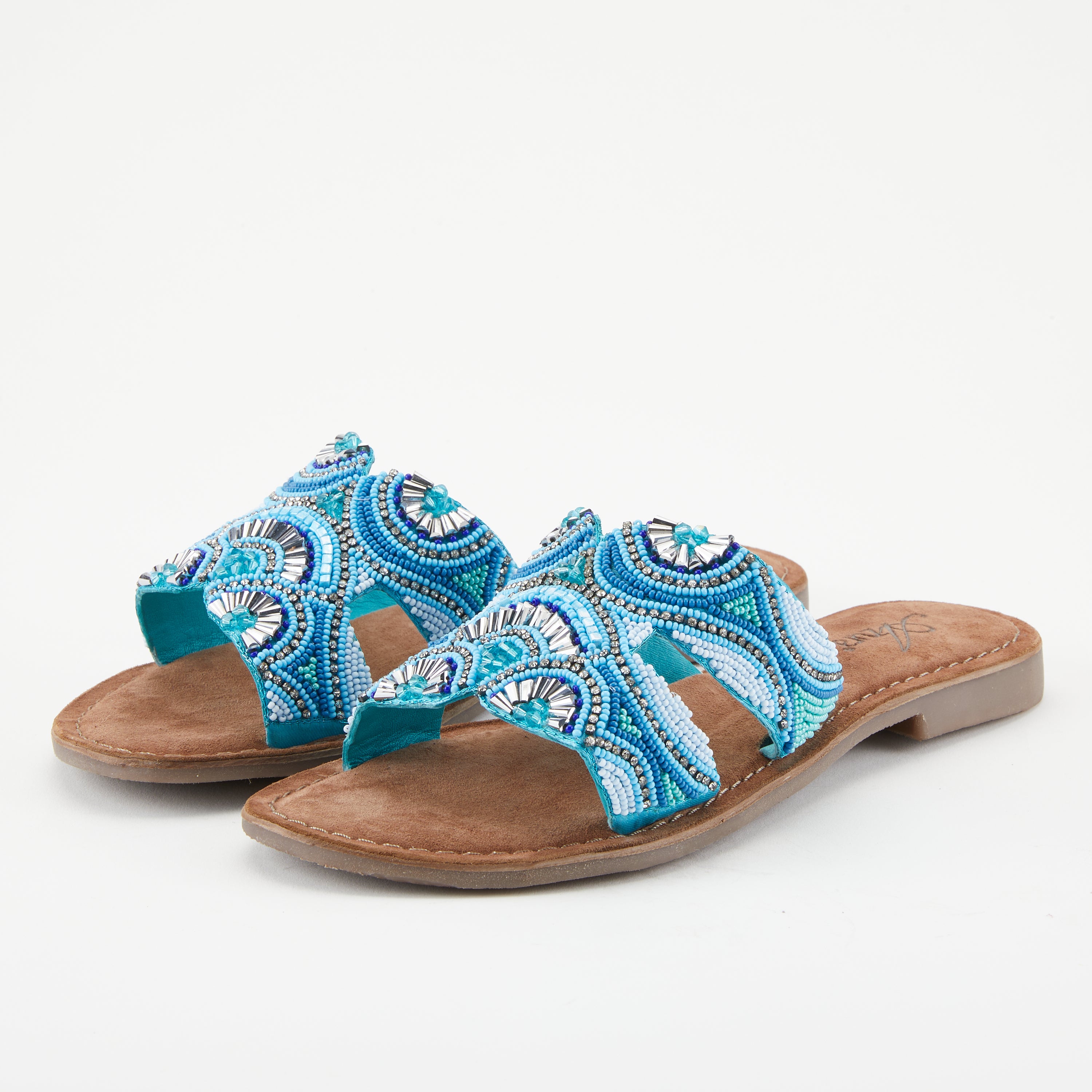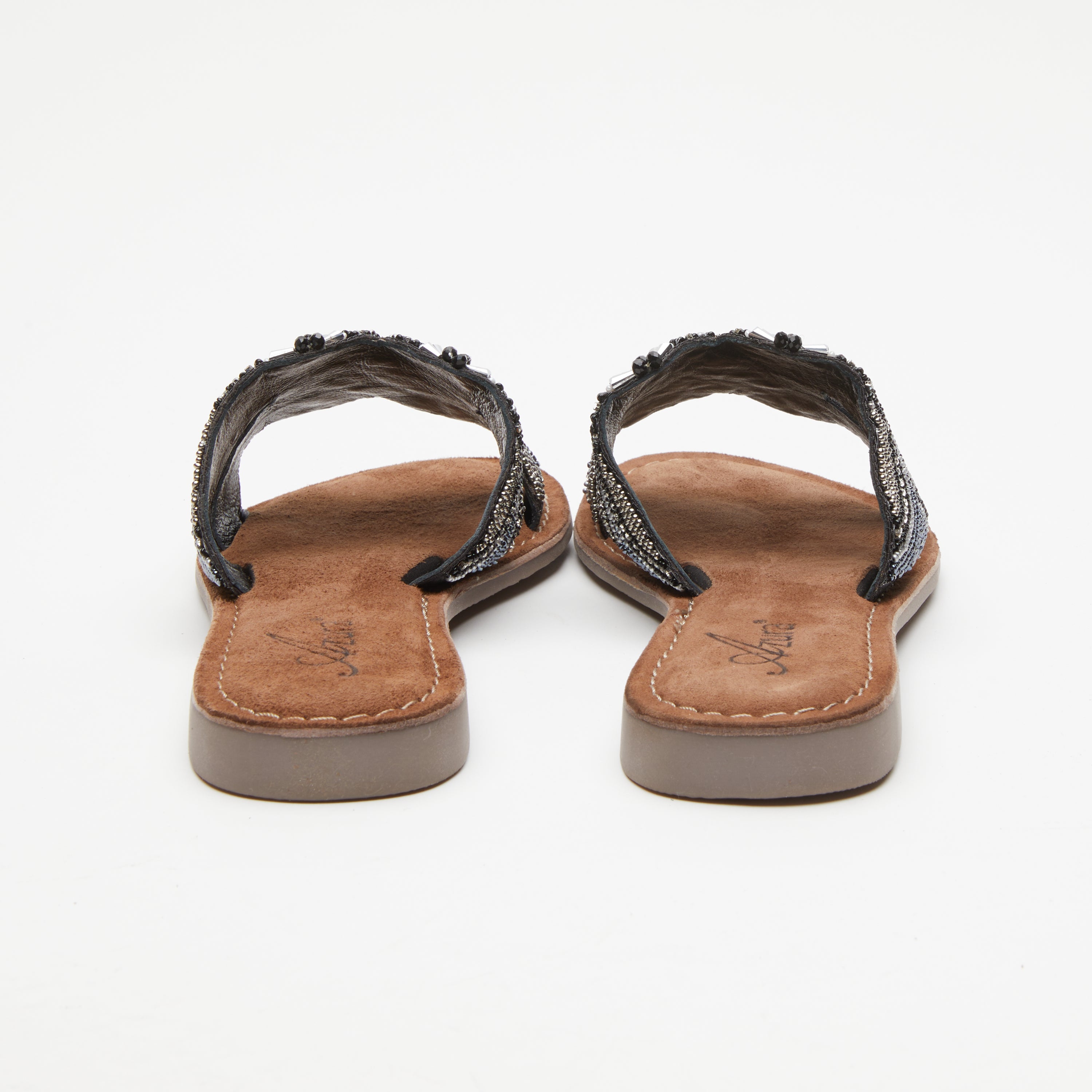 One thing is for sure about these flexible, all day and into the night comfortable slides - they are gorgeous. And it's all in the details - the leather lined, beading of the side cutout front strap and the padded comfort insole.