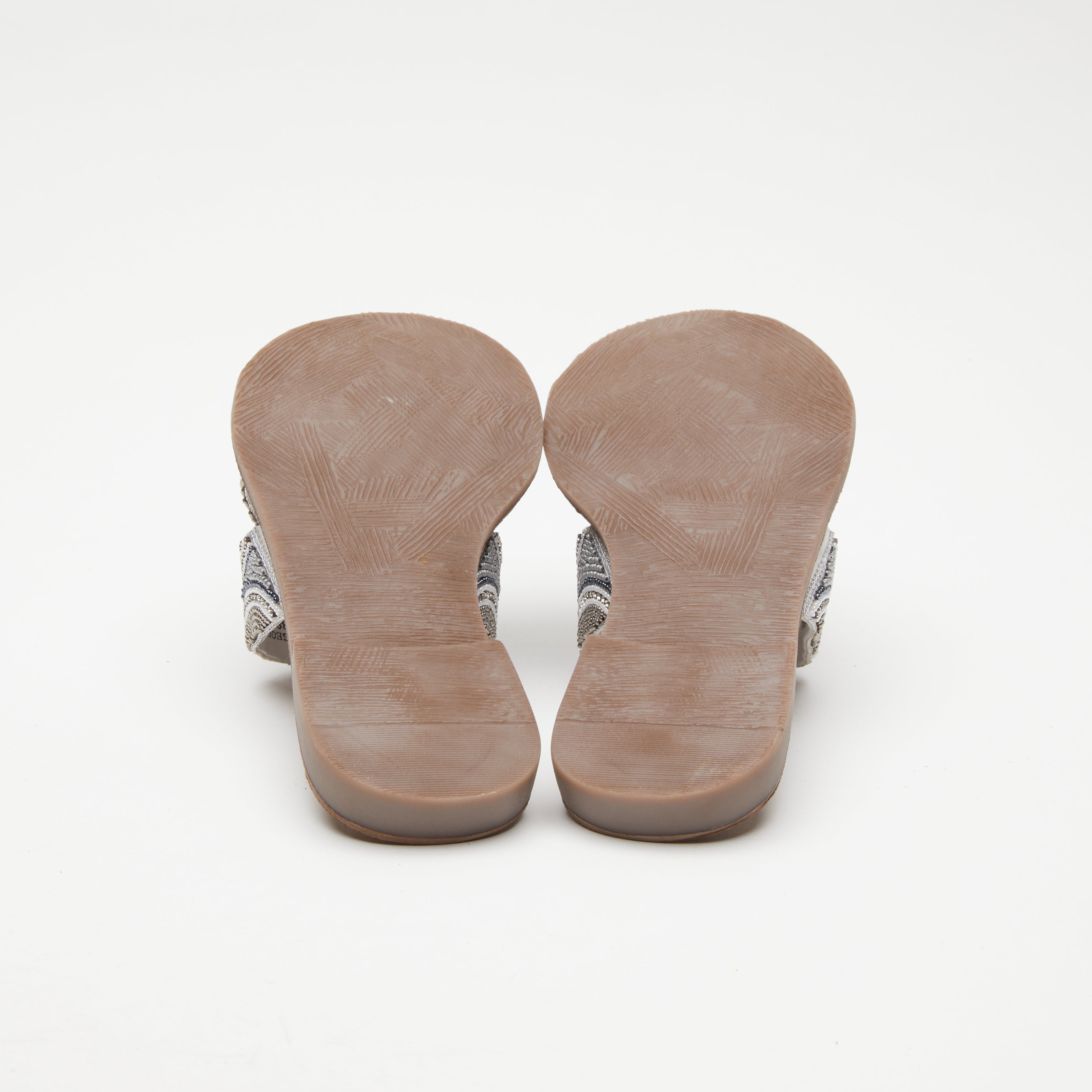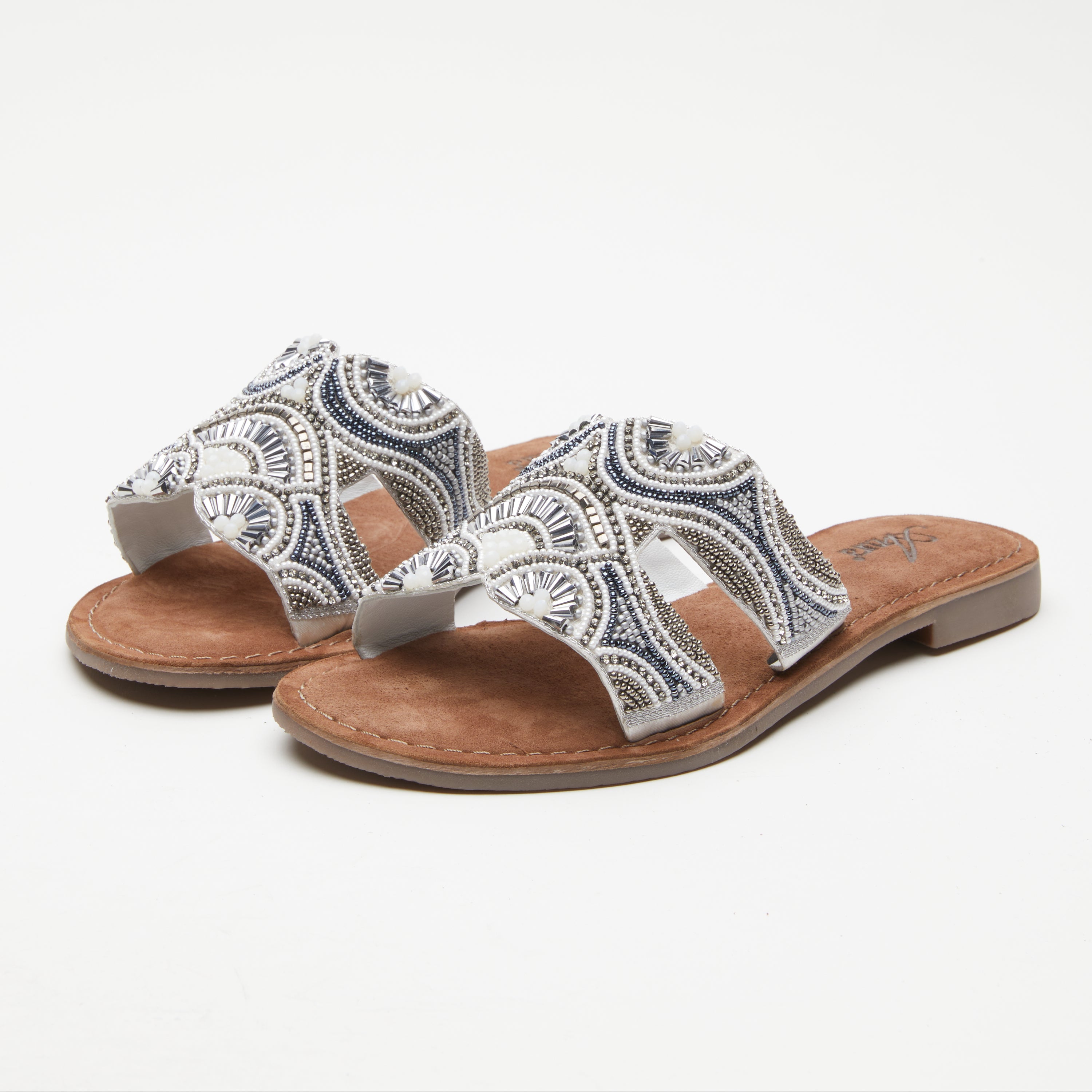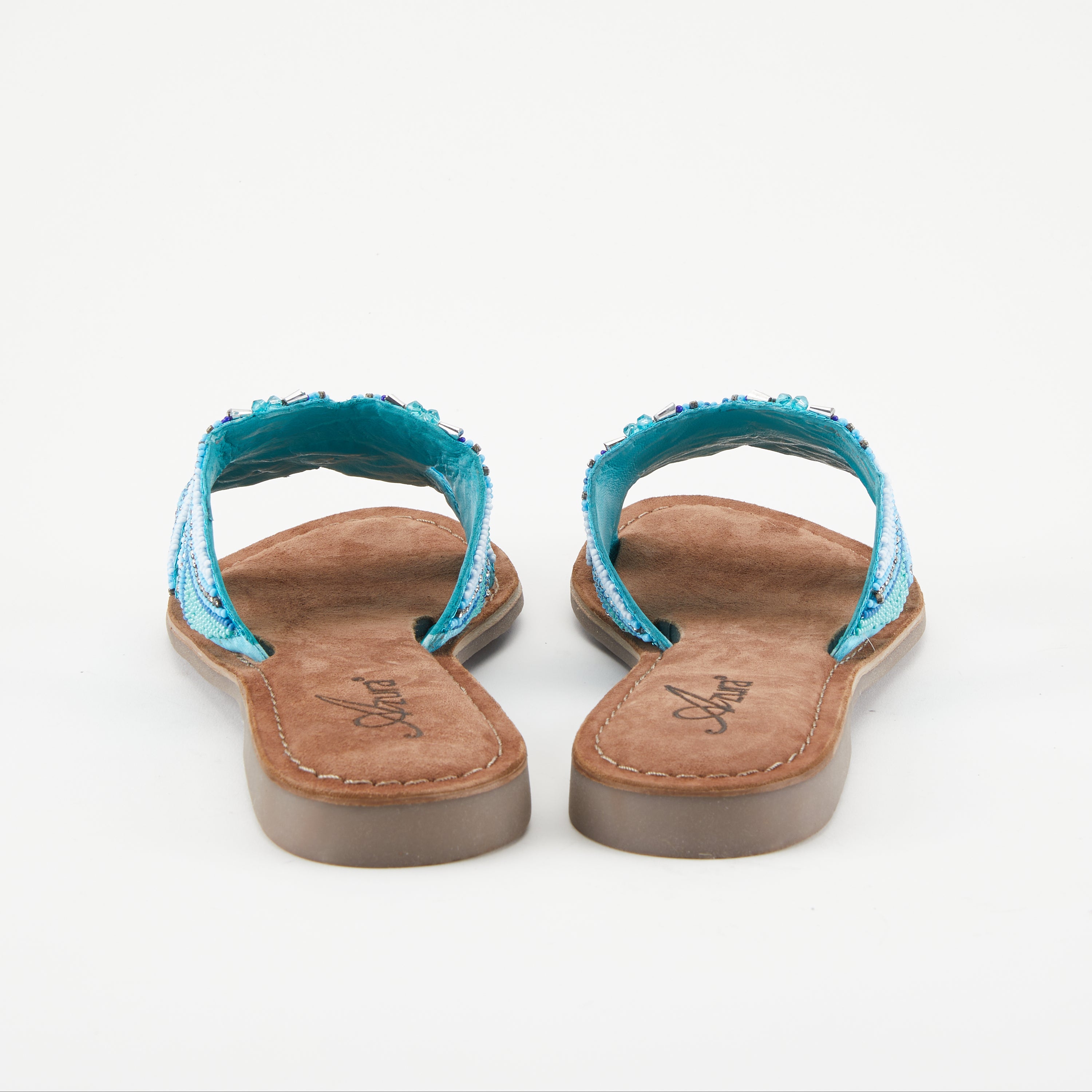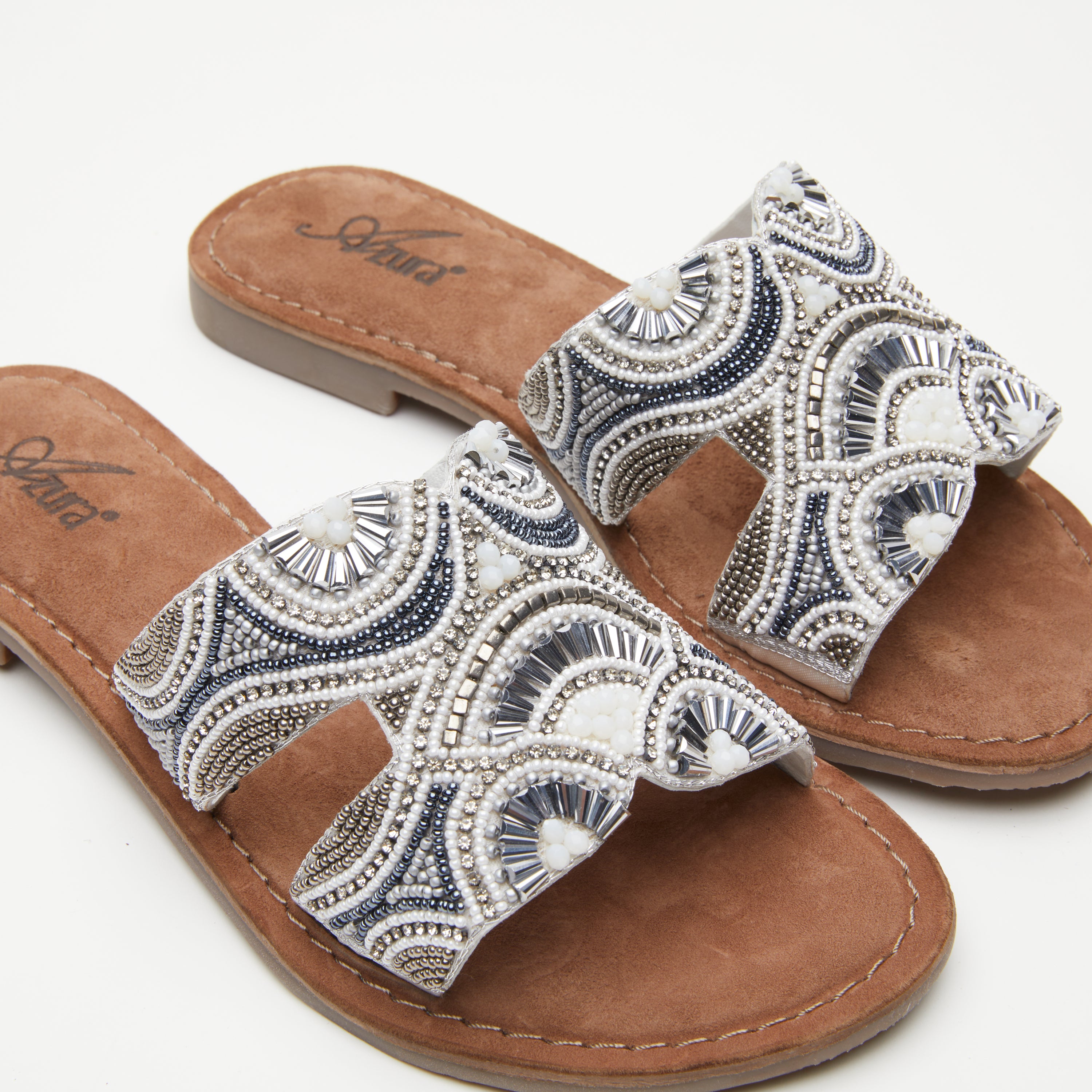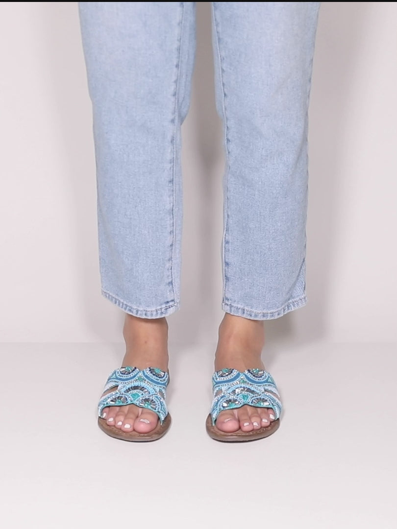 One thing is for sure about these flexible, all day and into the night comfortable slides - they are gorgeous. And it's all in the details - the leather lined, beading of the side cutout front strap and the padded comfort insole.