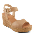 Elevate your style and comfort with our wedge sandal, featuring a secure buckle closure, a cushioned footbed for all-day wear, and a luxurious leather upper.