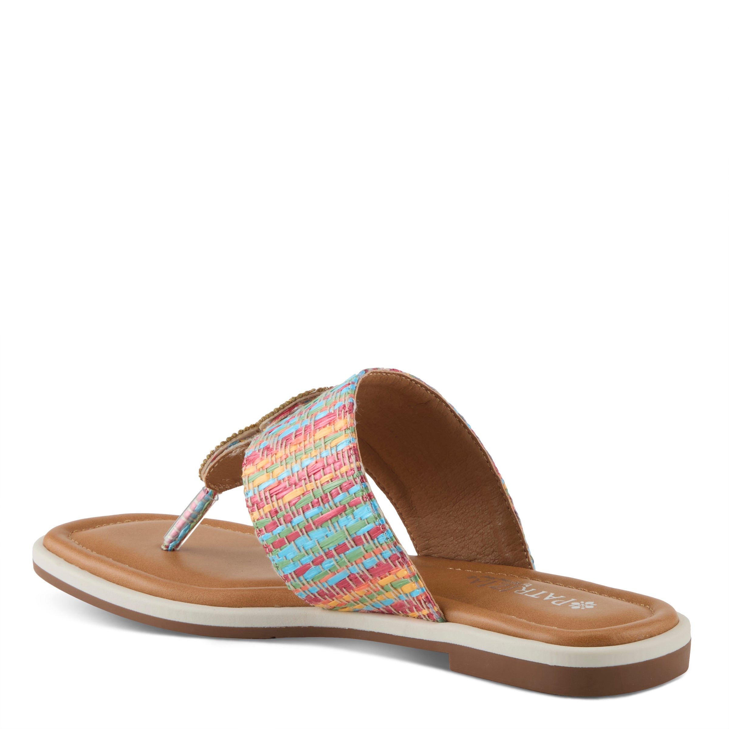 Get ready for Summer with our beautiful thong slide featuring fun rafia material and outstanding center beaded ornaments.