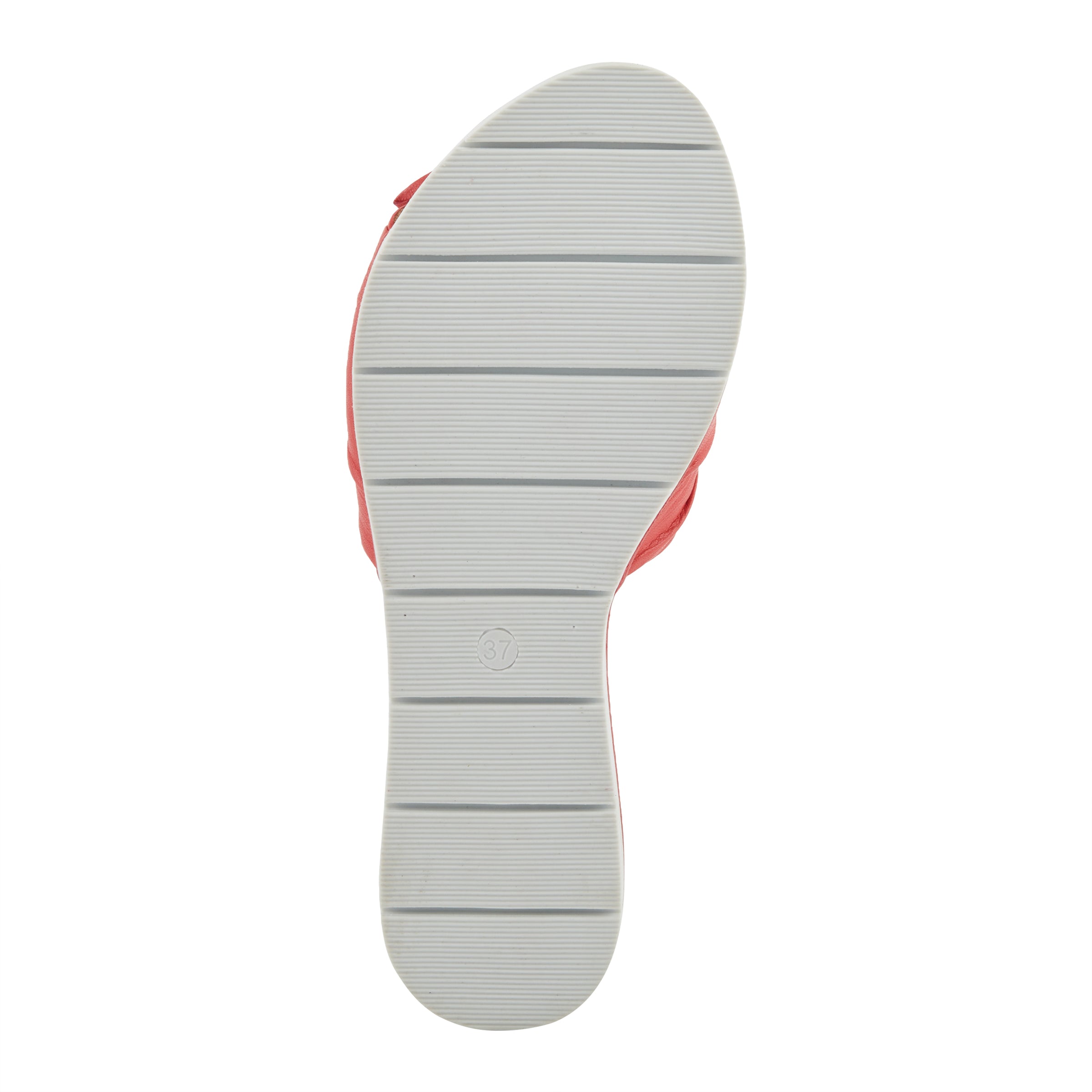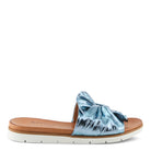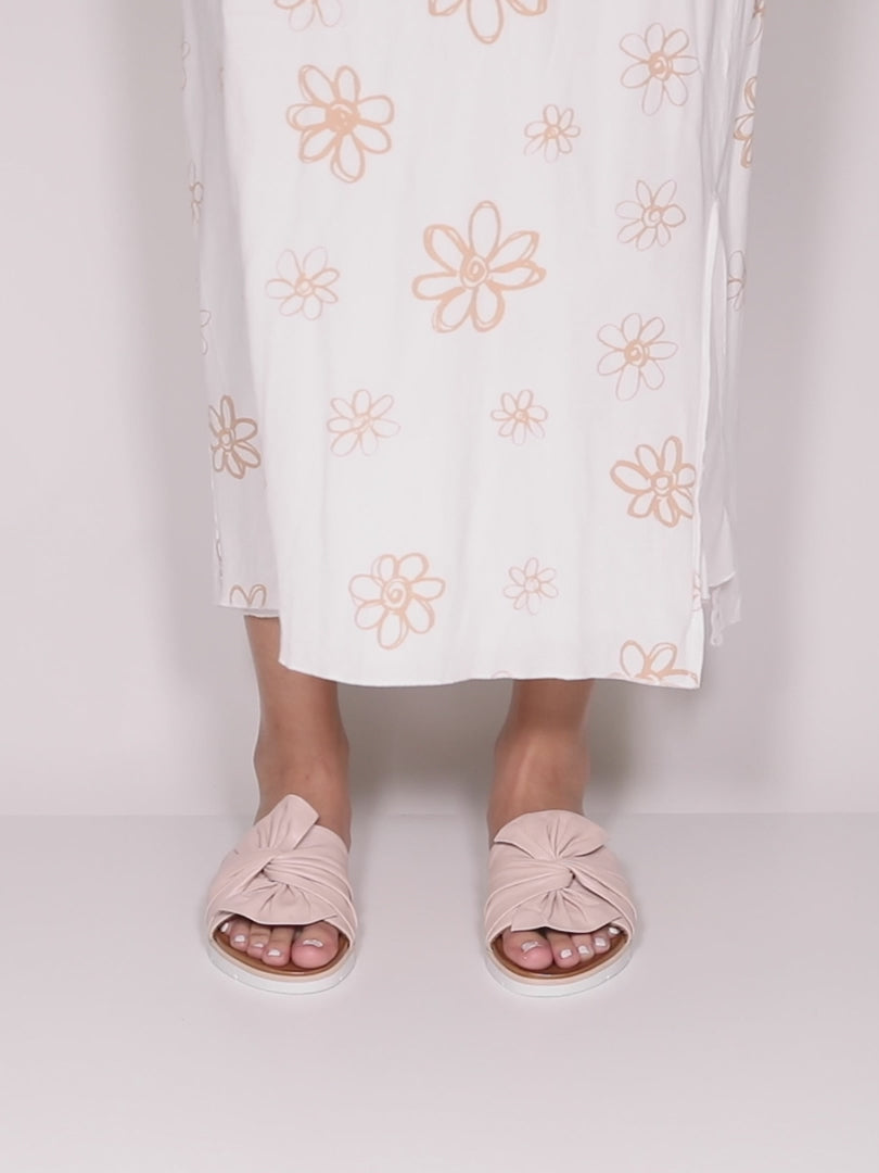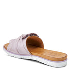 Slip on style with this beautiful slide sandal with a leather bow twist detail. In a rainbow of colors and a flexible outsole for comfort, this is your go-to slide for the season. Small V-goring located underneath the bow allows for additional adjustability. Plus everything your foot touches is leather.