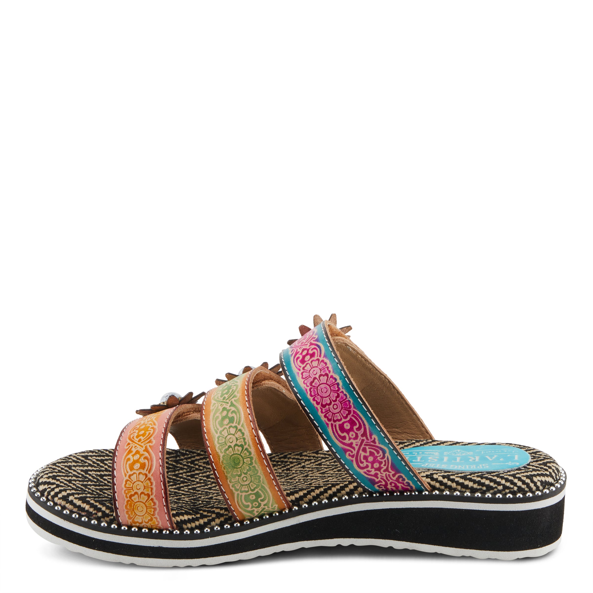 - Lightweight athleisure flatform triple band slide for a fashionable twist showcasing hand-painted design.