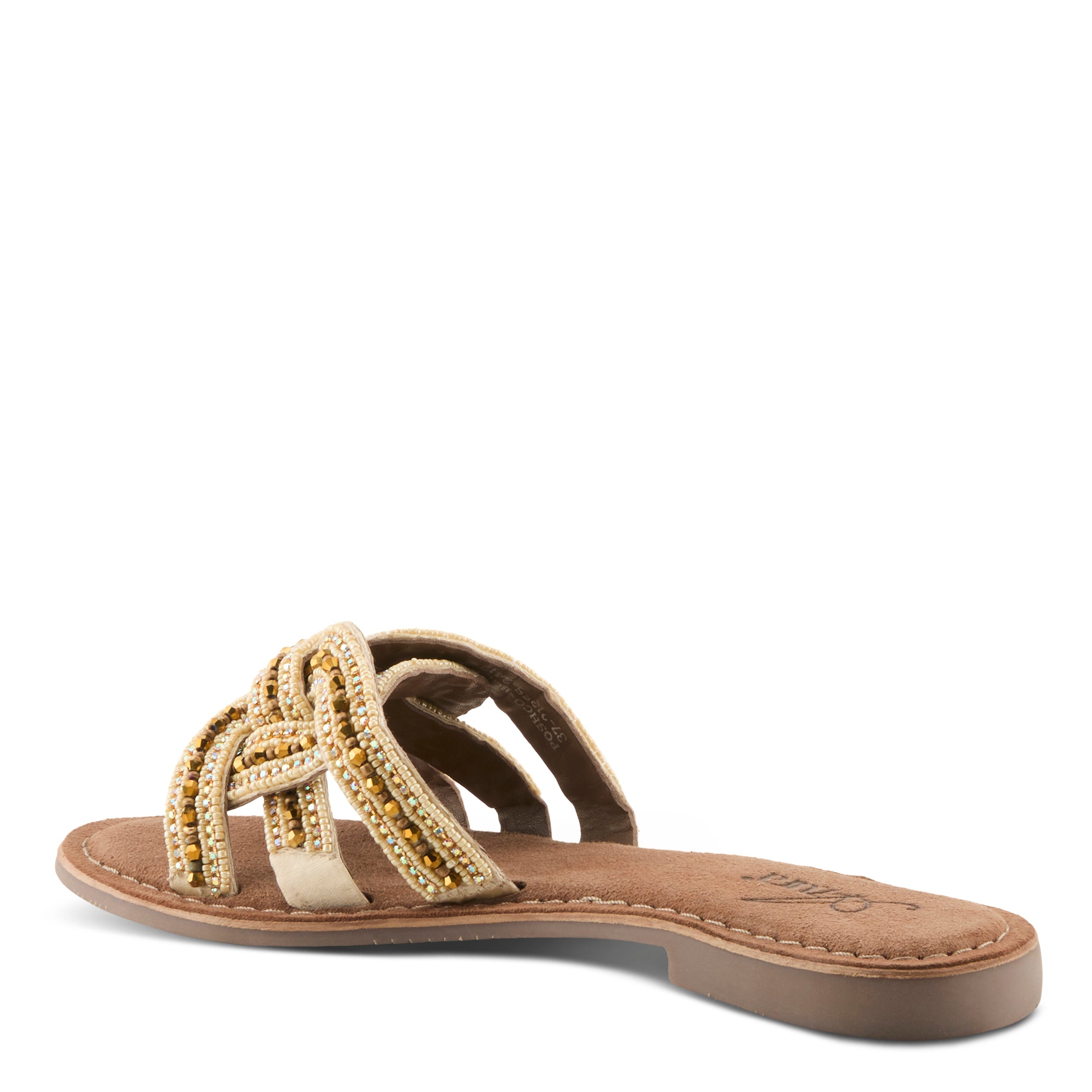 - Intertwined straps with tonal beads for a chic, contemporary design