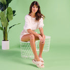 Step into a cloud with these trendy, cushioned, slip-on sandals. The unique curved sawtooth designed sole give you an extra bounce with your stride.