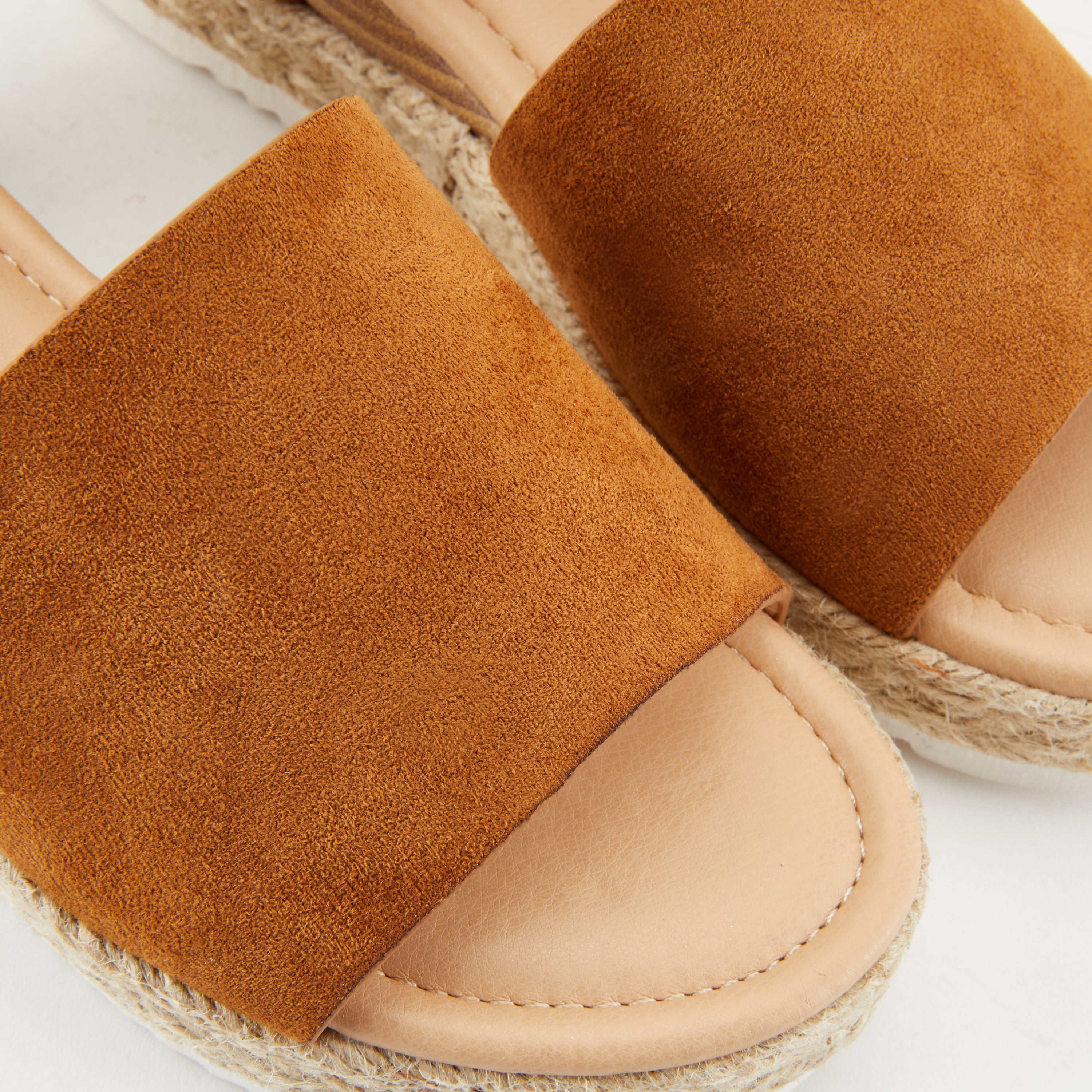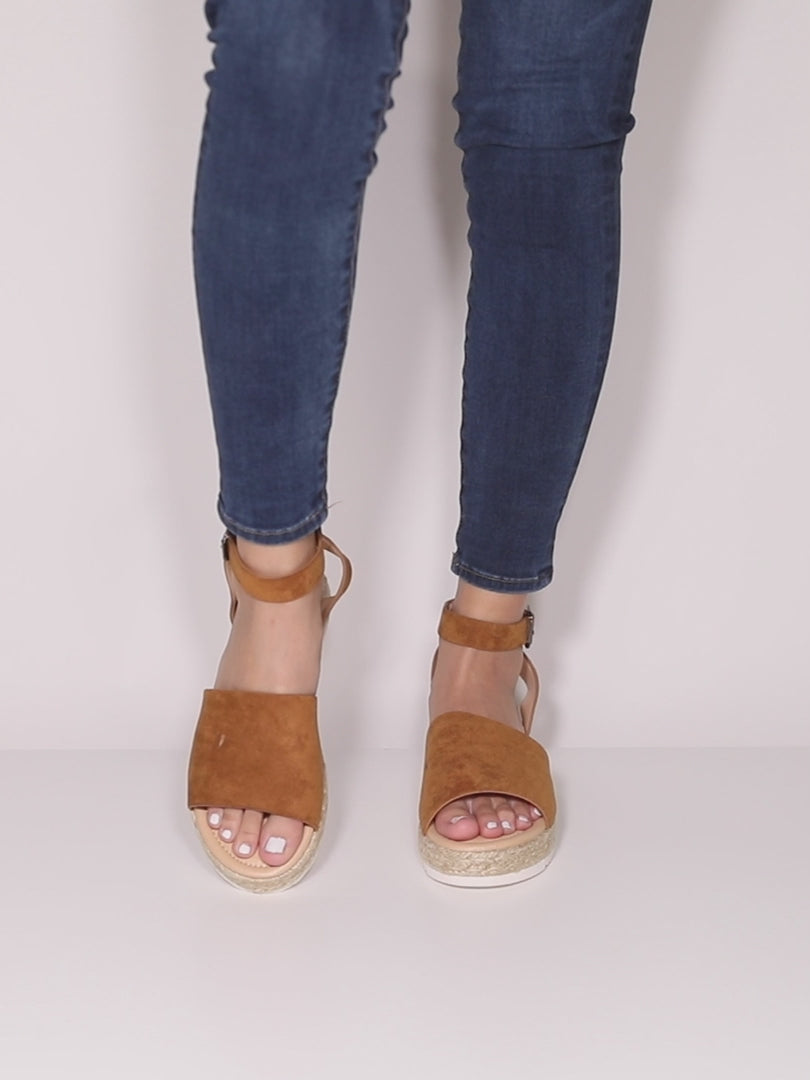 A soft microsuede upper is elevated on a faux stacked wedge accented with a subtle jute wrap just above the outsole. A cushioned footbed and sturdy sawtooth sole will make this a summer sandal staple