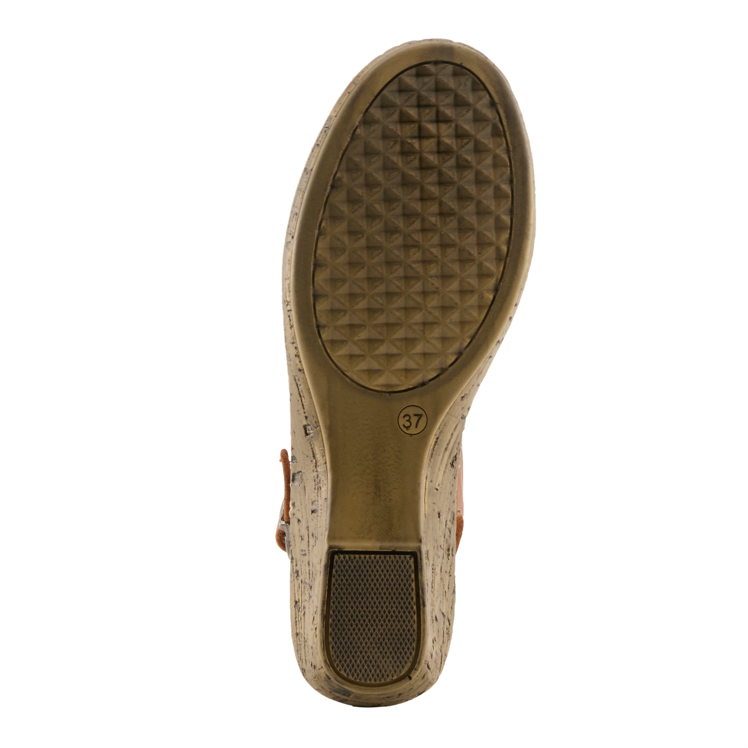 -Genuine leather upper, antiqued finished metal buckle, stitched upper construction, cork-inspired textured wedge.