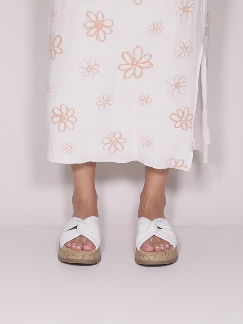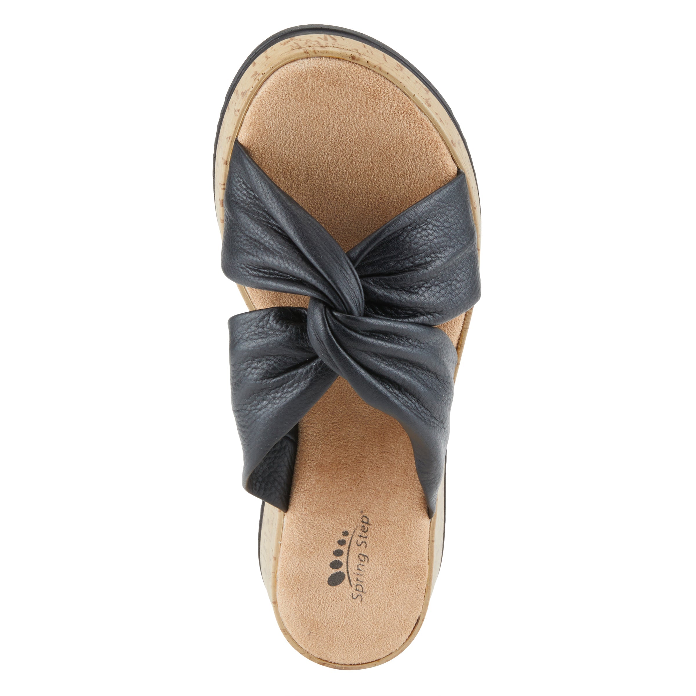 Offer comfort to your feet by wearing this stylish slide. Soft leather upper, cork outsole and a suede memory foam footbed, that adds extra comfort so you can walk around all day.