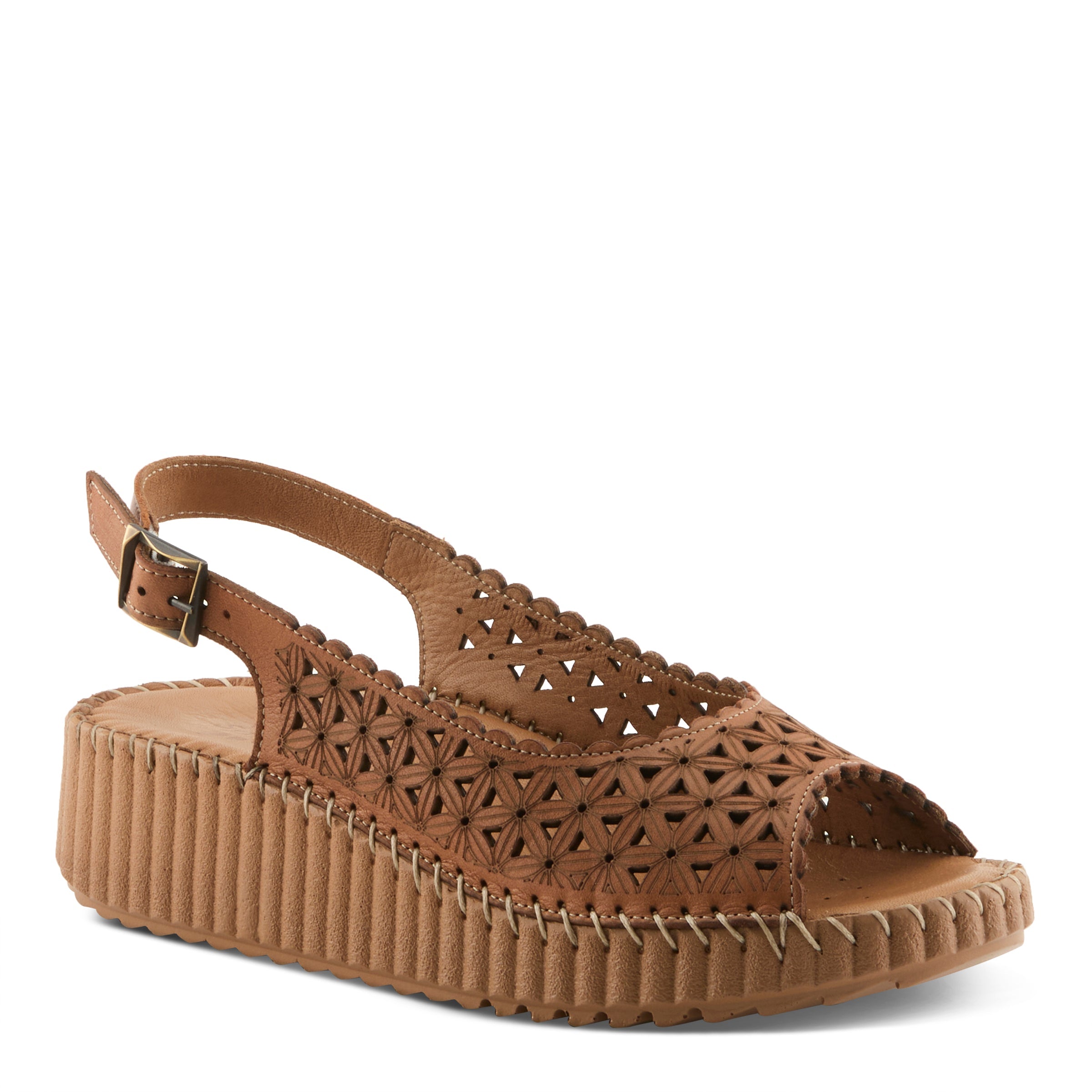 Elevate your warm-weather wardrobe with this artisan-inspired slingback wedge sandal, made in Turkey with traditional craftsmanship. Crafted from a soft leather upper, smooth leather lining, and a cushioned leather insole, this style blends timeless quality with everyday comfort. Handstitched details highlight its artisanal roots, while the padded footbed ensures ease with every step. The standout element is the bold fluted outsole, designed with sculptural ridges that provide stability, traction, and visual interest.