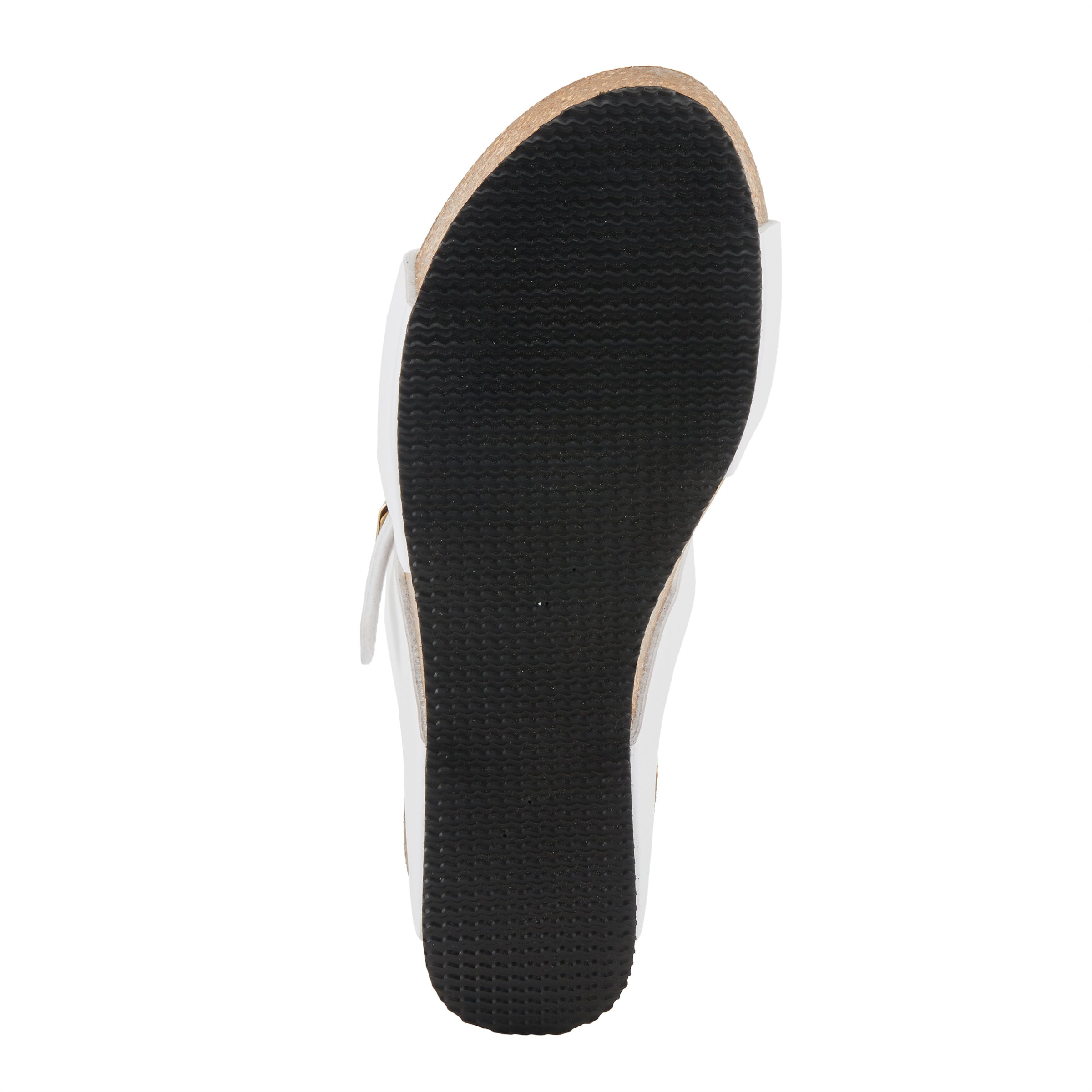 Step into distinctive style and unmatched comfort with our double buckle slip-on wedge sandal, featuring unique buckle strap detailing that extends down the outsole and a moldable footbed for all-day support.