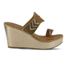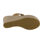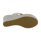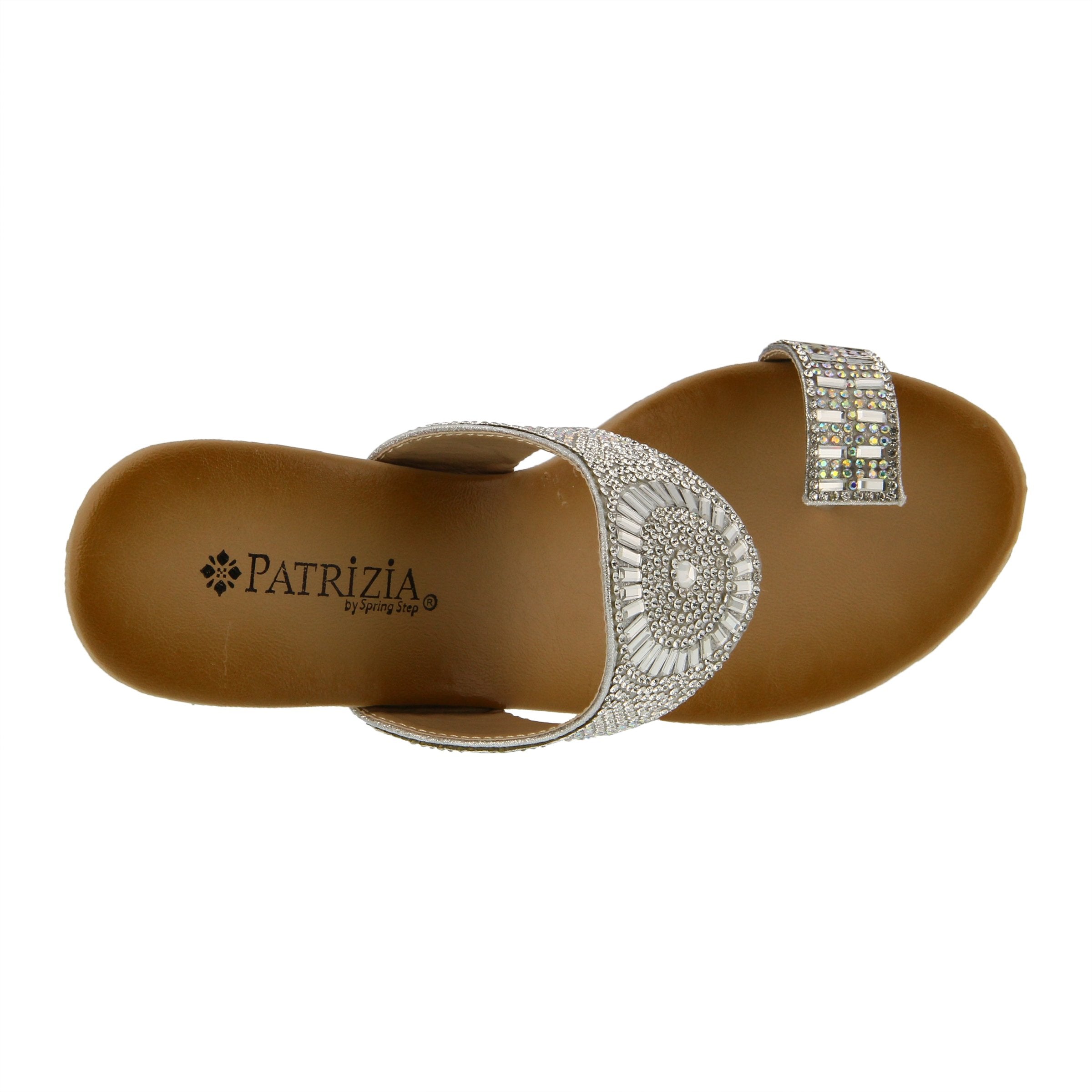 Rhinestone embellished toe-ring wedge sandal with a dusted metallic wedge.