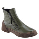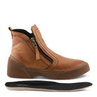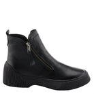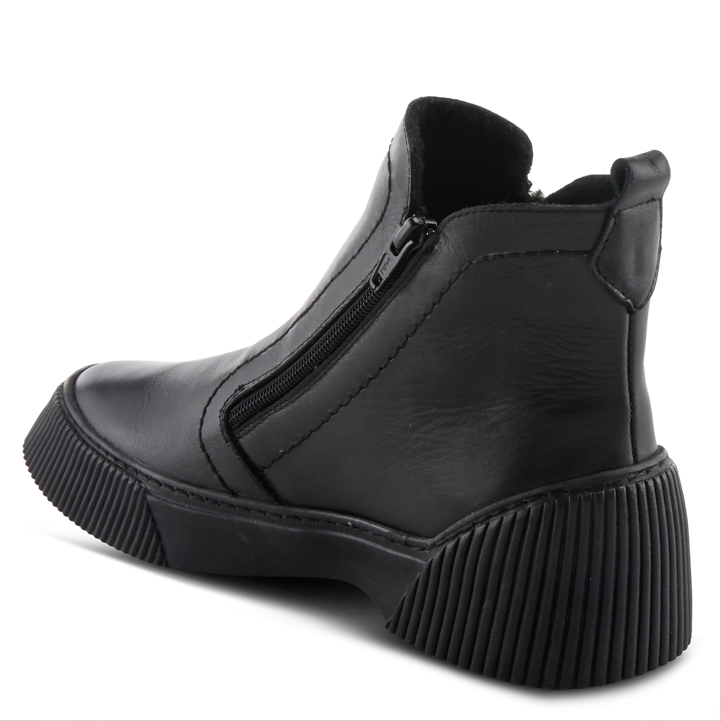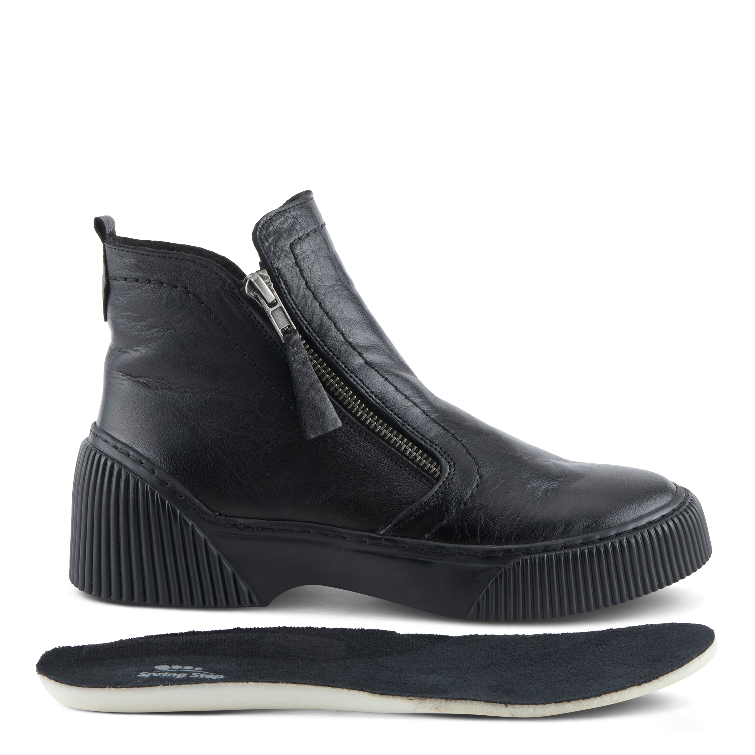 Premium leather bootie with a modern silhouette featuring an inside zip for easy on and off and additional decorative zipper for that fashion detail. On a sporty sole and cushioned footbed.