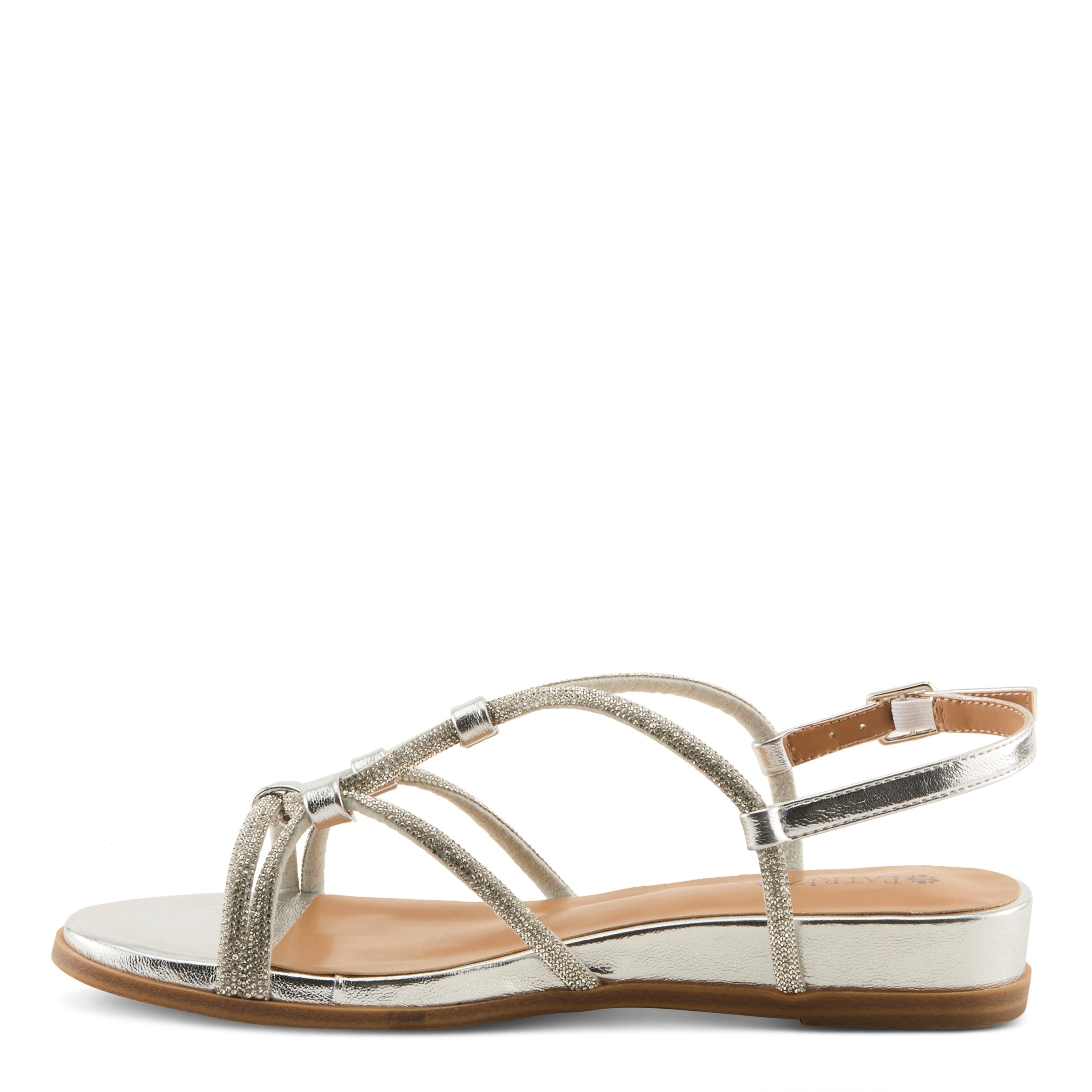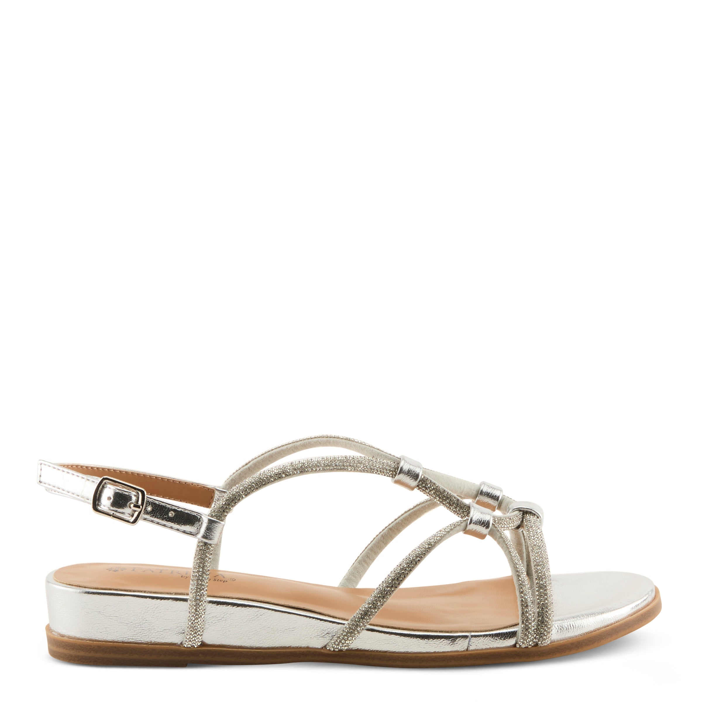 Elevate your everyday style with this effortlessly chic demi wedge sandal, designed to blend modern elegance with all-day comfort. Featuring slender faux leather straps accented with subtle shimmer, this sandal is cool, trendy, and perfect for any occasion. The strappy silhouette creates a flattering look while the demi wedge heel offers just the right amount of lift—stylish yet practical for all-day wear.