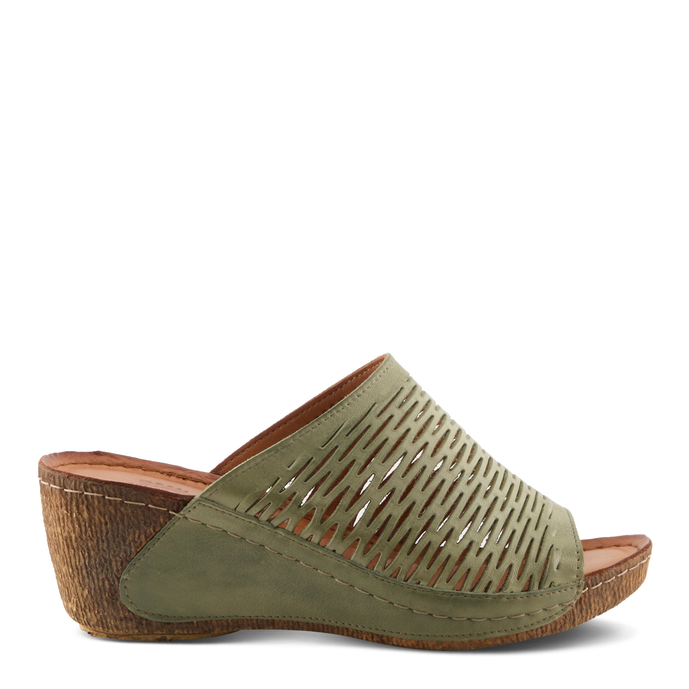 A gentle breeze blowing through the palm trees. Slip on these leather wedges and be instantly transported to white sandy beaches. The die-cut lattice has breathable stretch to move with your feet for all day comfort.