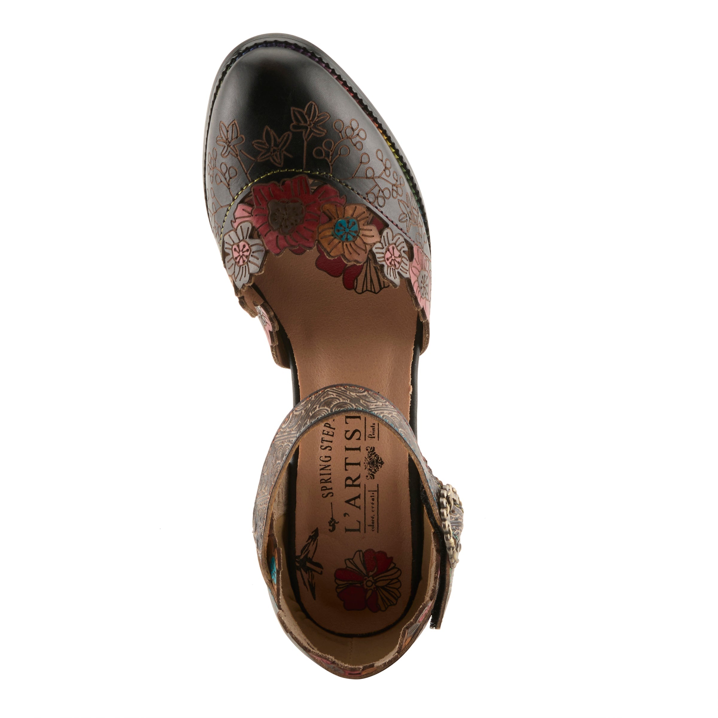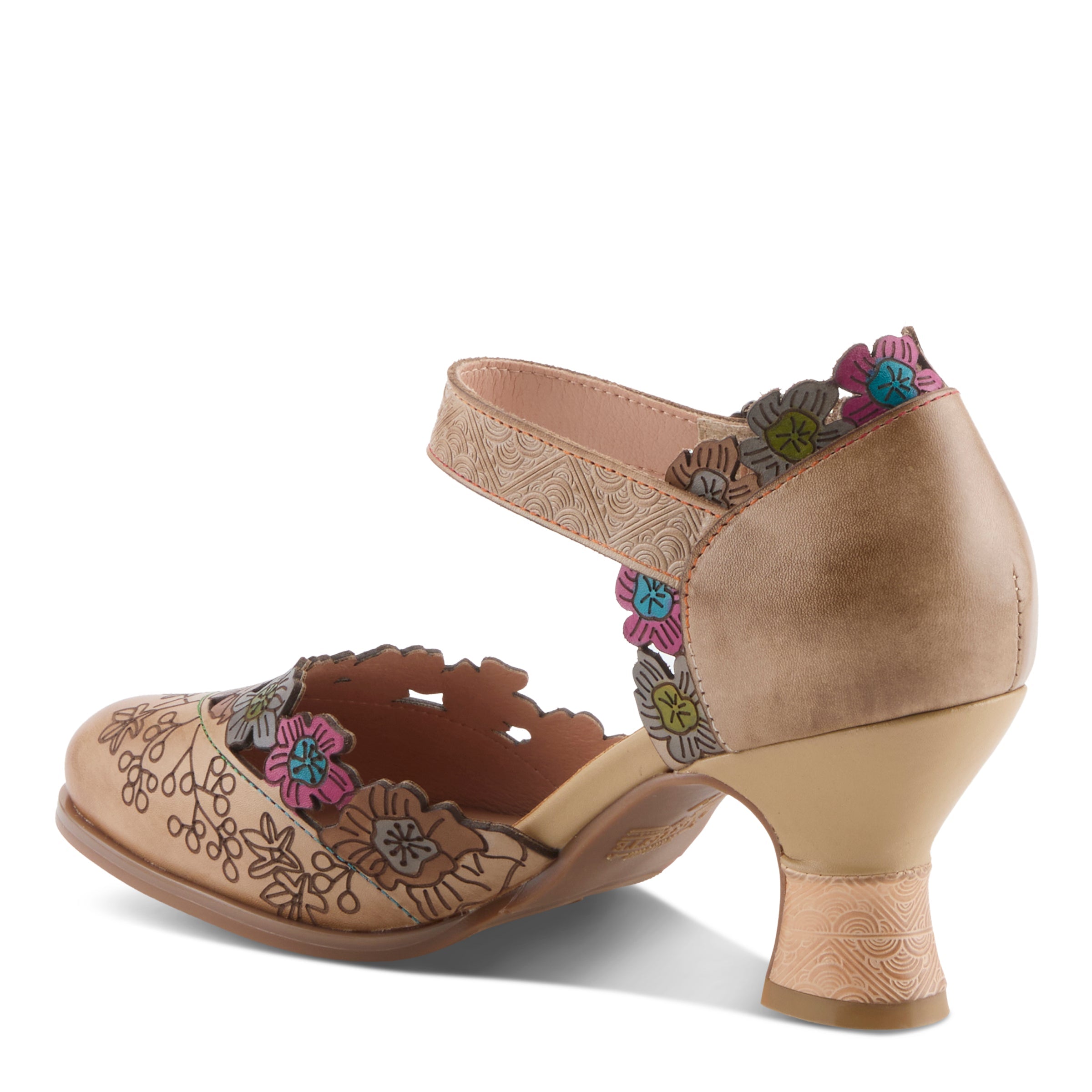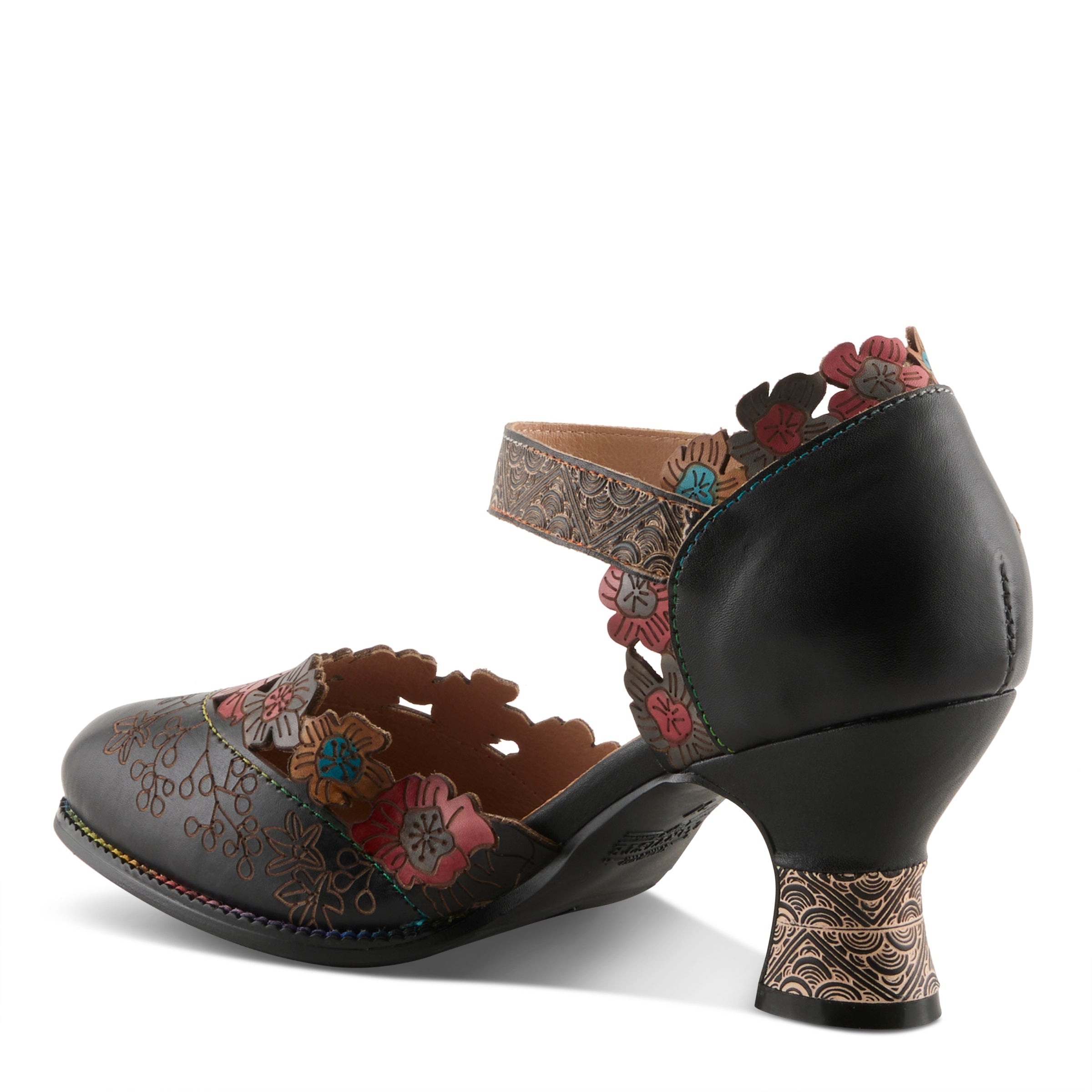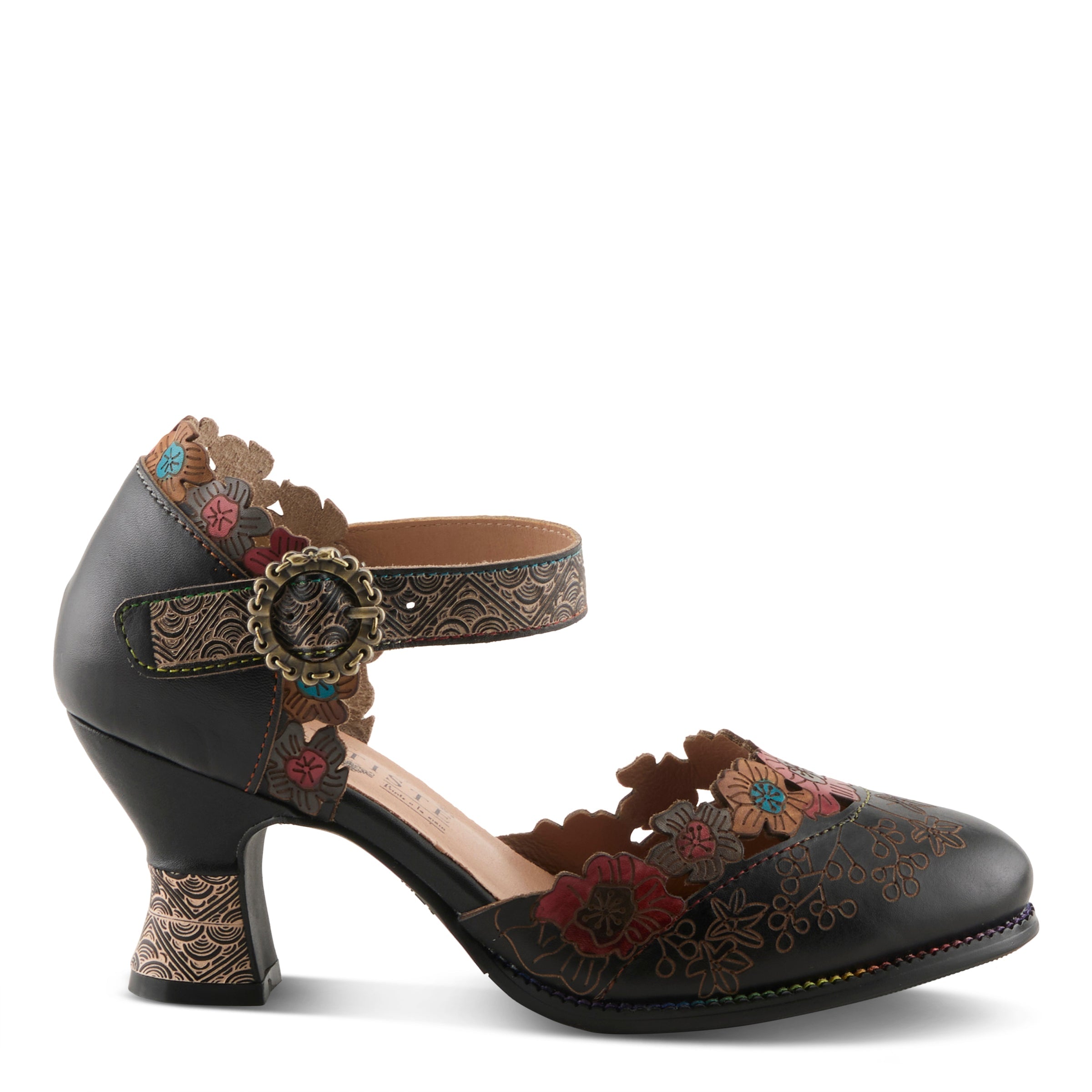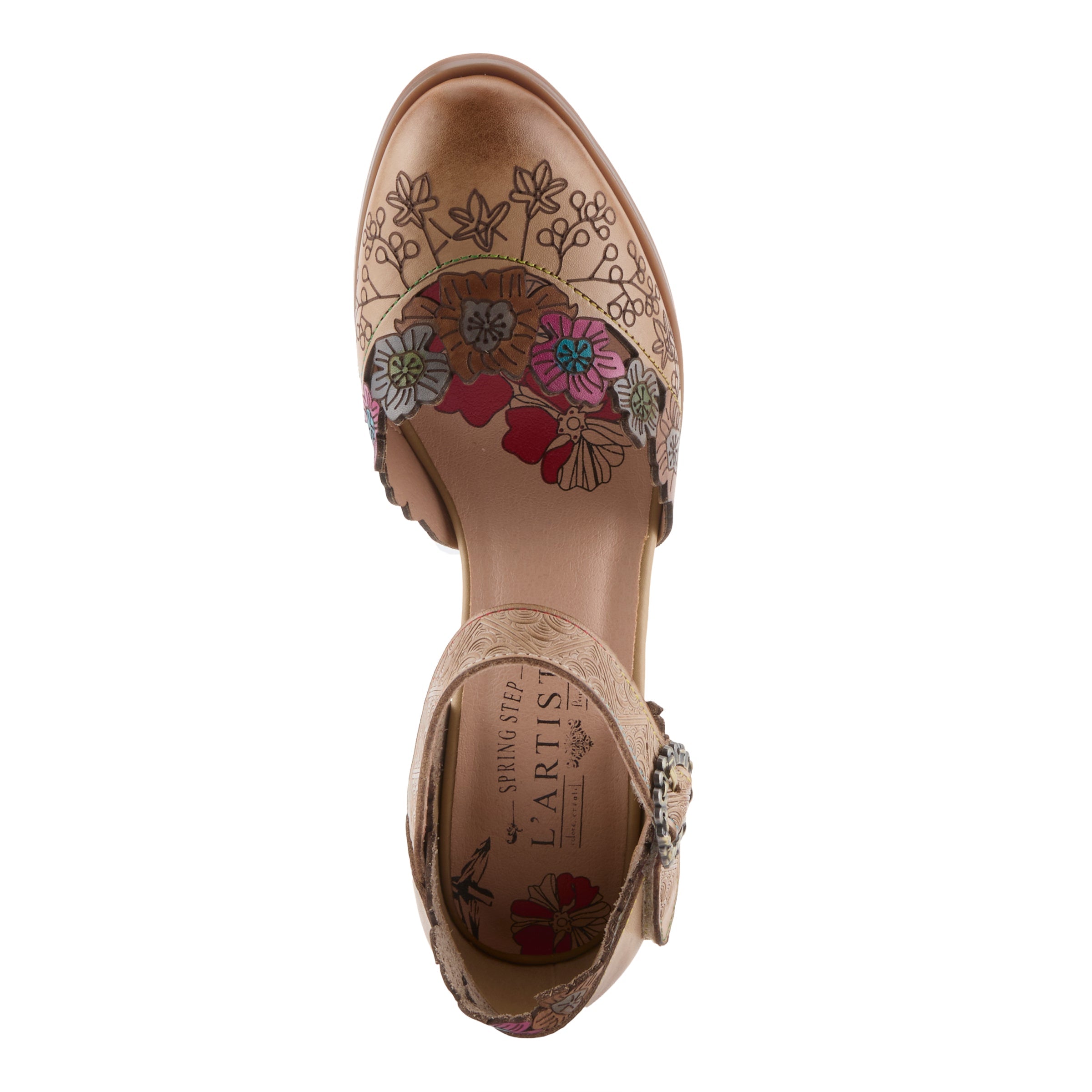 Romance comes alive in this hand-painted mary jane shoe, where every detail tells a story of artistry and charm. The laser-cut and embossed leather upper blooms with graceful floral patterns along the scalloped topline, creating an enchanting garden-inspired effect. The adjustable strap, accented by an antique buckle, offers ease and allure, while the padded insole provides comfort for every step of your day.