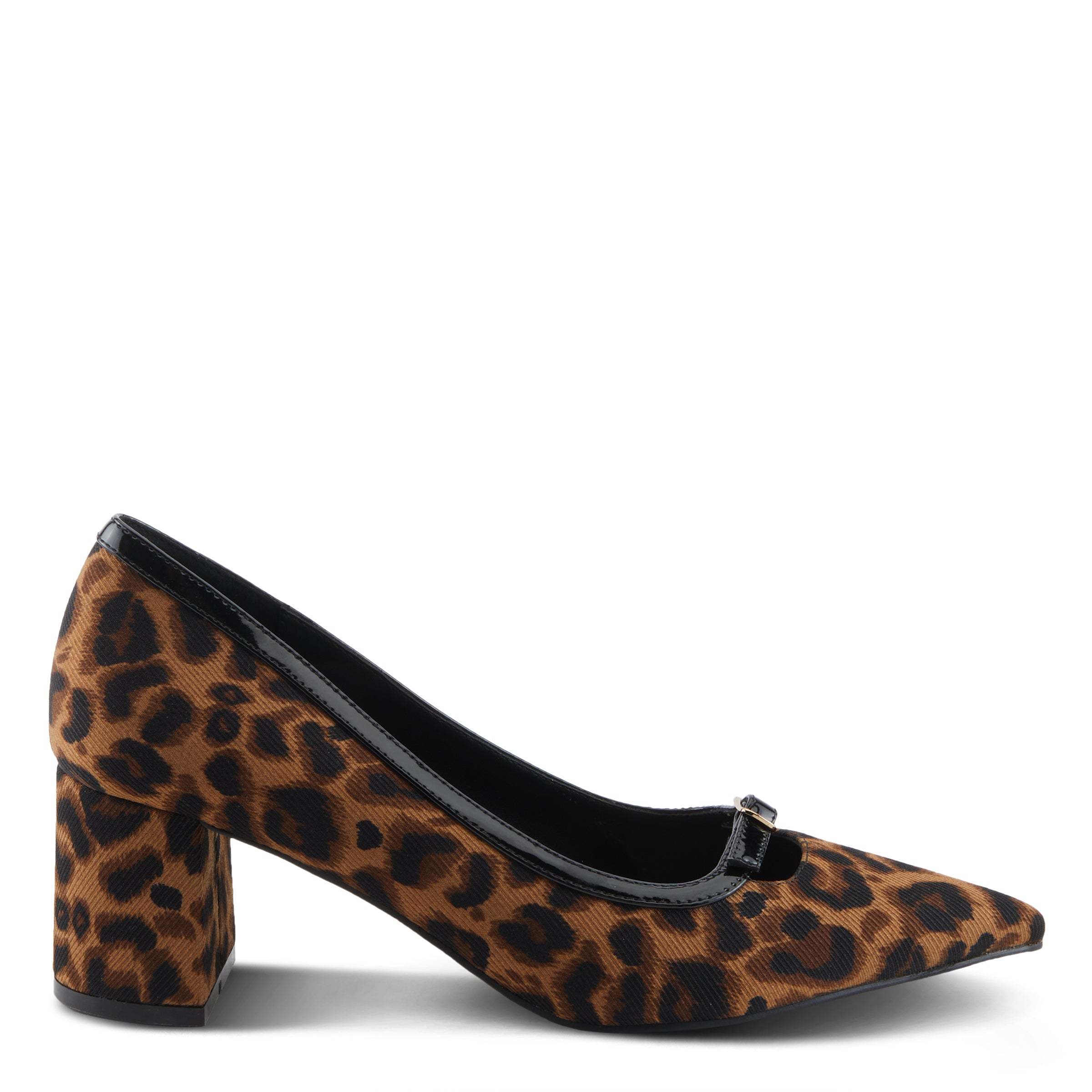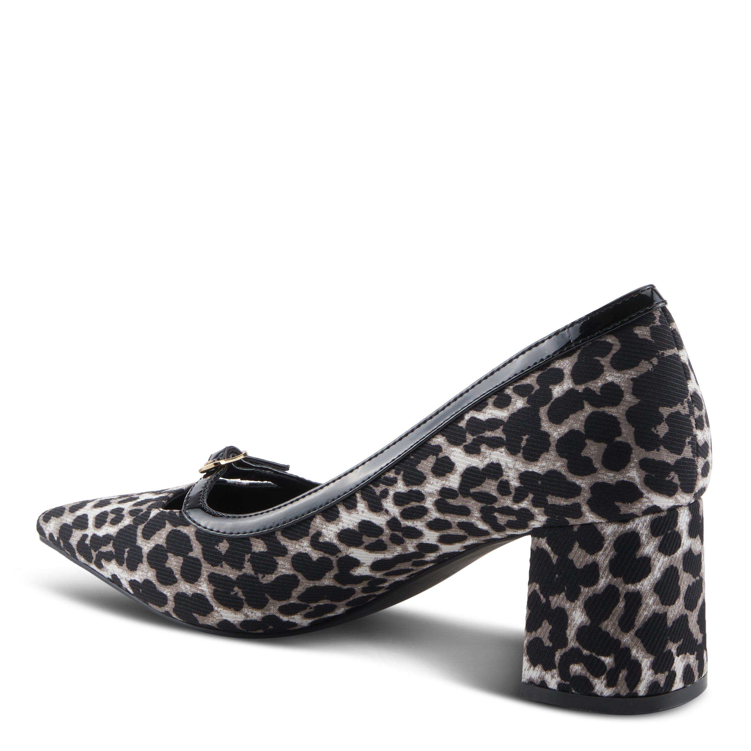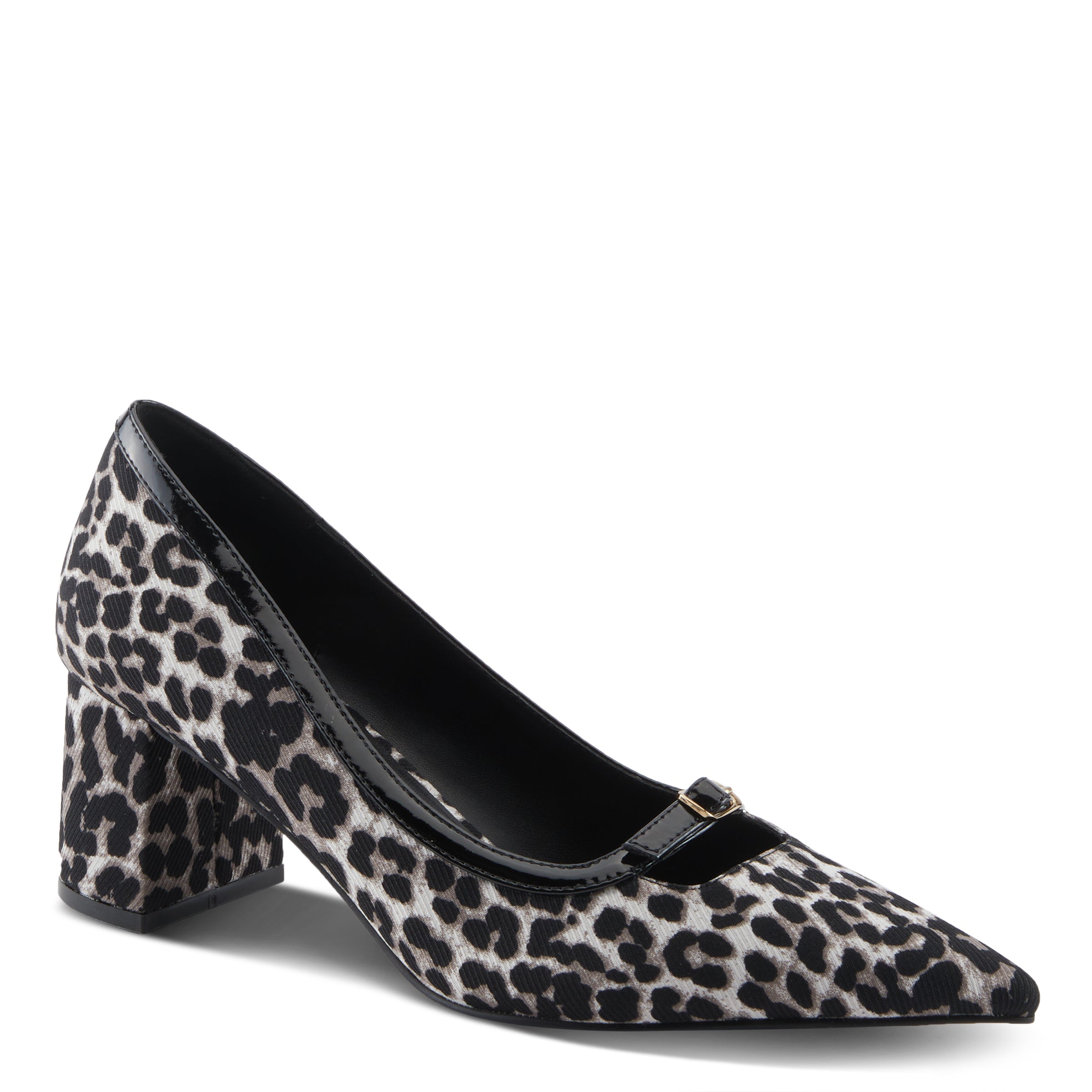 Step into sophistication with this sleek and fashion-forward block heel pump. Designed for the modern trendsetter, it features a pointed toe silhouette and glossy patent trim with a delicate buckle detail for an effortlessly chic touch. The sturdy block heel offers both style and stability, while the cushioned insole ensures all-day comfort. Whether you''re dressing up for work or a night out, this pump is the perfect blend of elegance and edge, making it a must-have for any wardrobe.